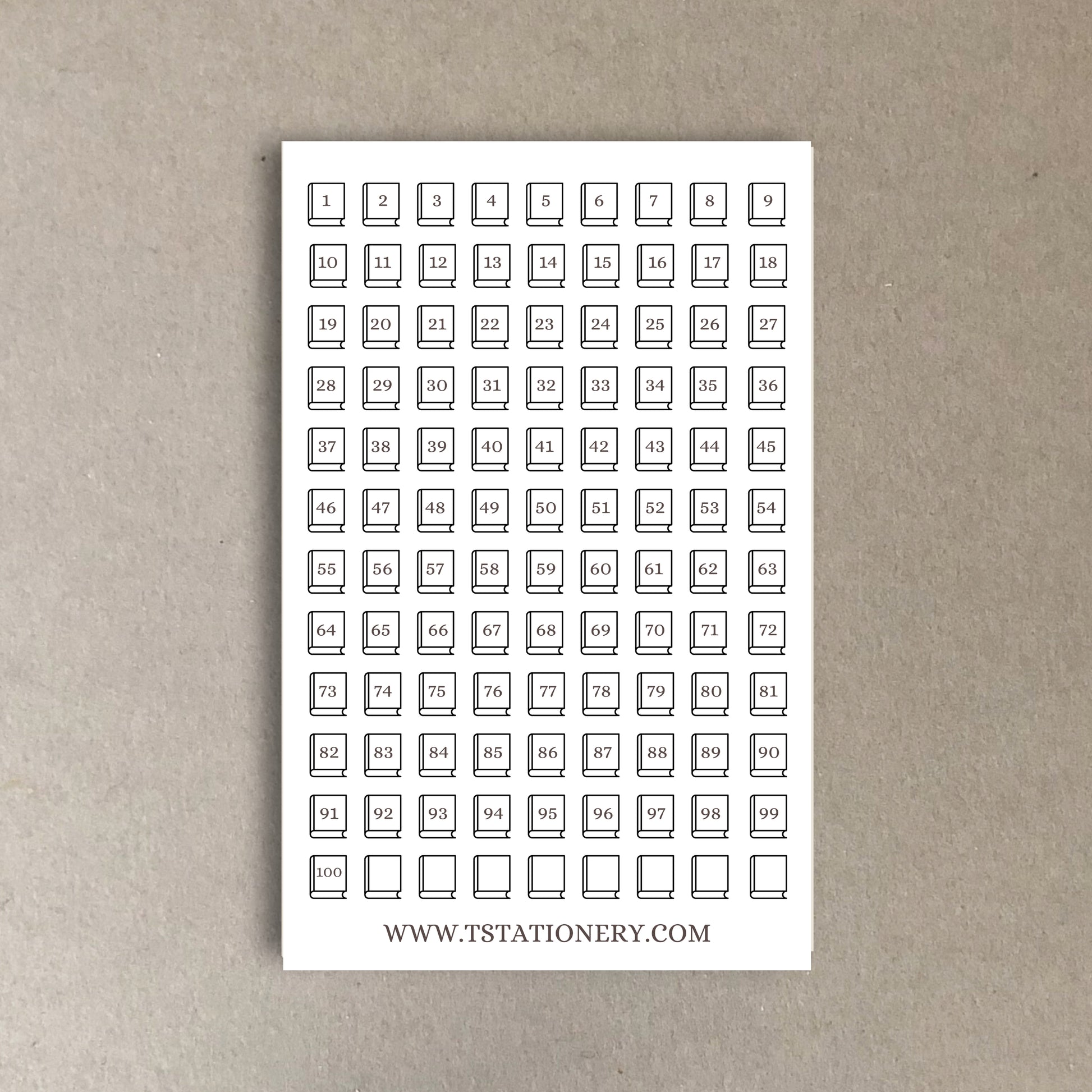 This sticker sheet contains 100 small numbered book stickers which are around 1 cm in length and 3 cm in width. 1 cm = 0.50 inch 3 cm = 1.1 inch.