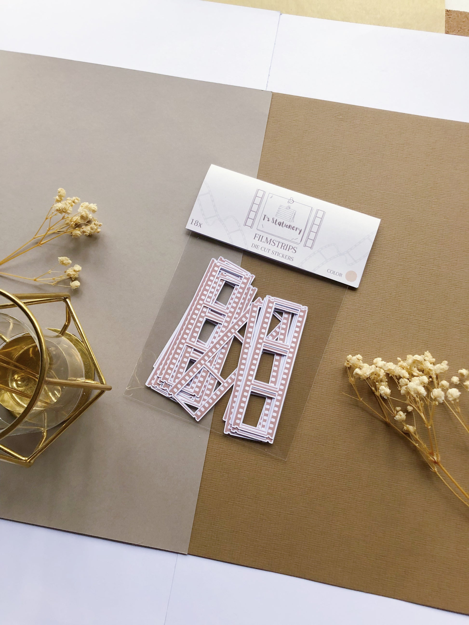 "18Pcs Caramel Film Strip Die Cut Stickers"