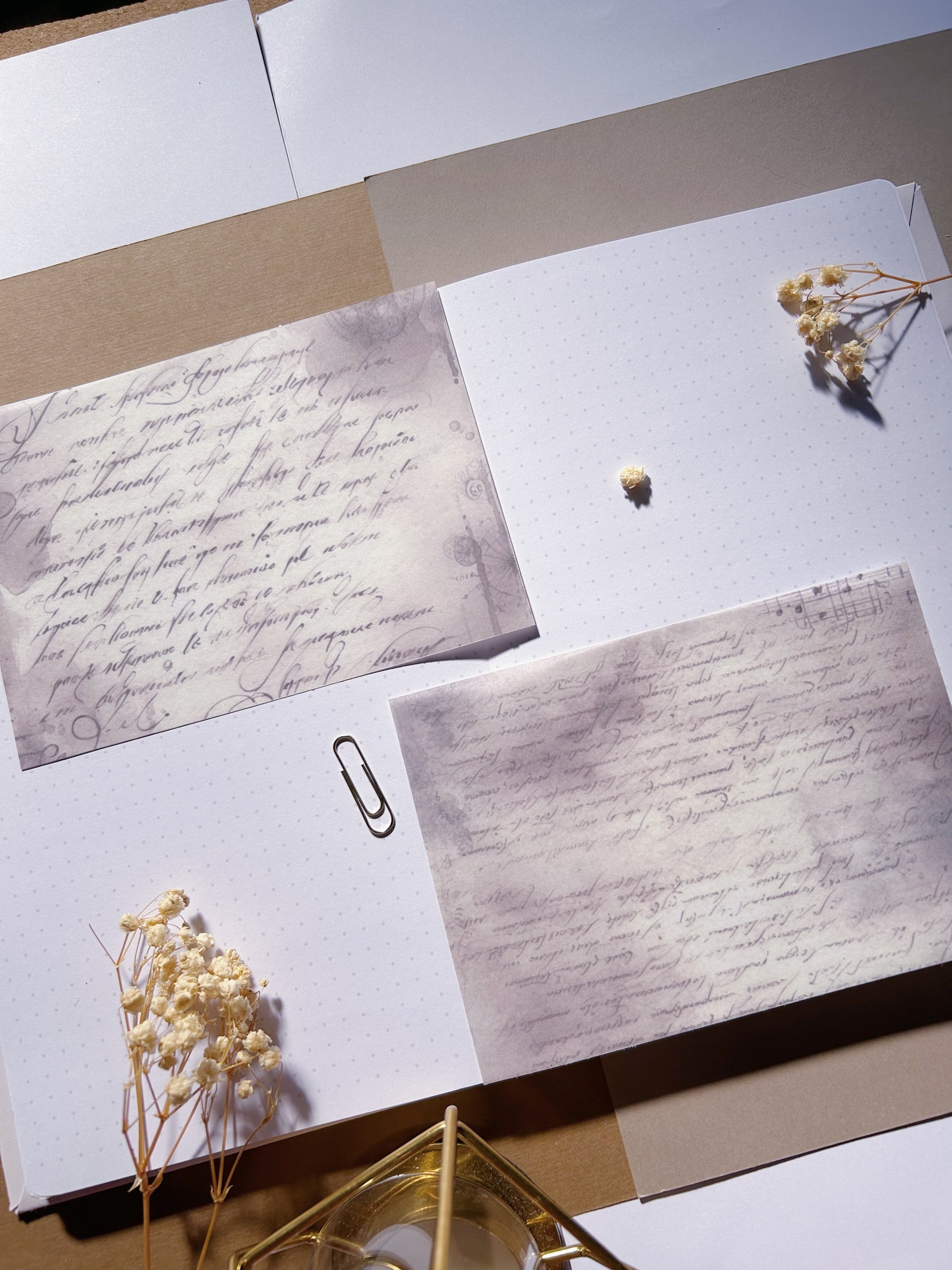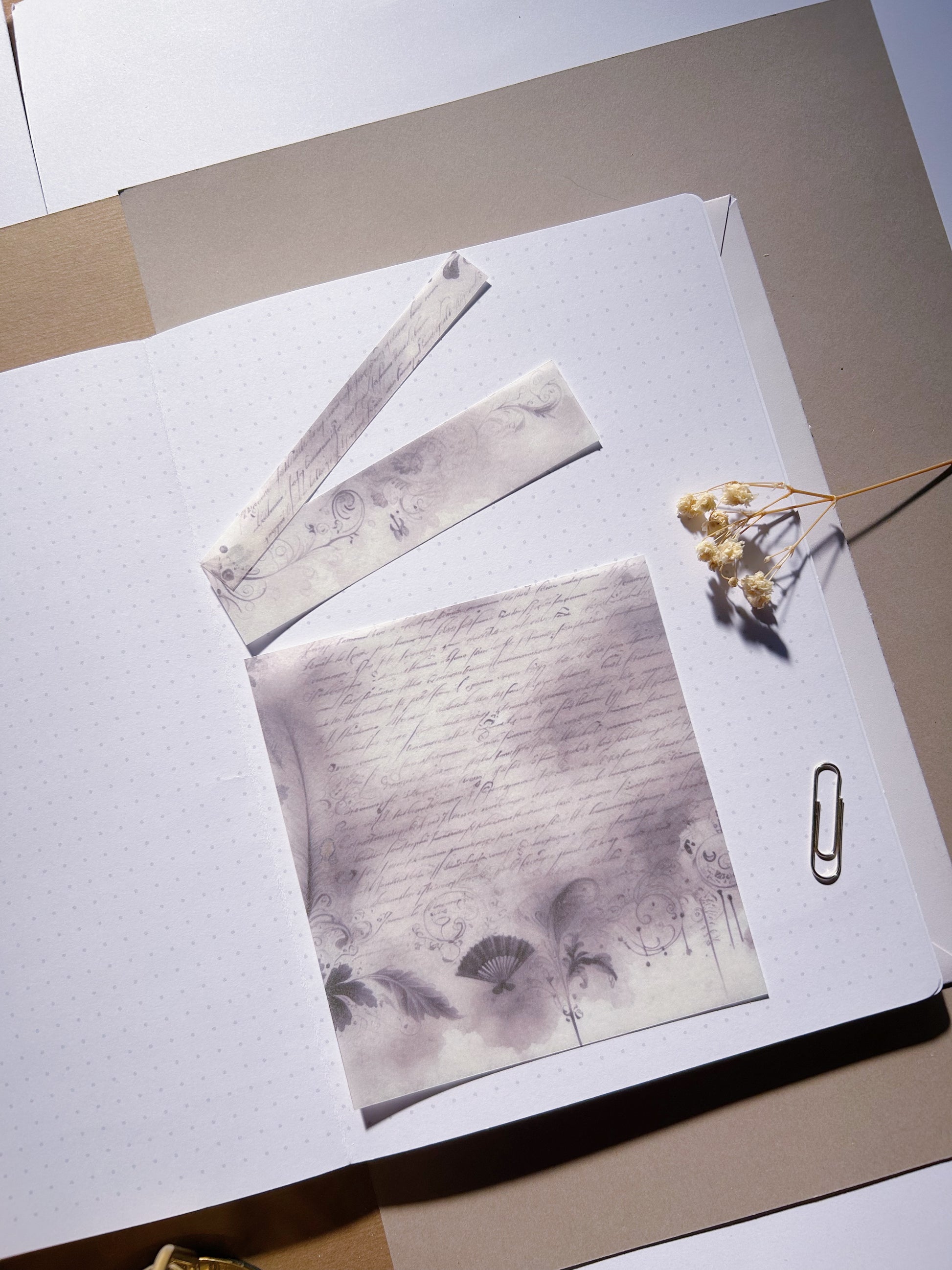 Multi purpose washi parchment A6 sticker sheets. These can be easily teared into decorative parts or you can cut them and use them as washi tape in the desired width! This is a set and comes with 4 A6 washi parchment calligraphy sticker sheets with 4 different designs.