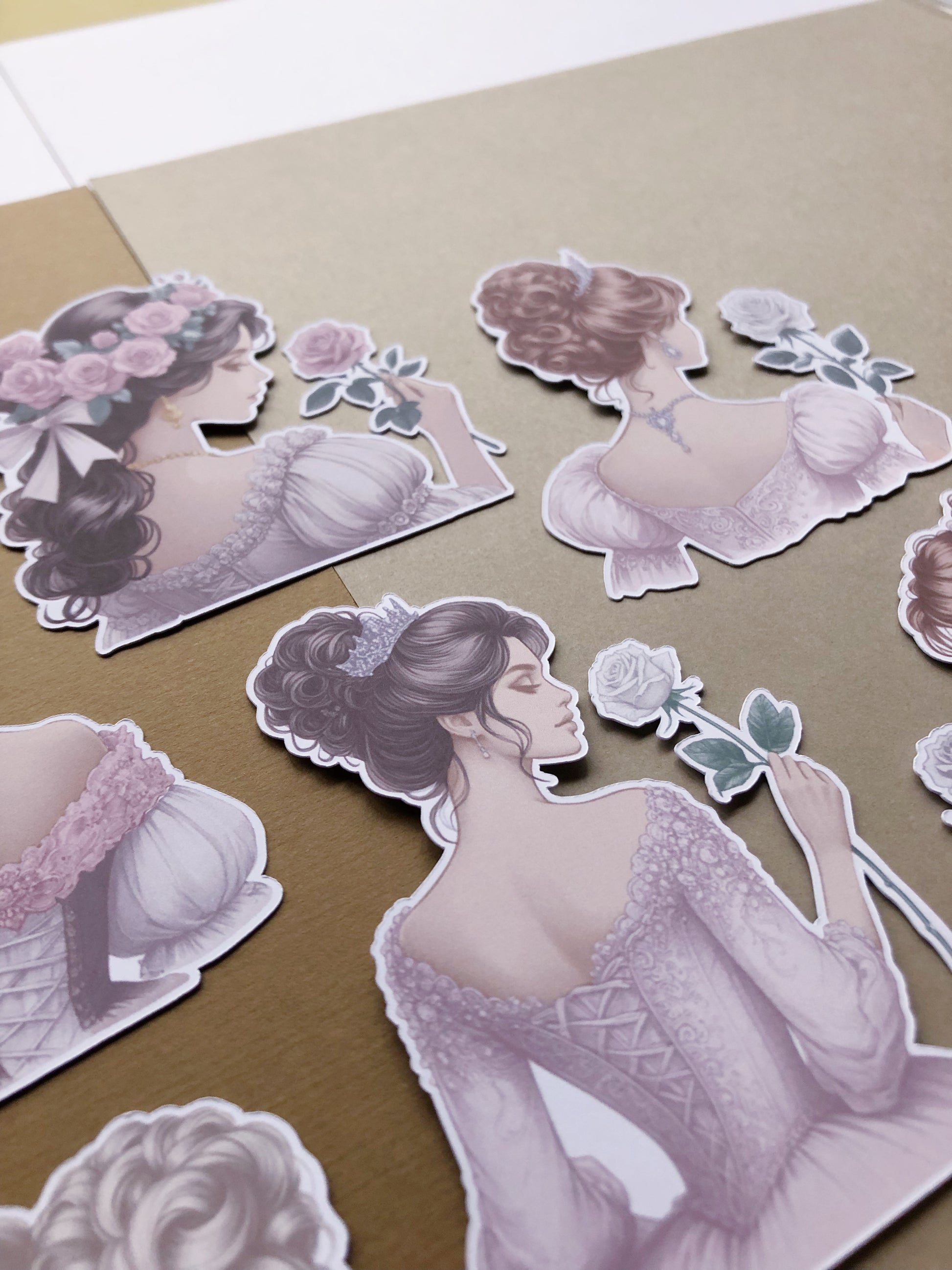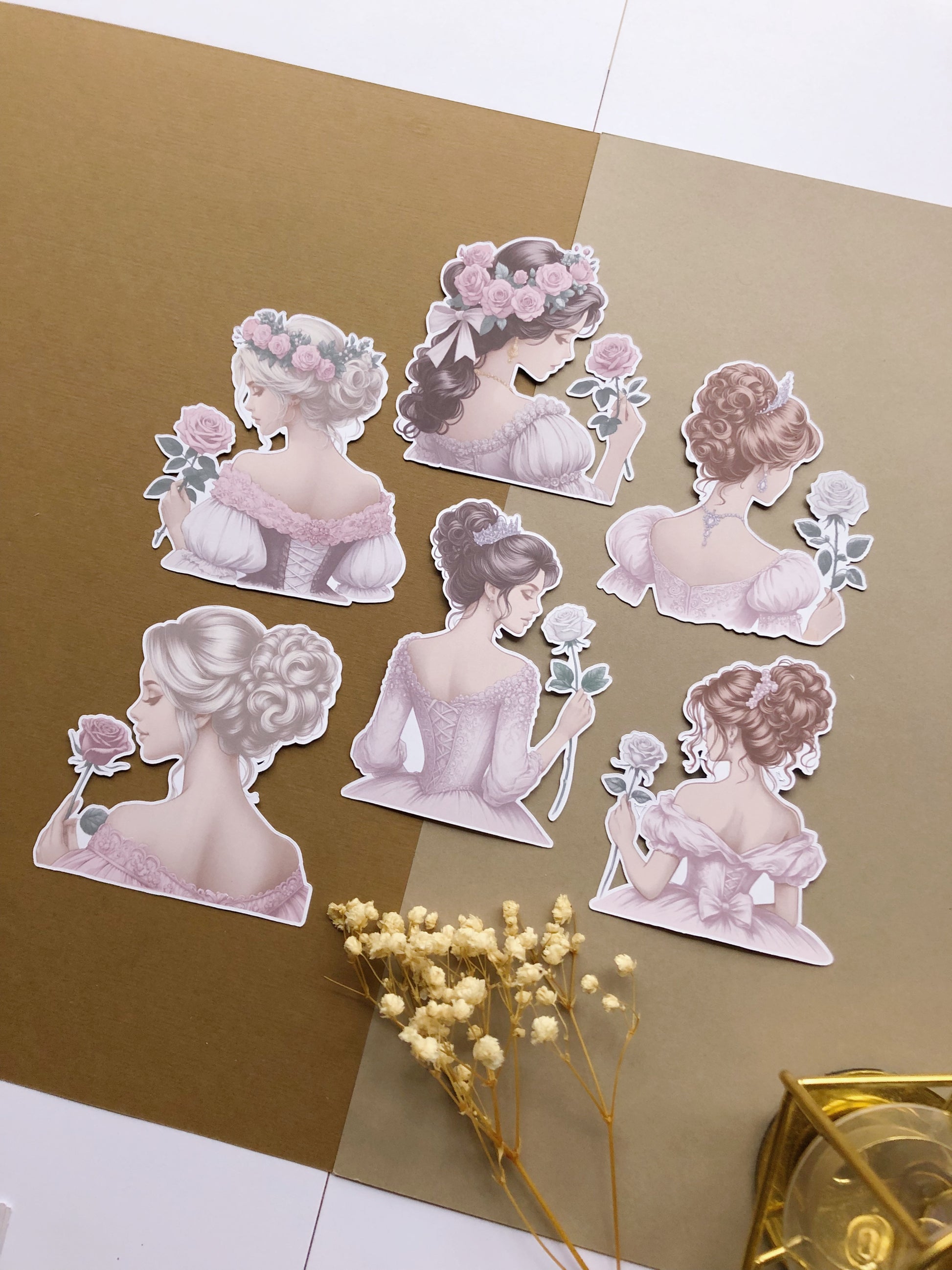 "6Pcs Rose Maidens Die Cut Stickers" Sticker Bag