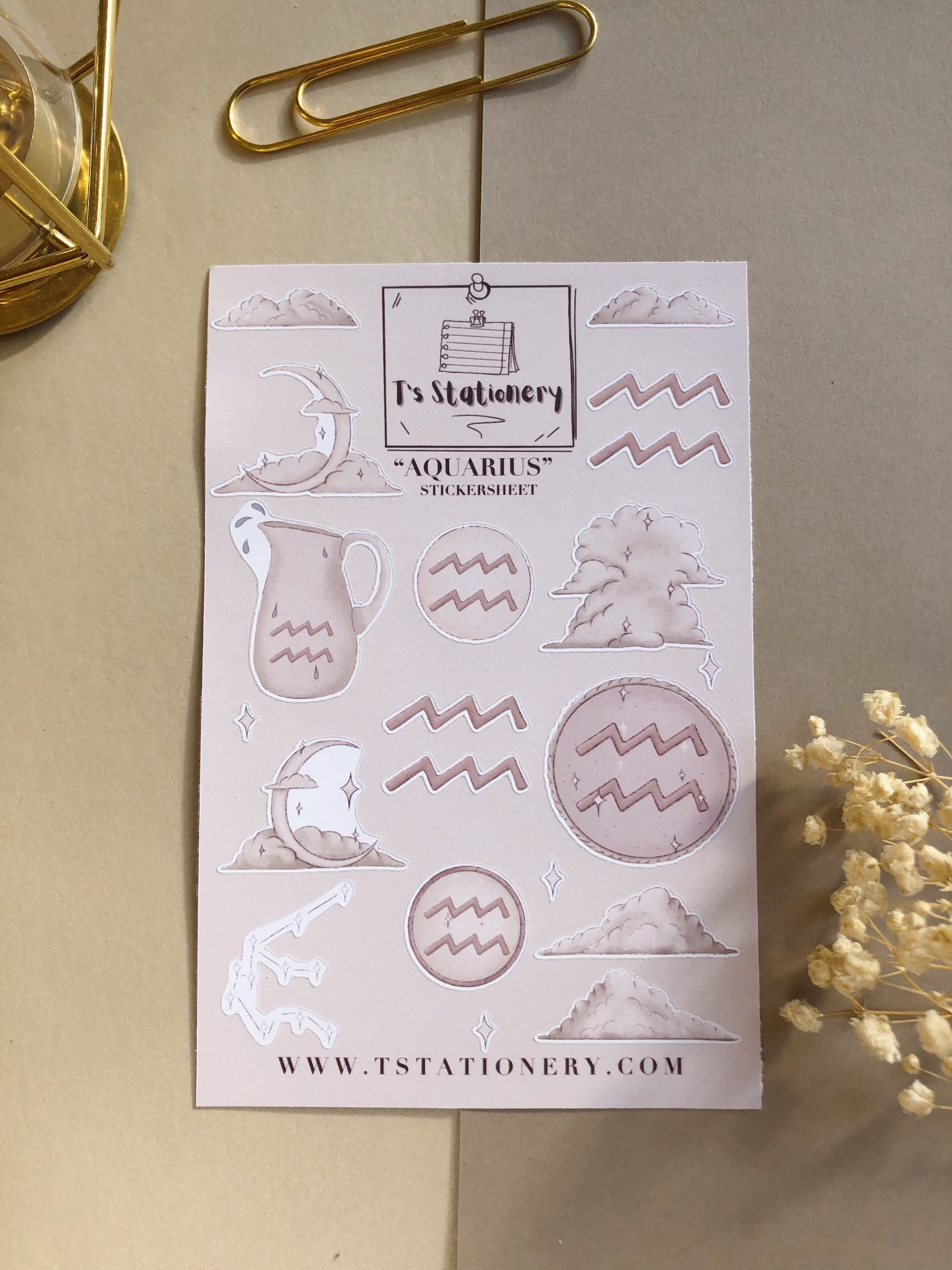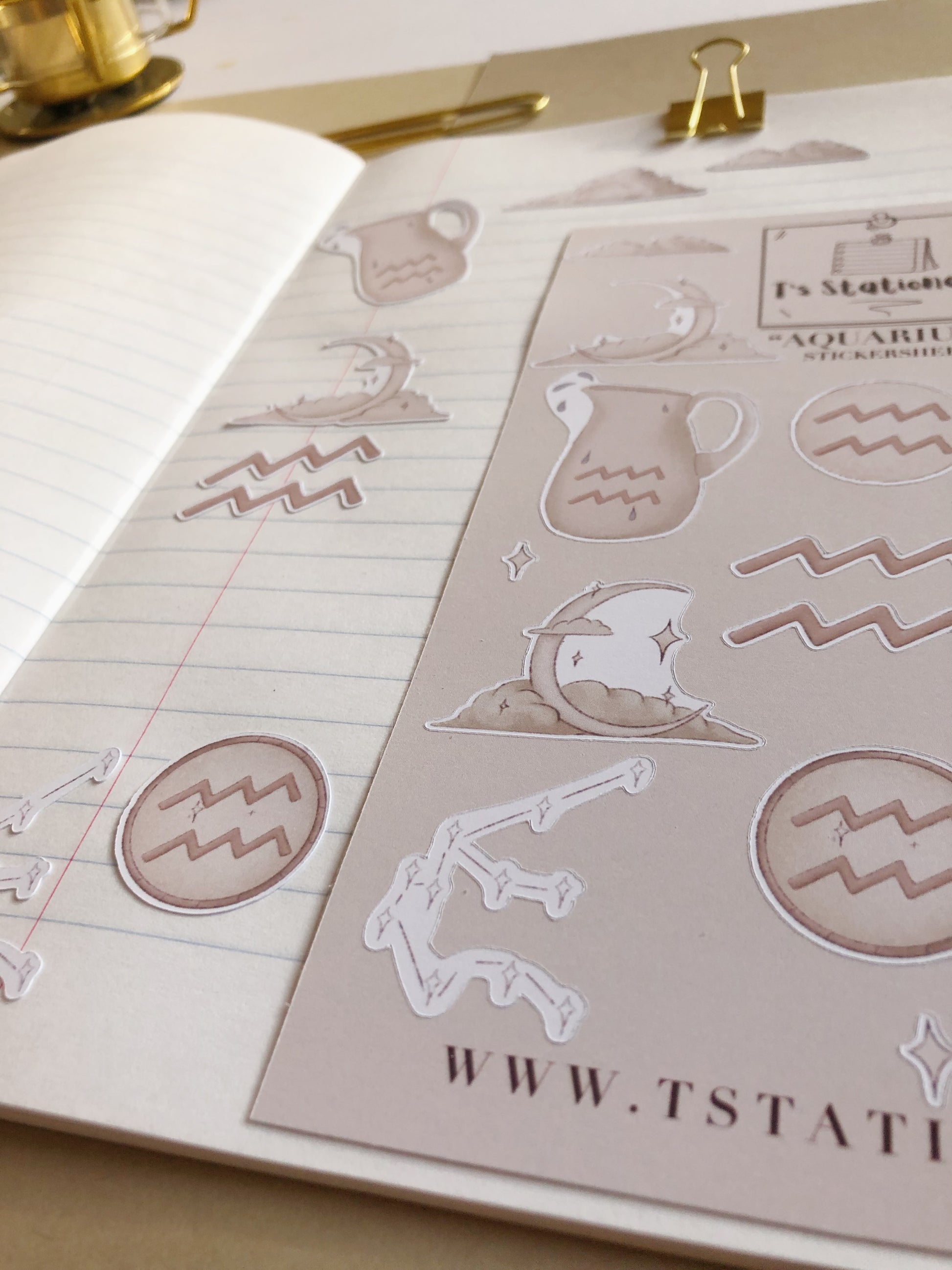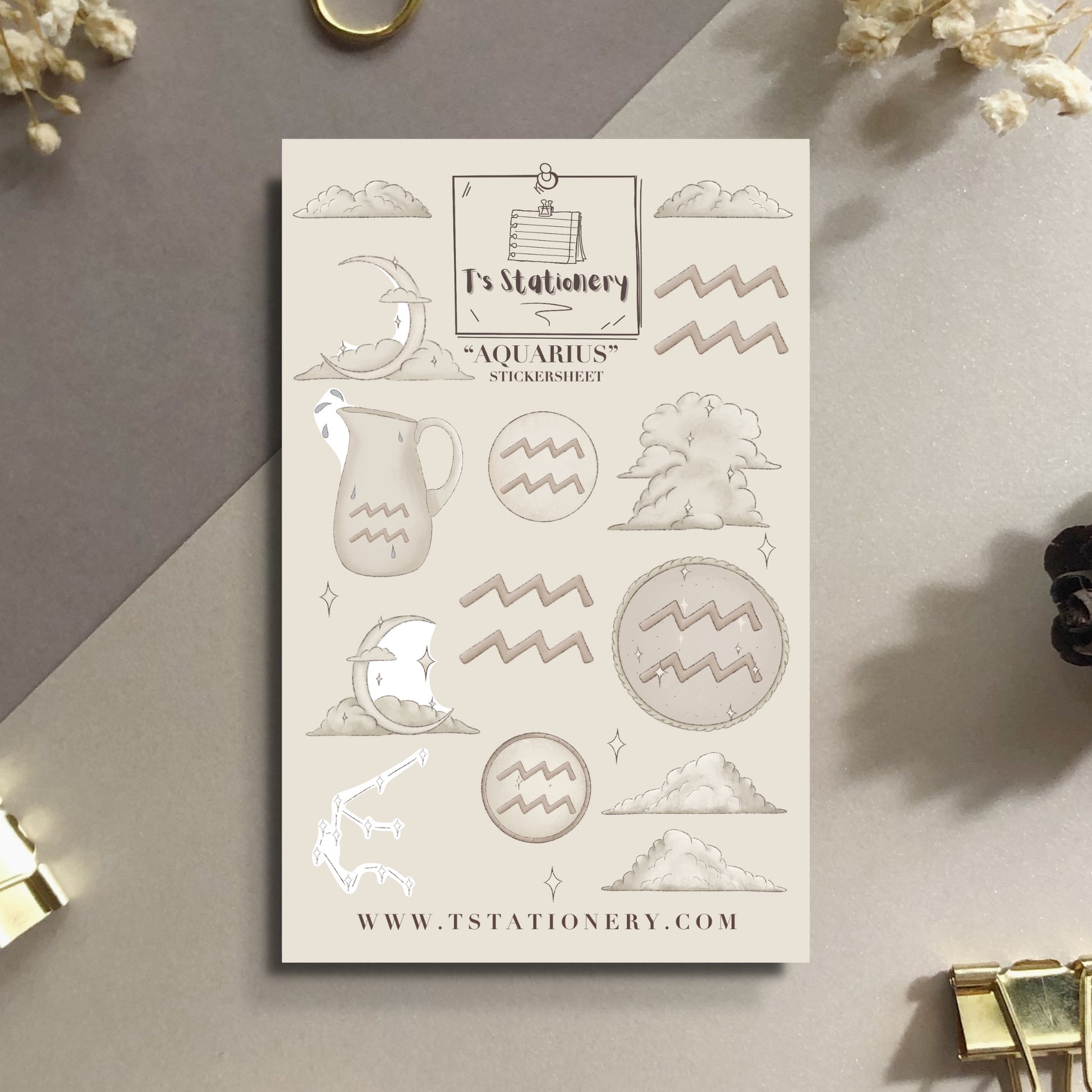 An Aquarius sticker sheet perfect to use in your Bullet Journal, planner or scrapbook.