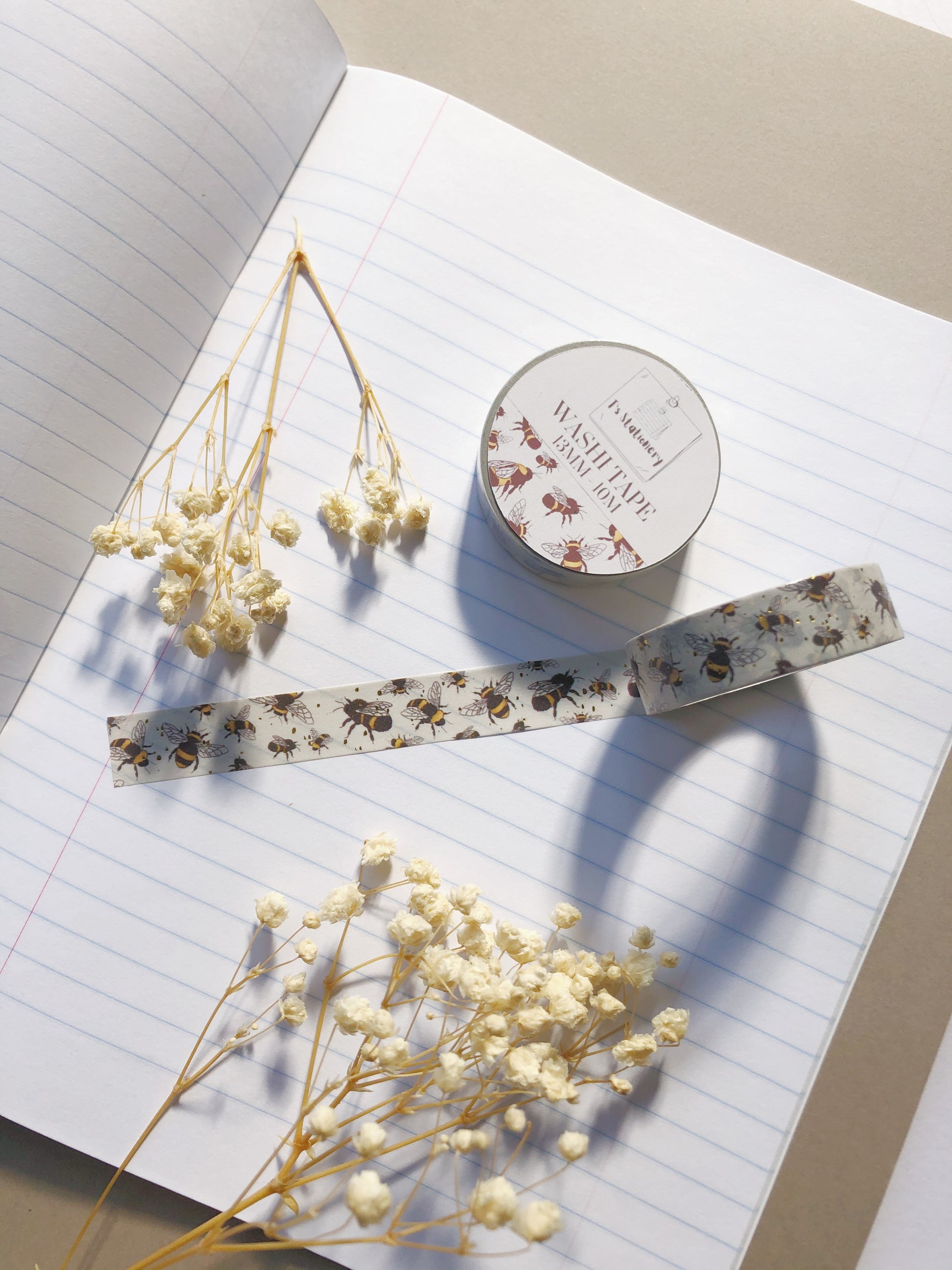 Decorative washi tape filled with bees, made for your Bullet Journal, planner, or scrapbook!