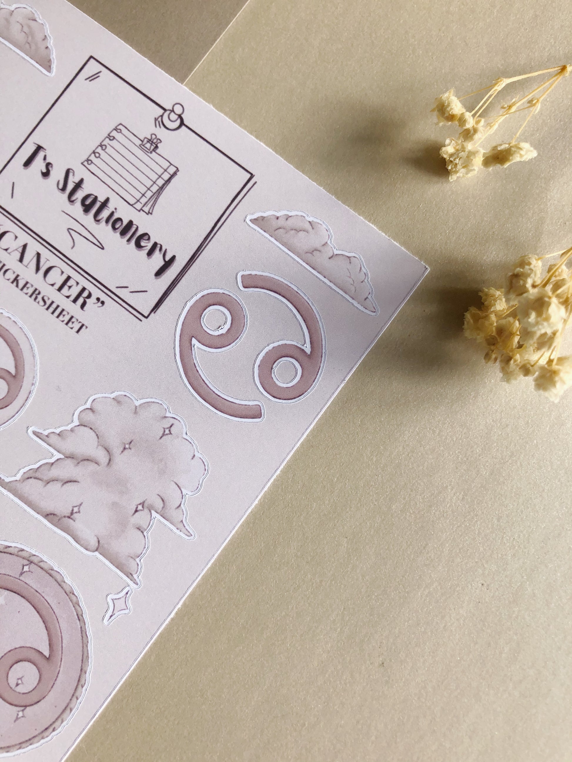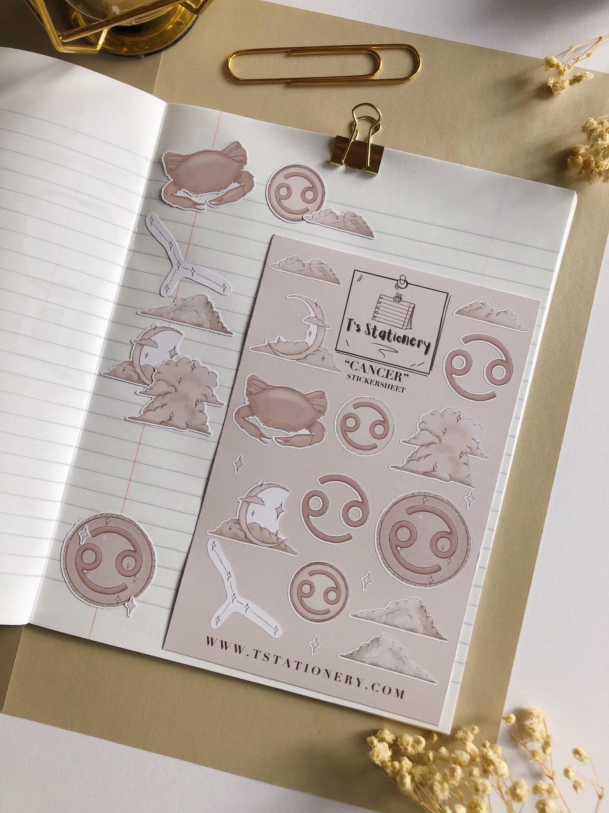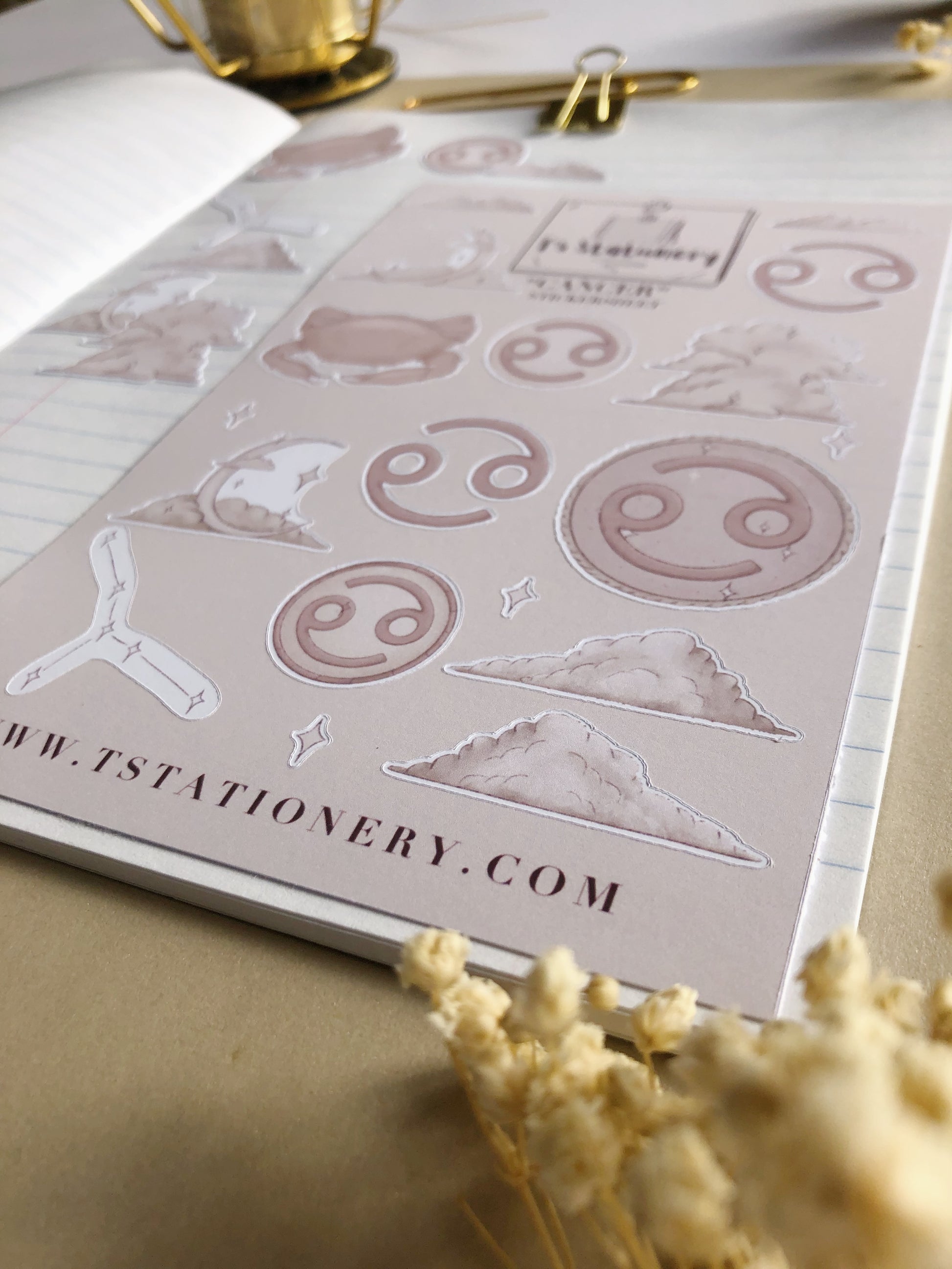 A Cancer sticker sheet perfect to use in your Bullet Journal, planner or scrapbook.
