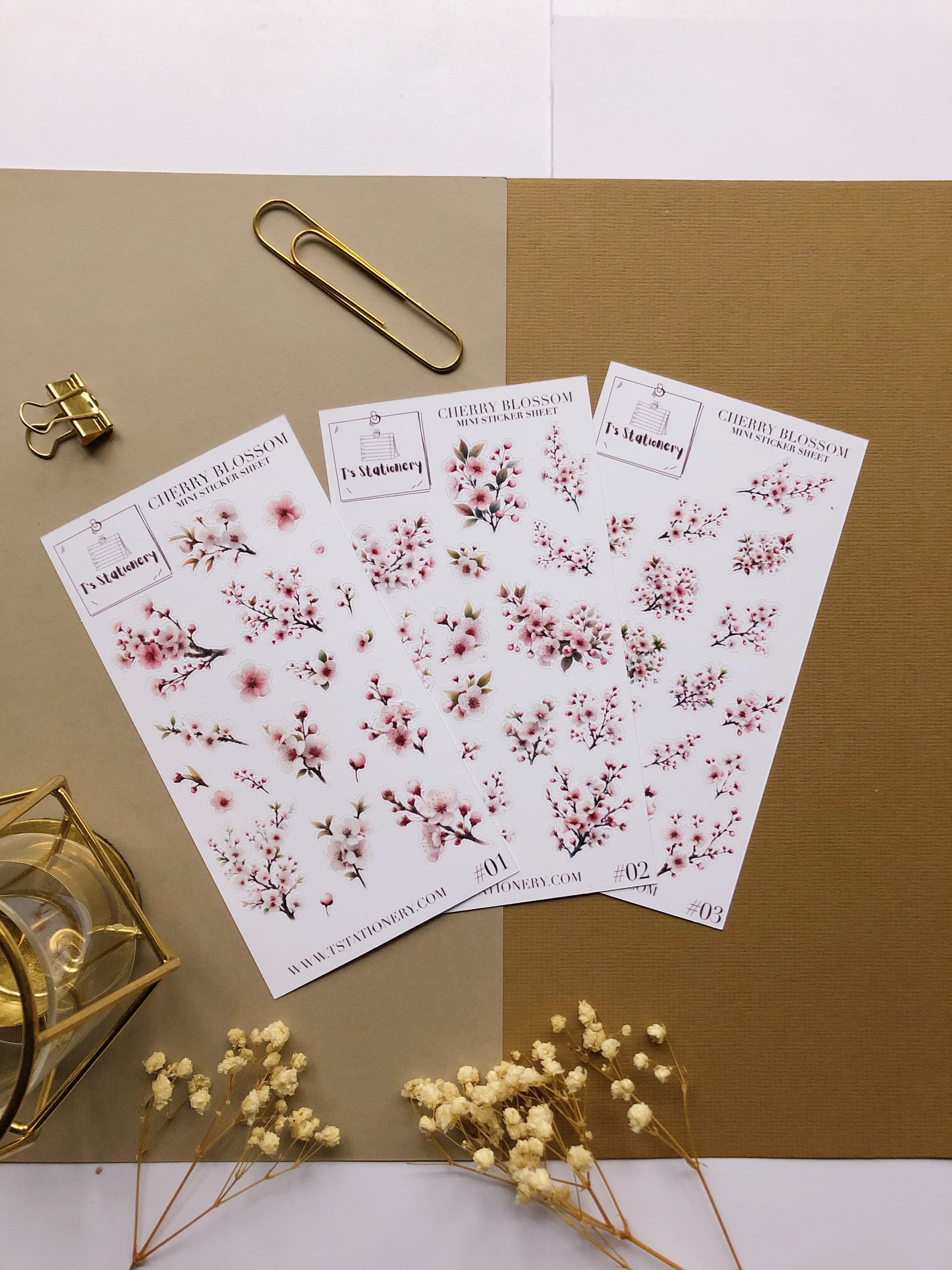 "Cherry Blossom" Sticker Sheet Set Of 3