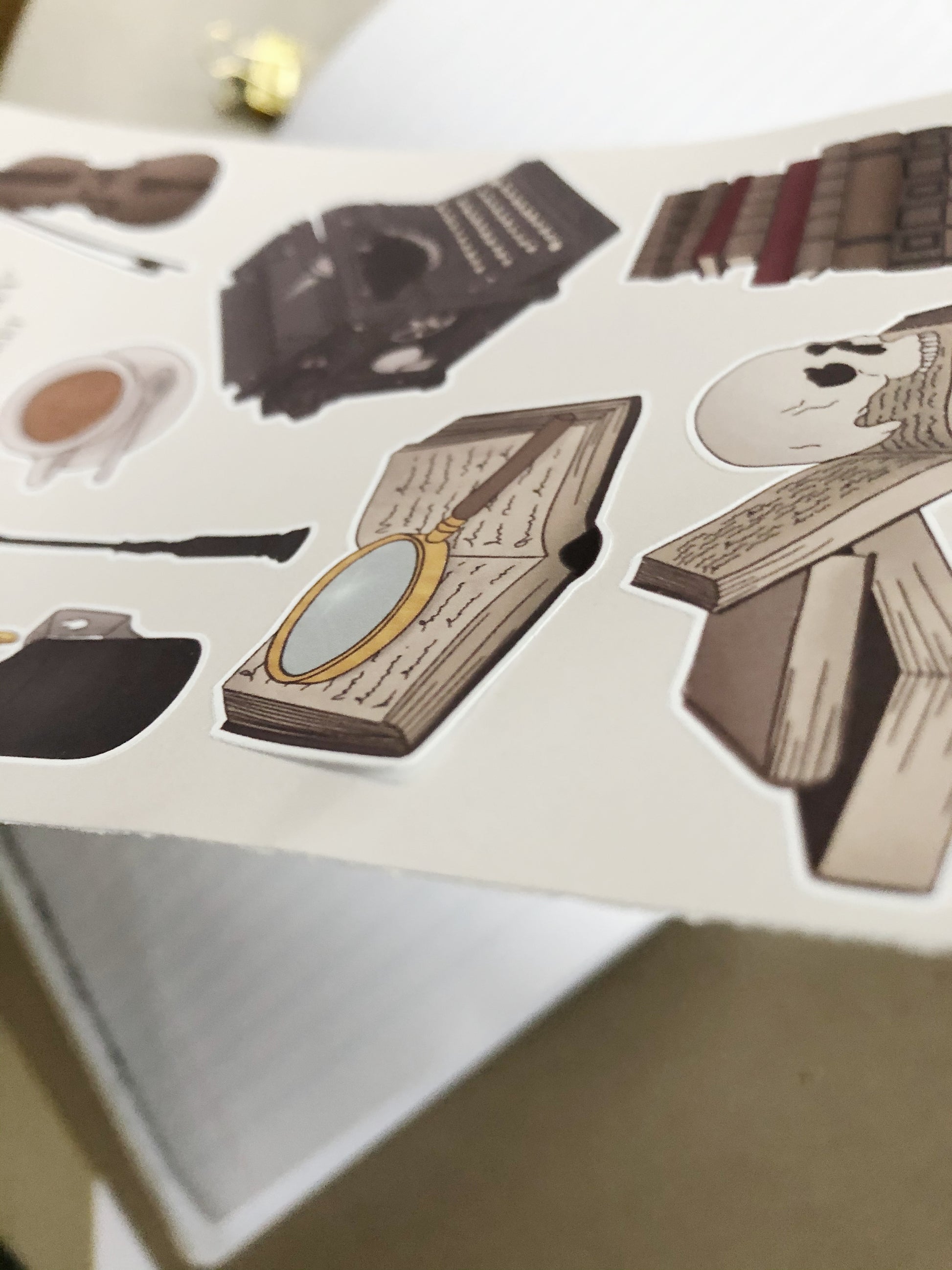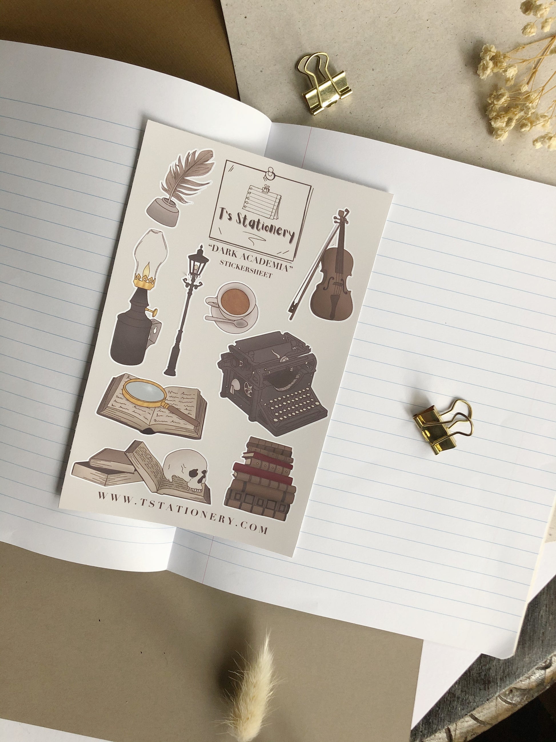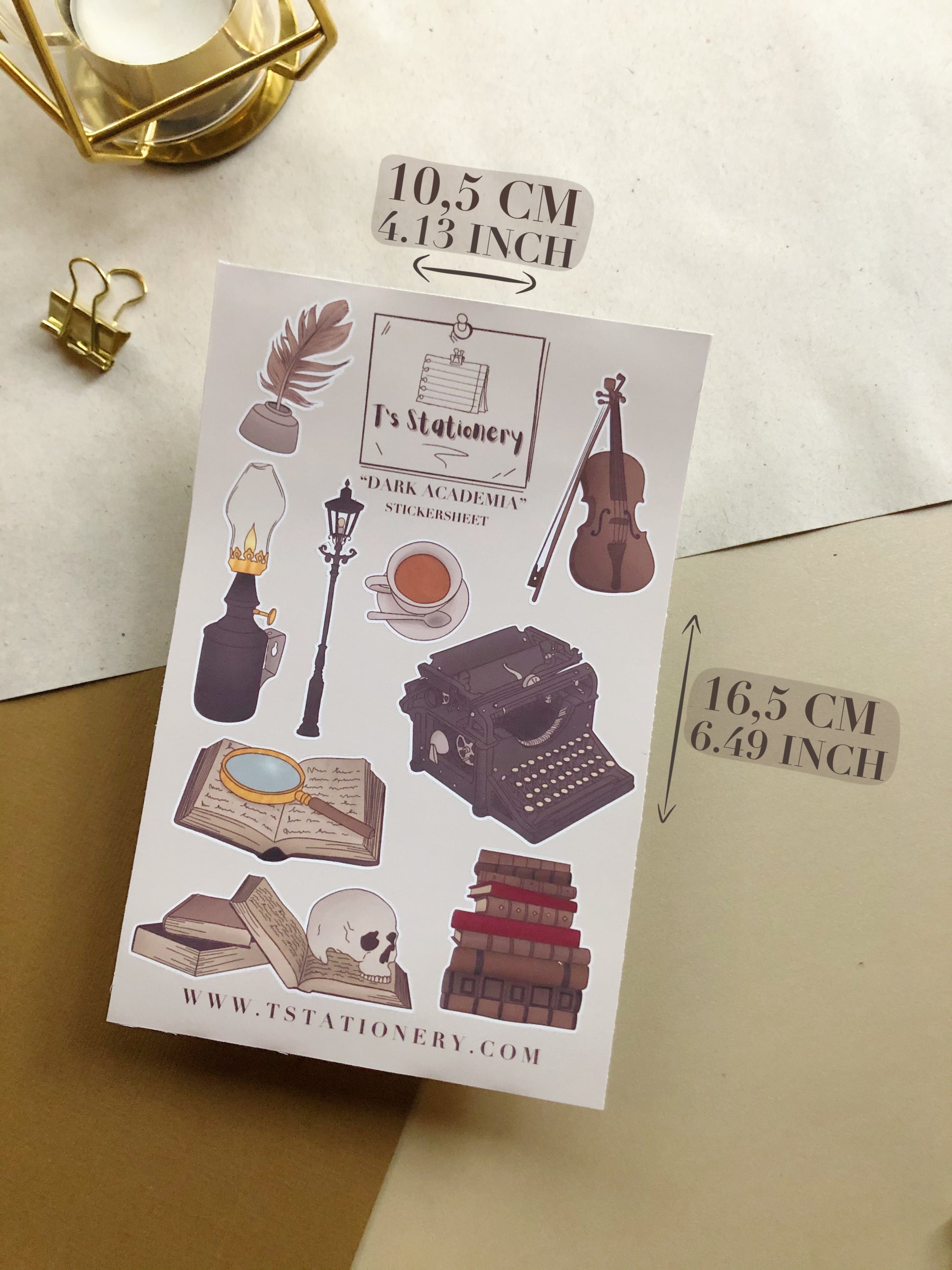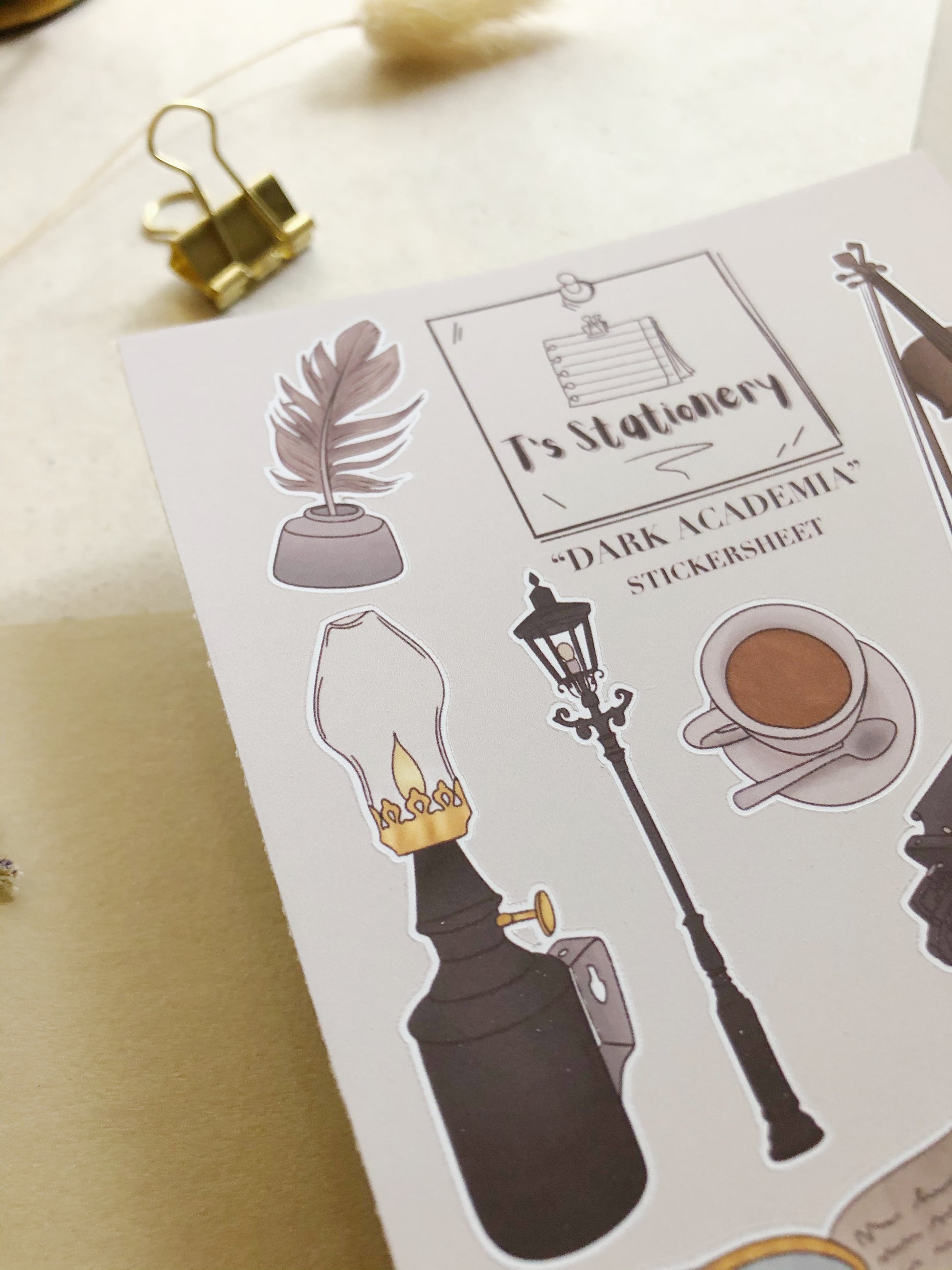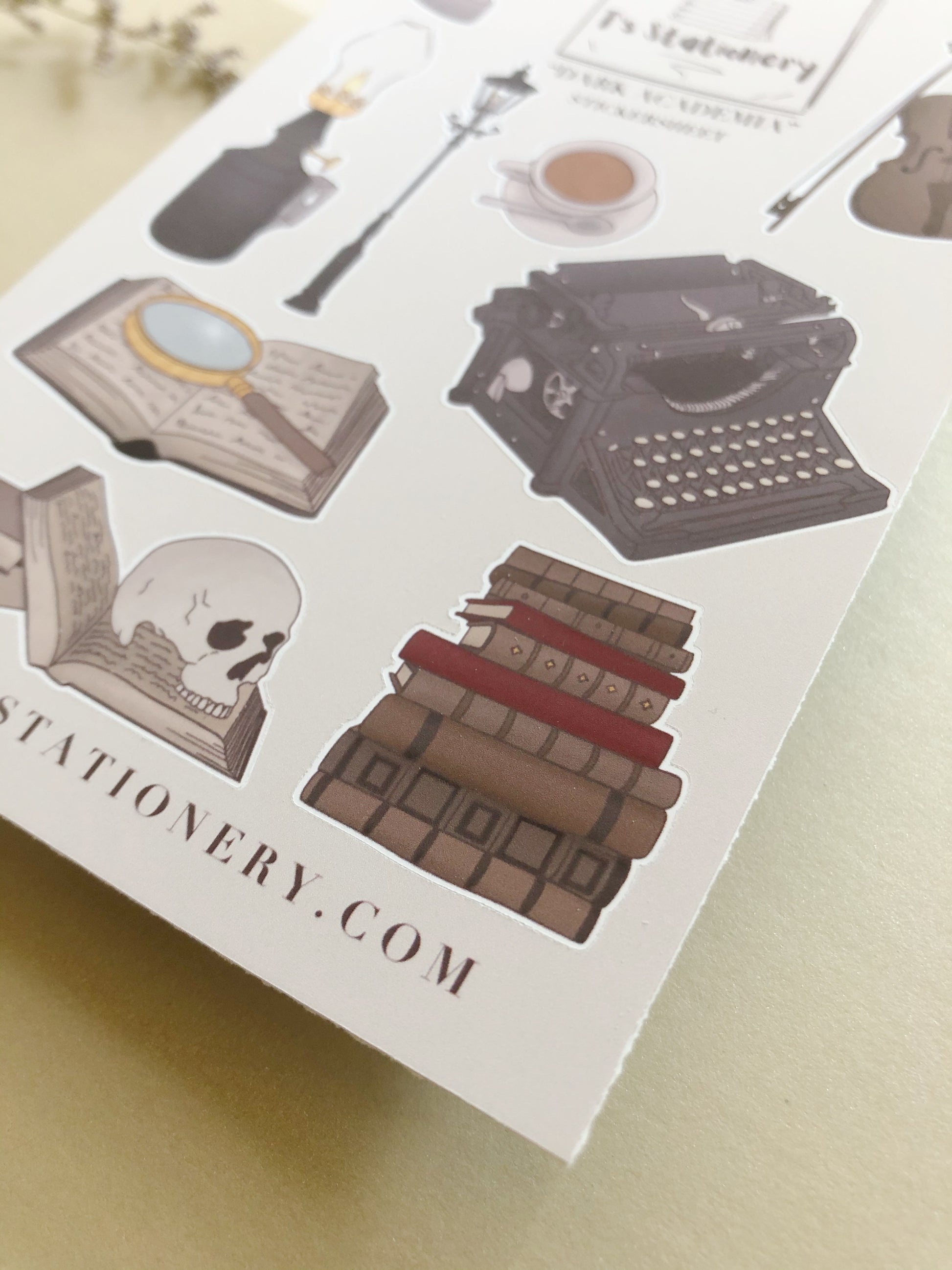 A dark academia stickers sheet perfect to use in your Bullet Journal or scrapbook.