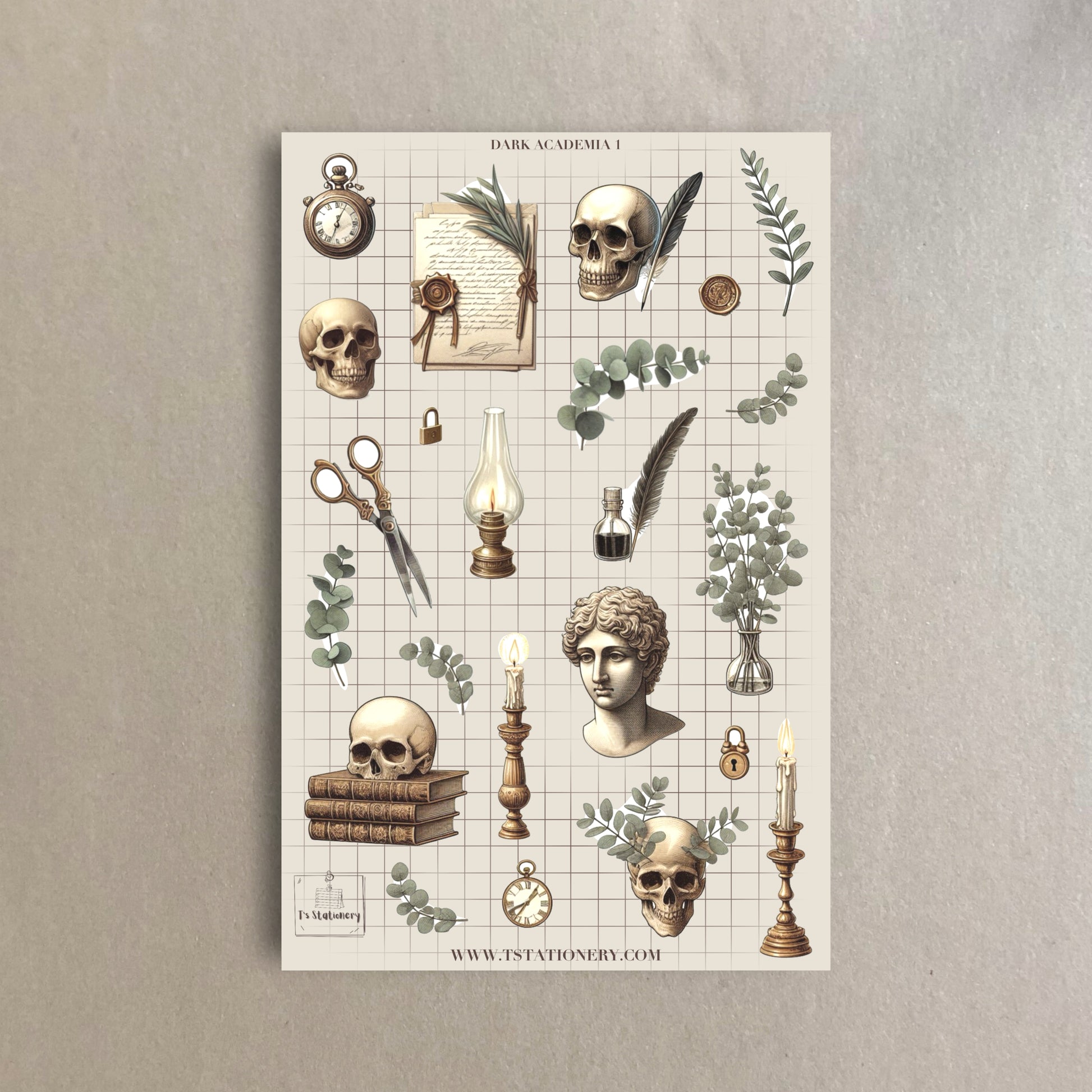 A new dark academia sticker sheet, perfect to use in your journal, planner or scrapbook. Filled with enough eucalyptus foliage to play around with.