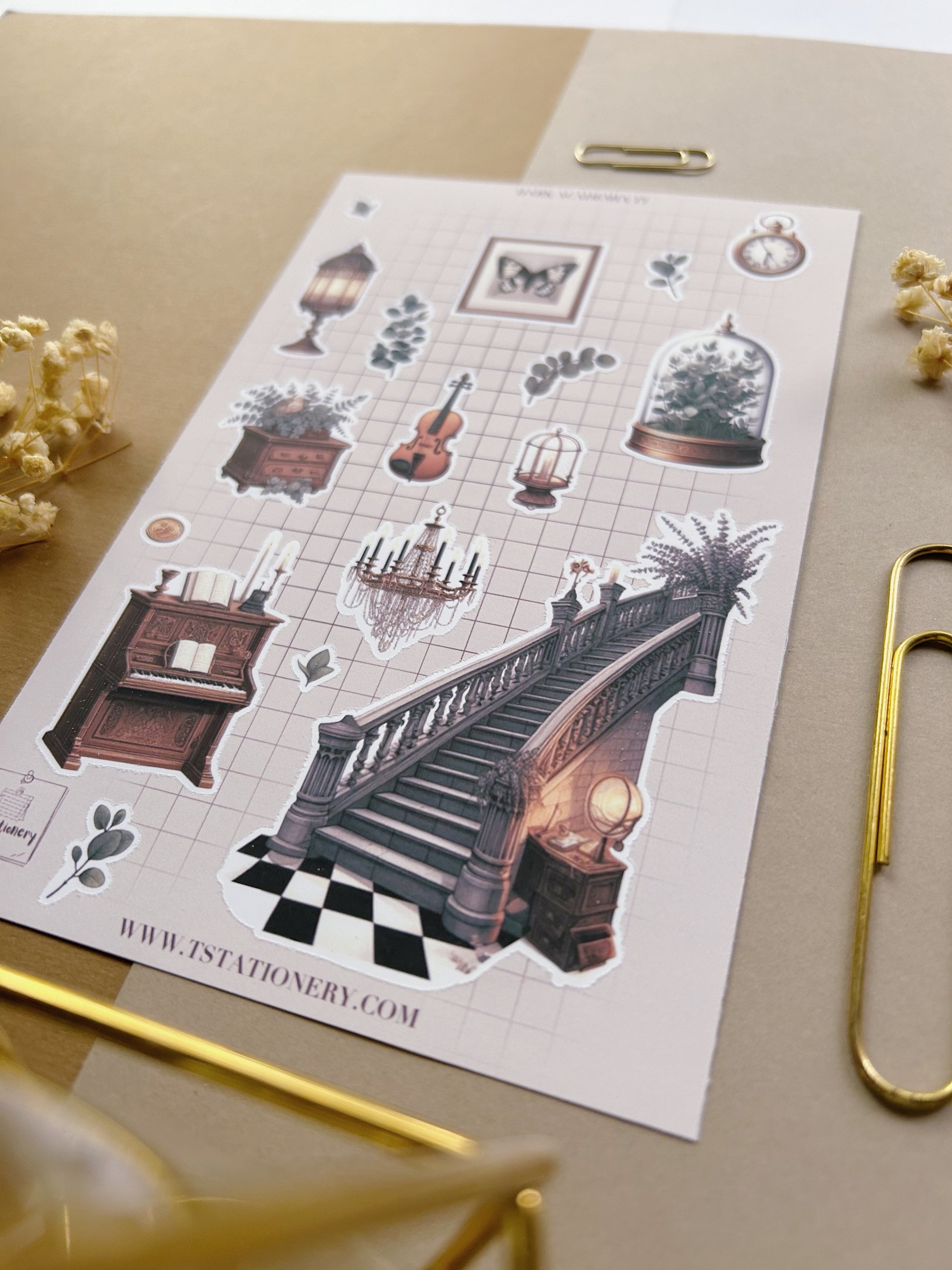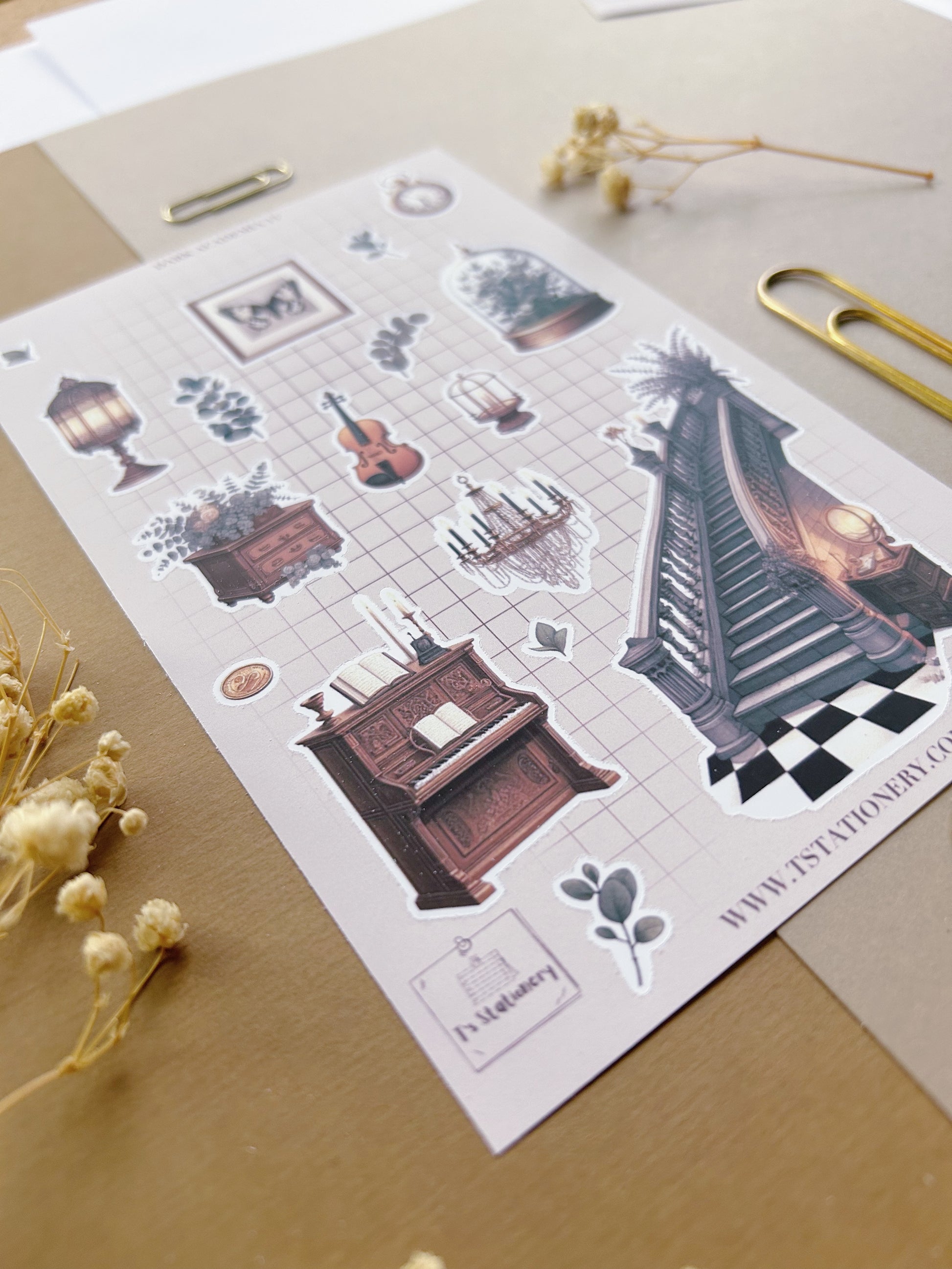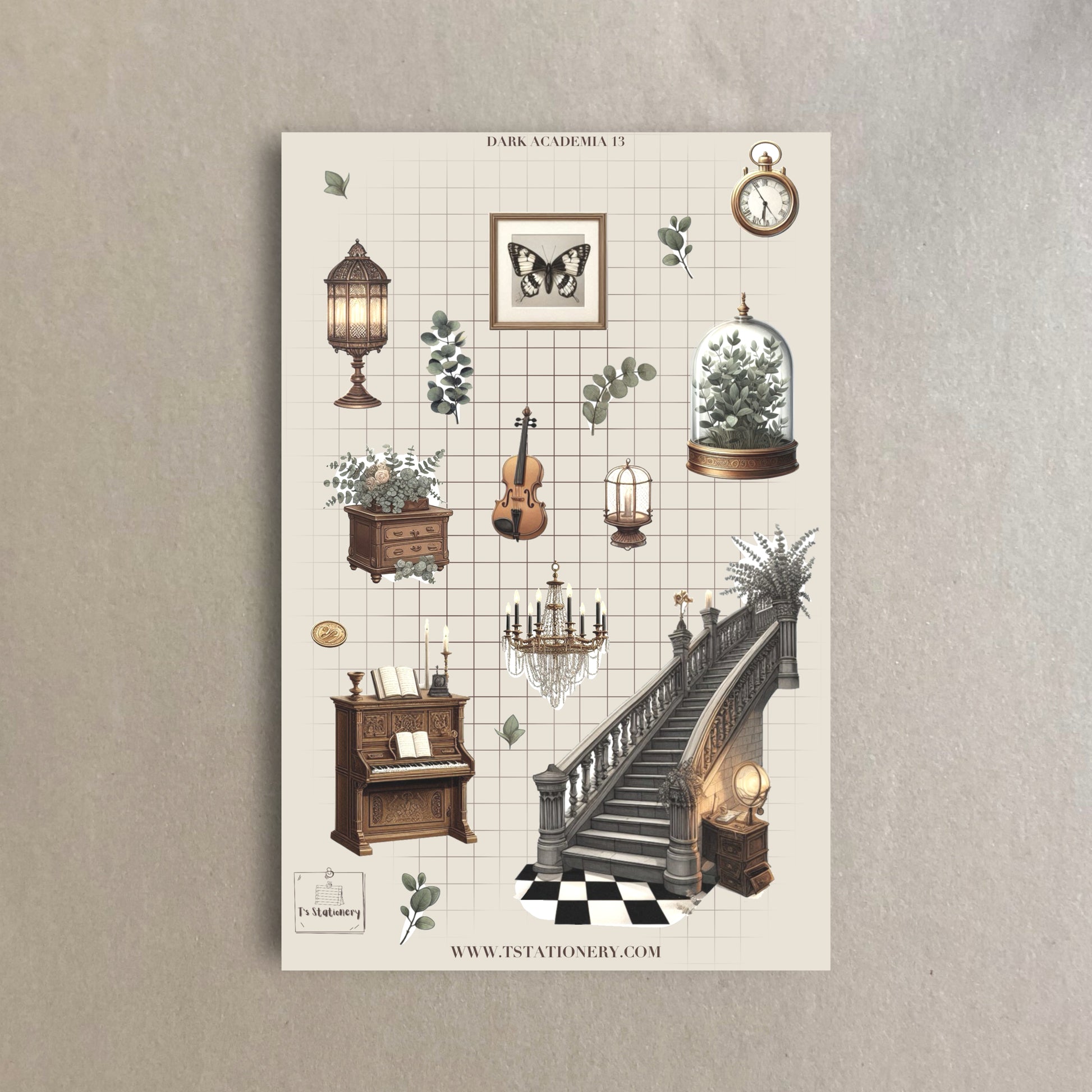 A dark academia sticker sheet, which is part of the new dark academia collection. It's perfect to use in your (reading) journal, planner or scrapbook. There are enough book stickers to play around with.