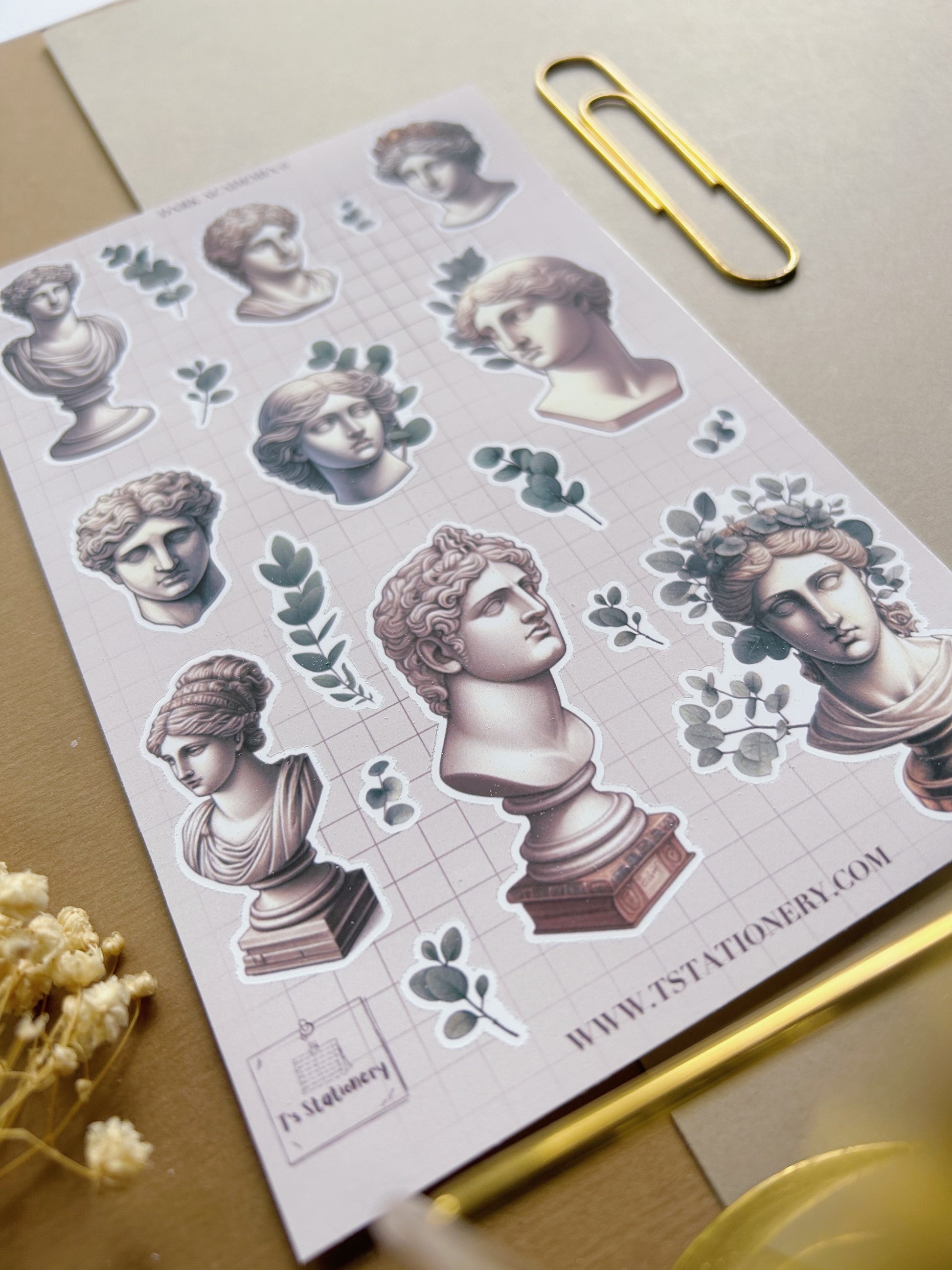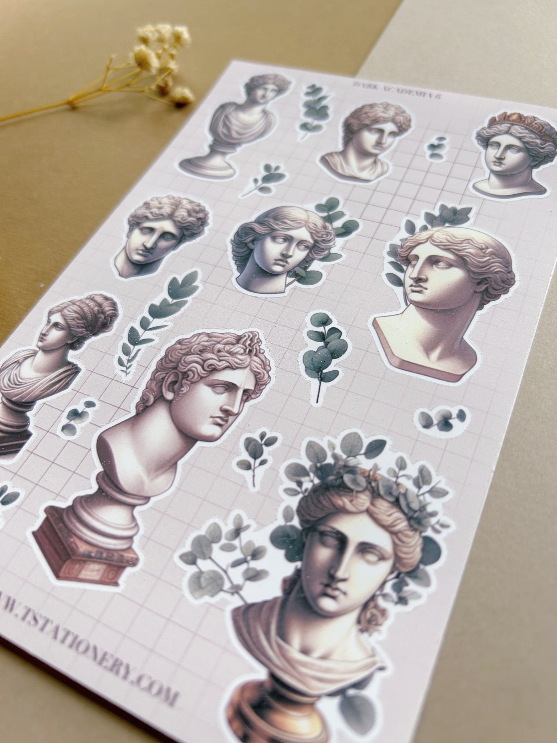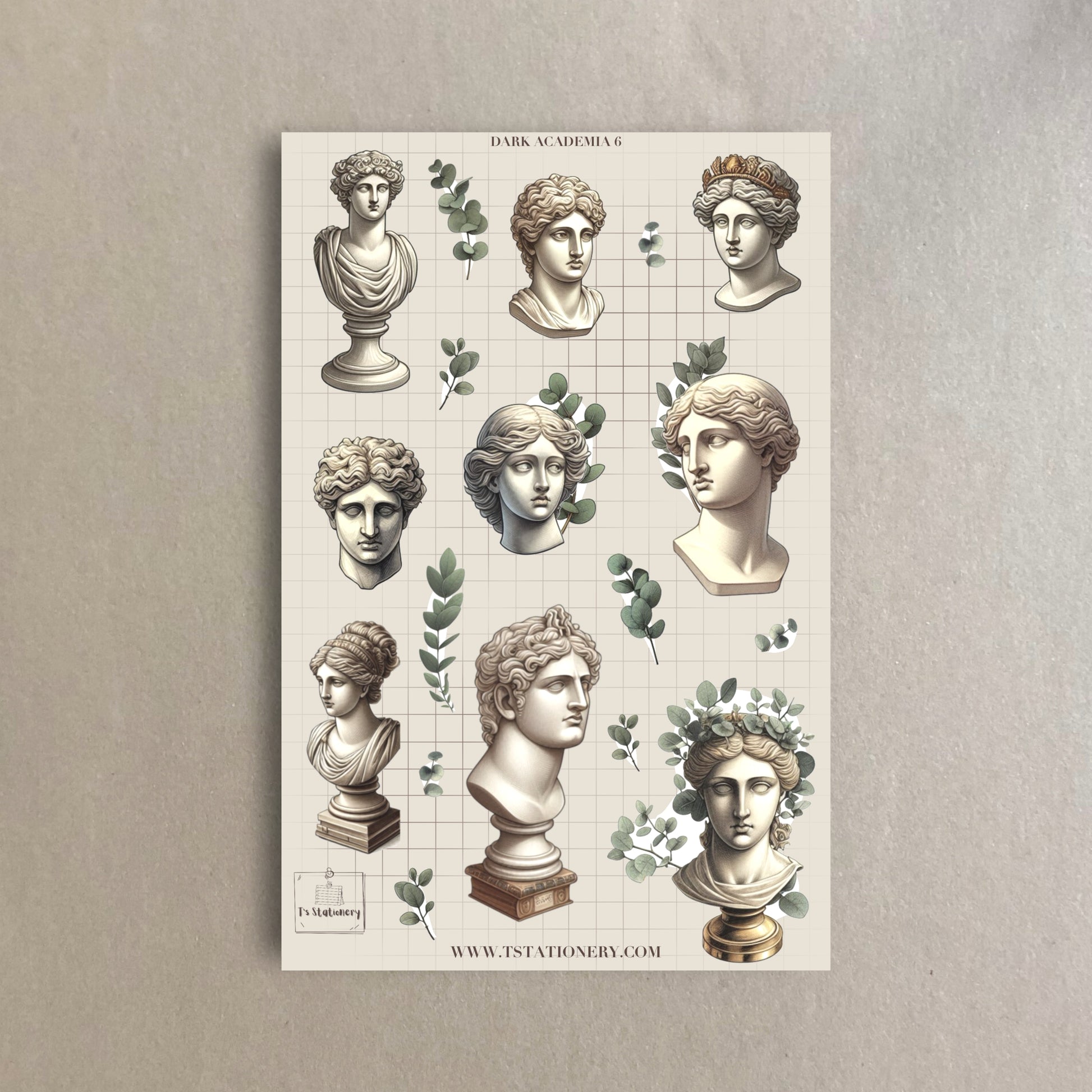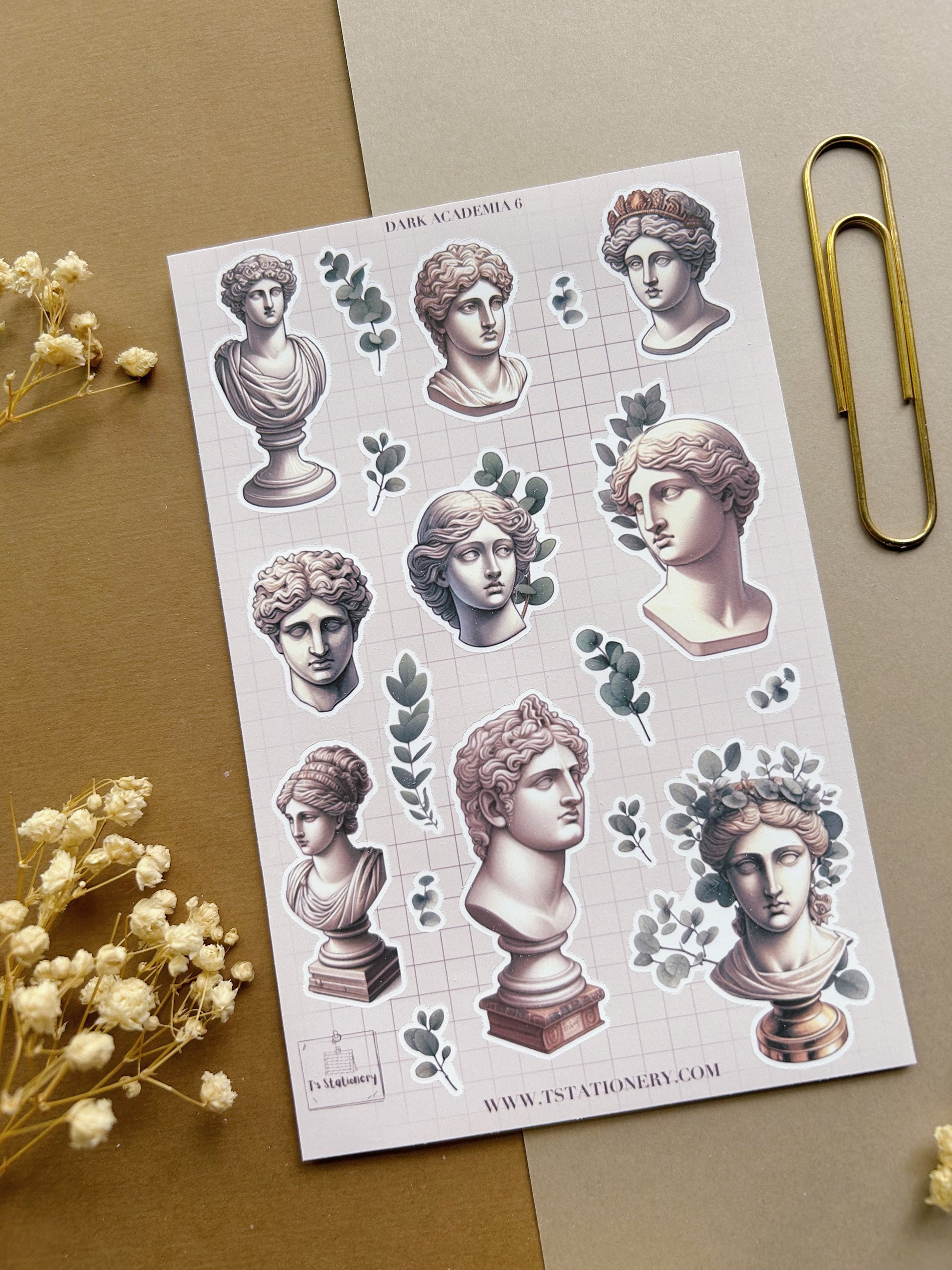 A dark academia sticker sheet, which is part of the new dark academia collection. It's perfect to use in your (reading) journal, planner or scrapbook. There are enough stickers to play around with.