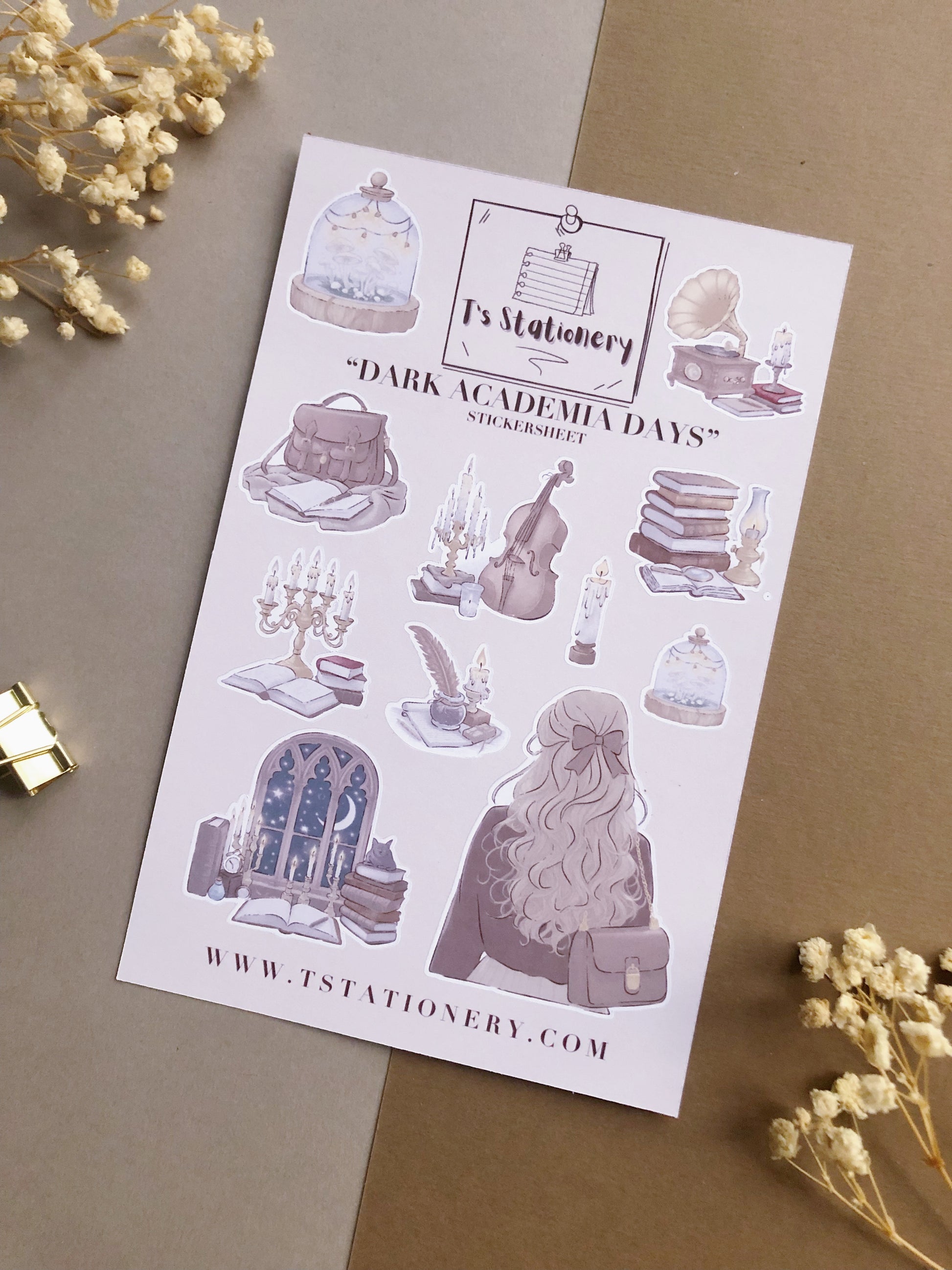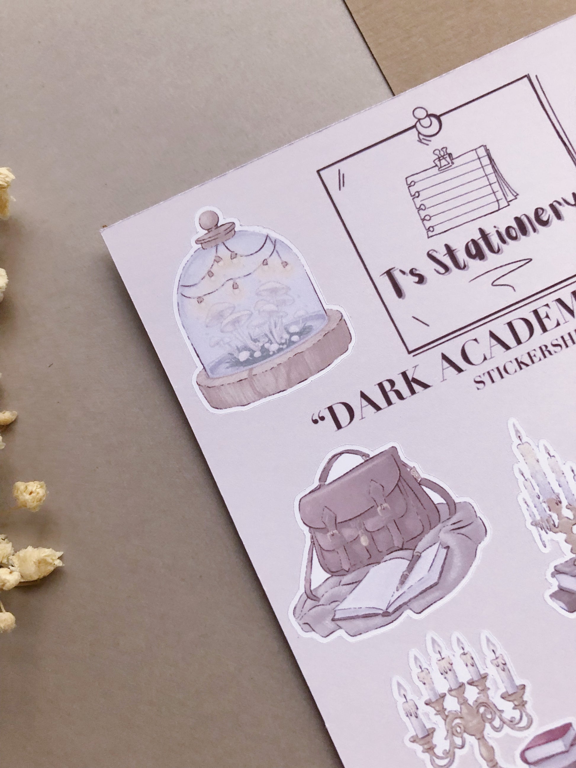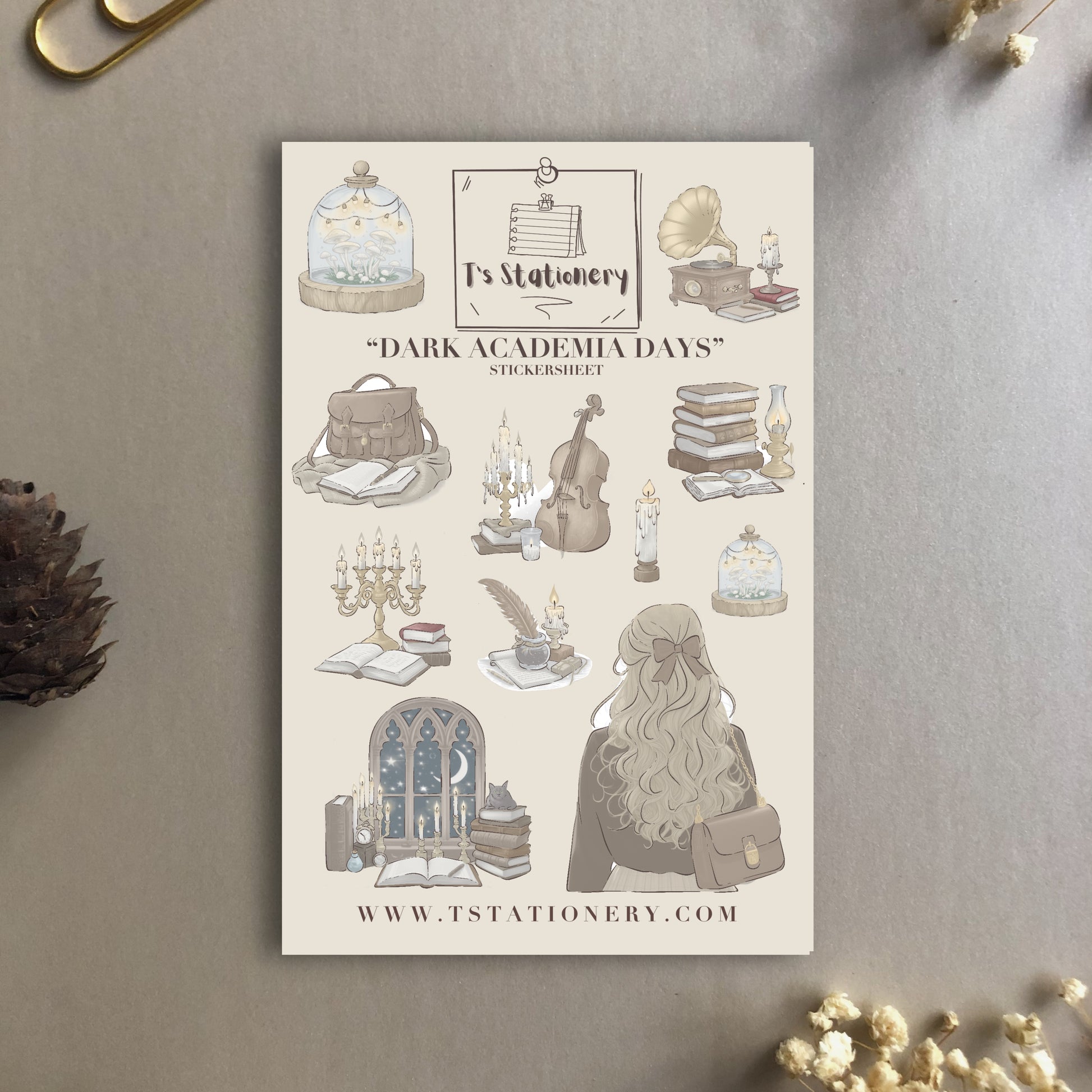 A dark academia sticker sheet, perfect to use in your journal, planner or scrapbook.