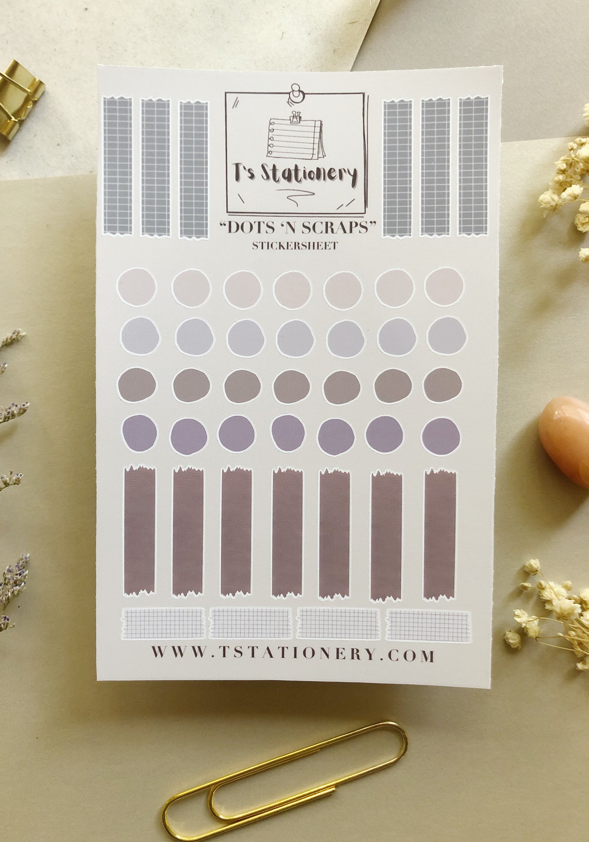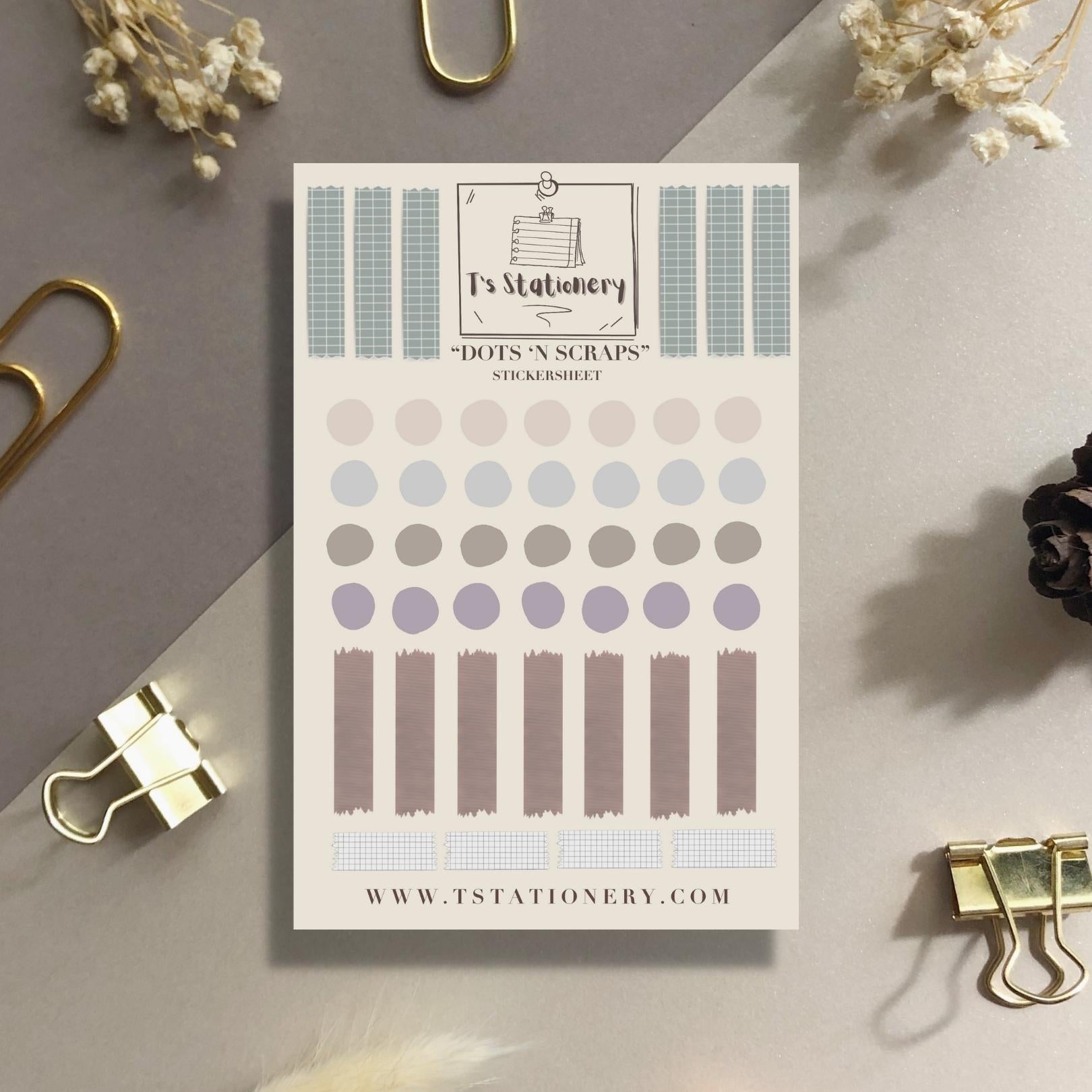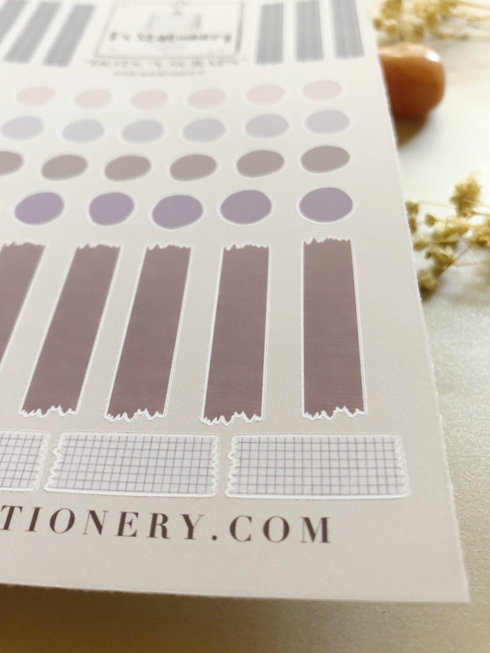 This planner sticker sheet is filled with dots and paper scraps. The pastel and natural colors will make sure your bullet journal or planner won't be getting too crowded.