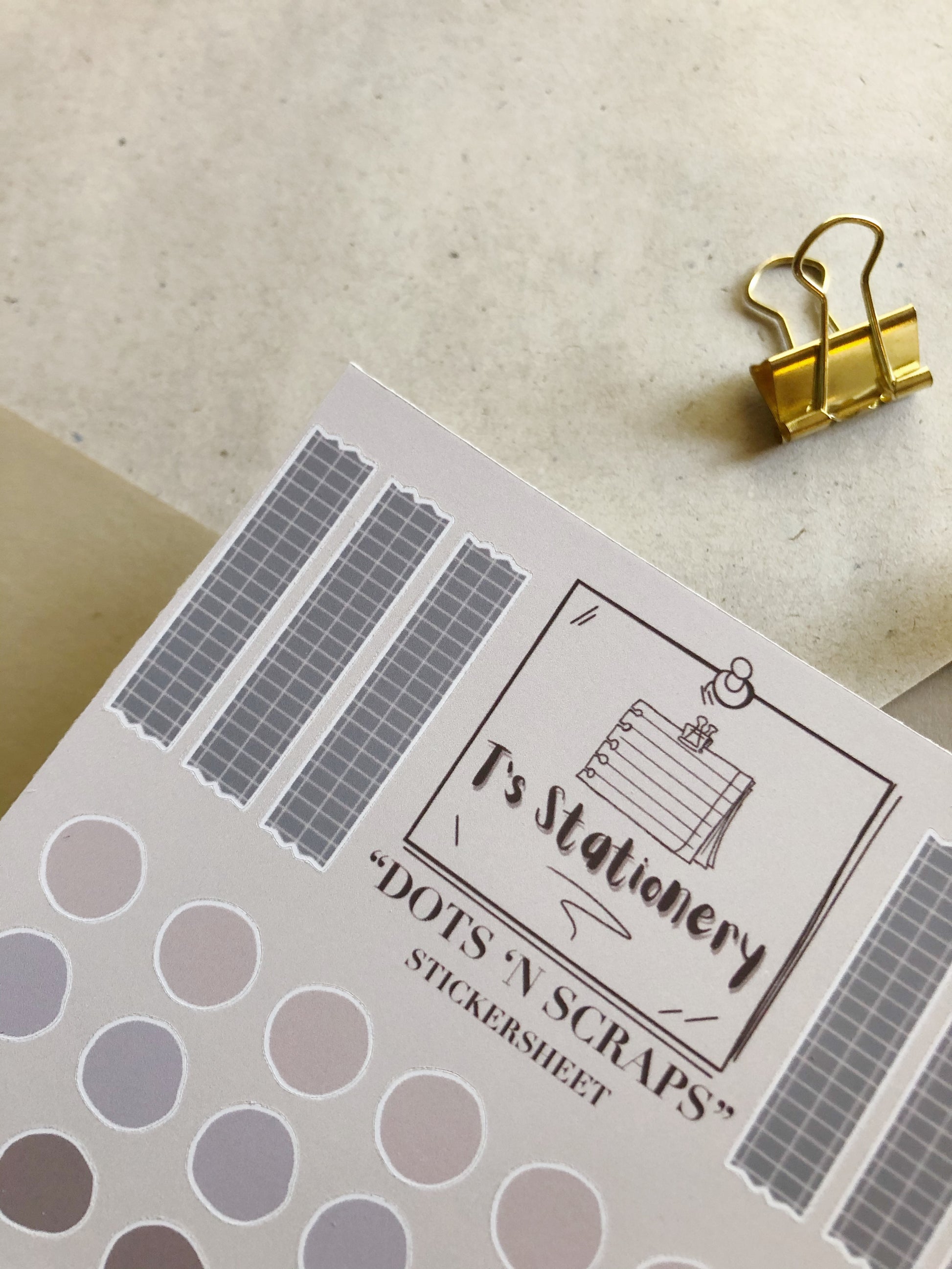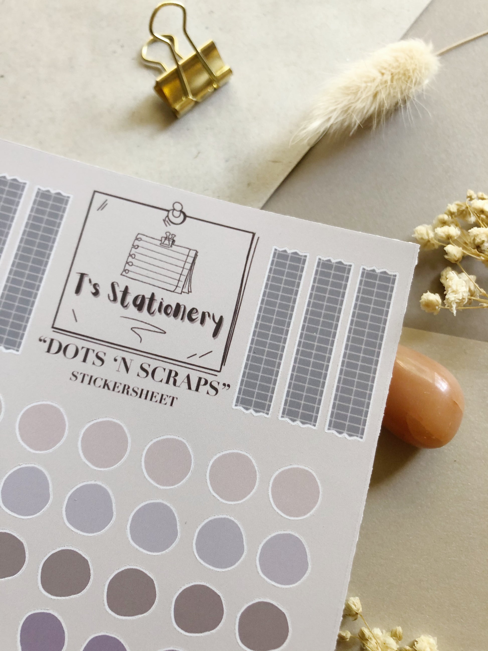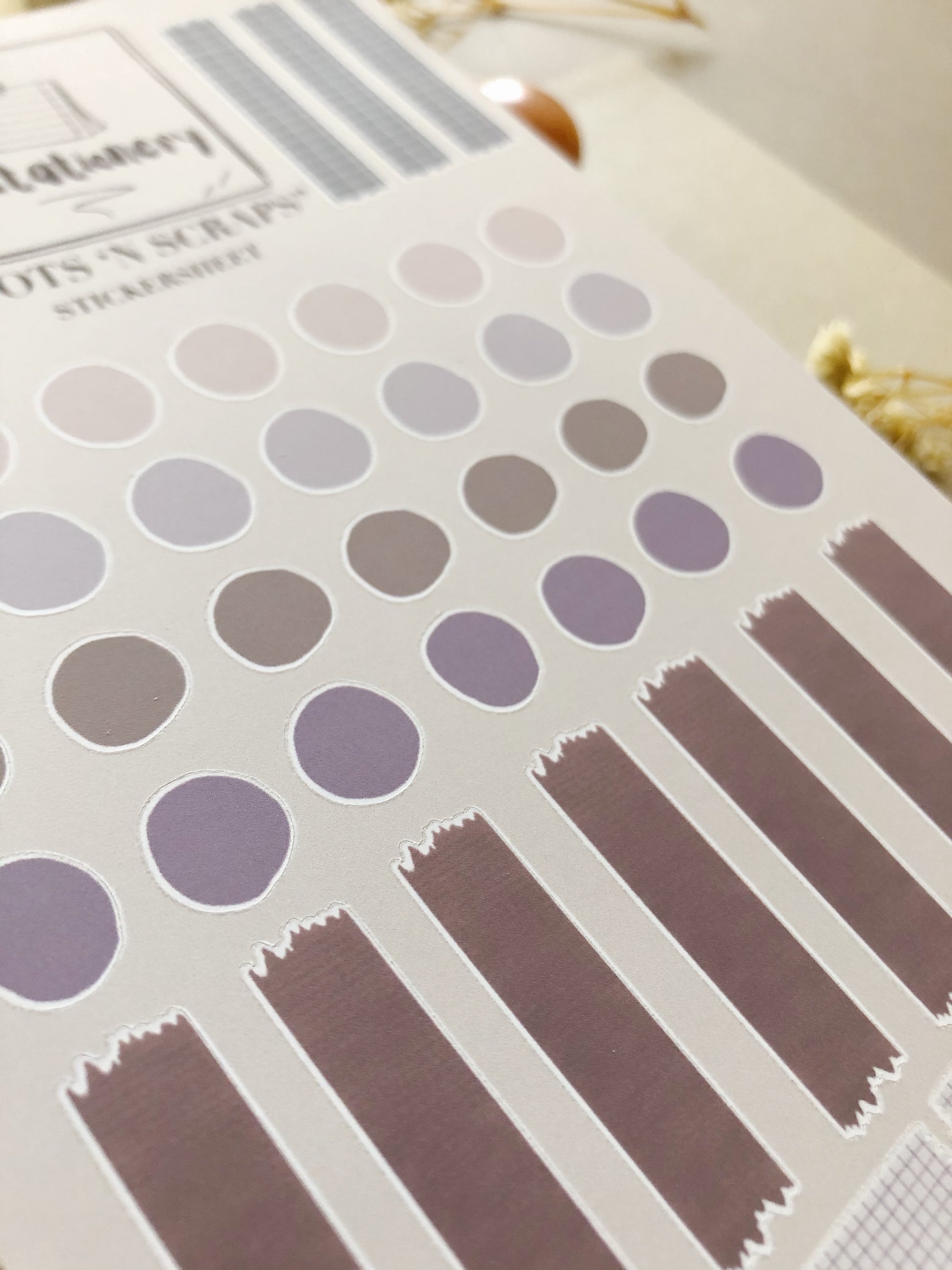 This planner sticker sheet is filled with dots and paper scraps. The pastel and natural colors will make sure your bullet journal or planner won't be getting too crowded.