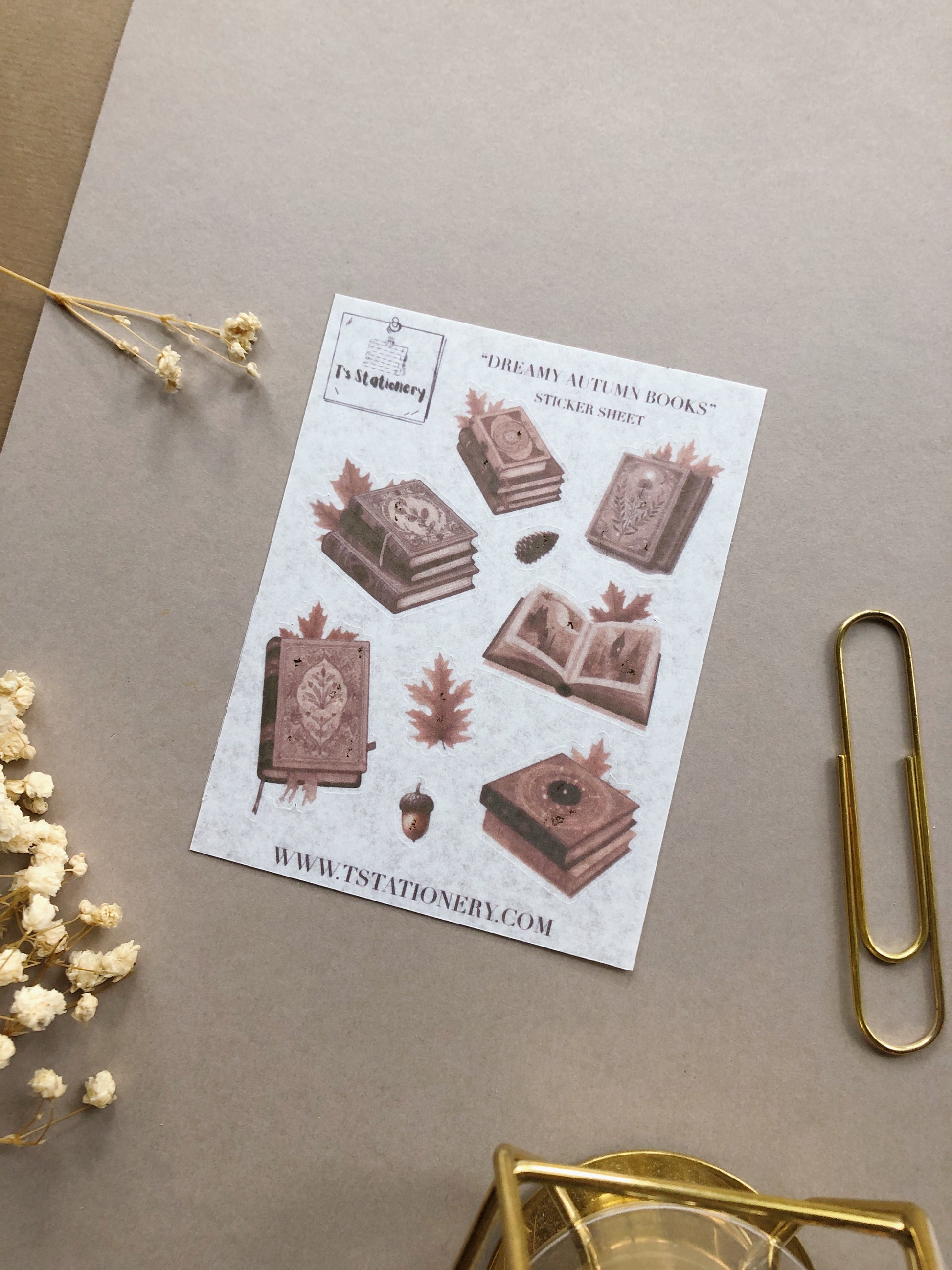 Add a touch of autumn to your planners, journals, and crafts with our dreamy/fall book stickers! Each sticker sheet measures 8.29 cm x 10.75 cm (approximately 3.26 inches x 4.23 inches), making it the perfect size to fit in your stationery collection. And, there's gold foil sparkles added by hand :)