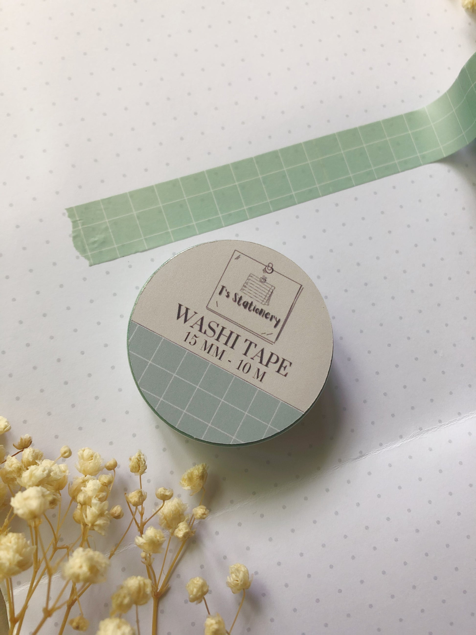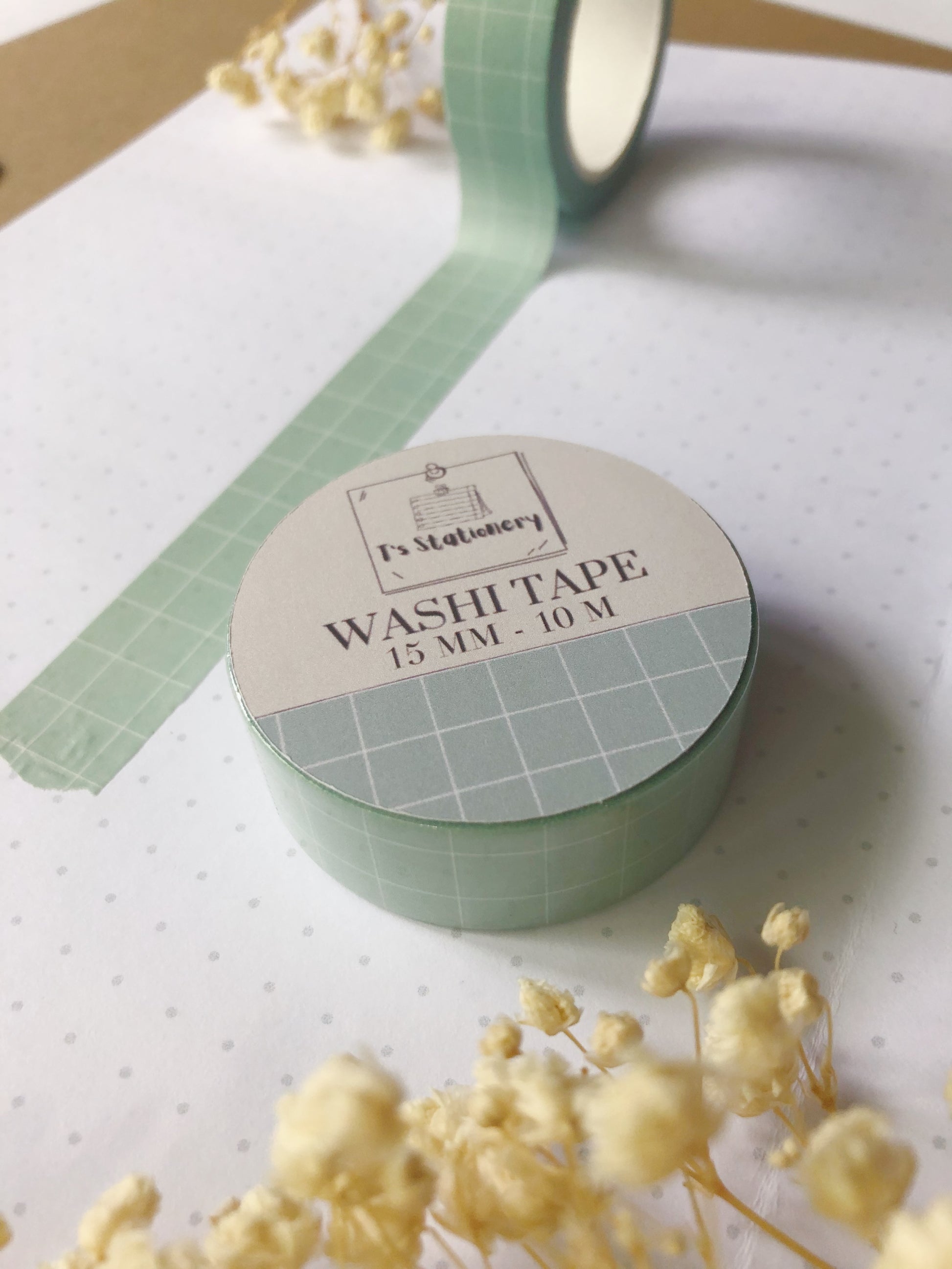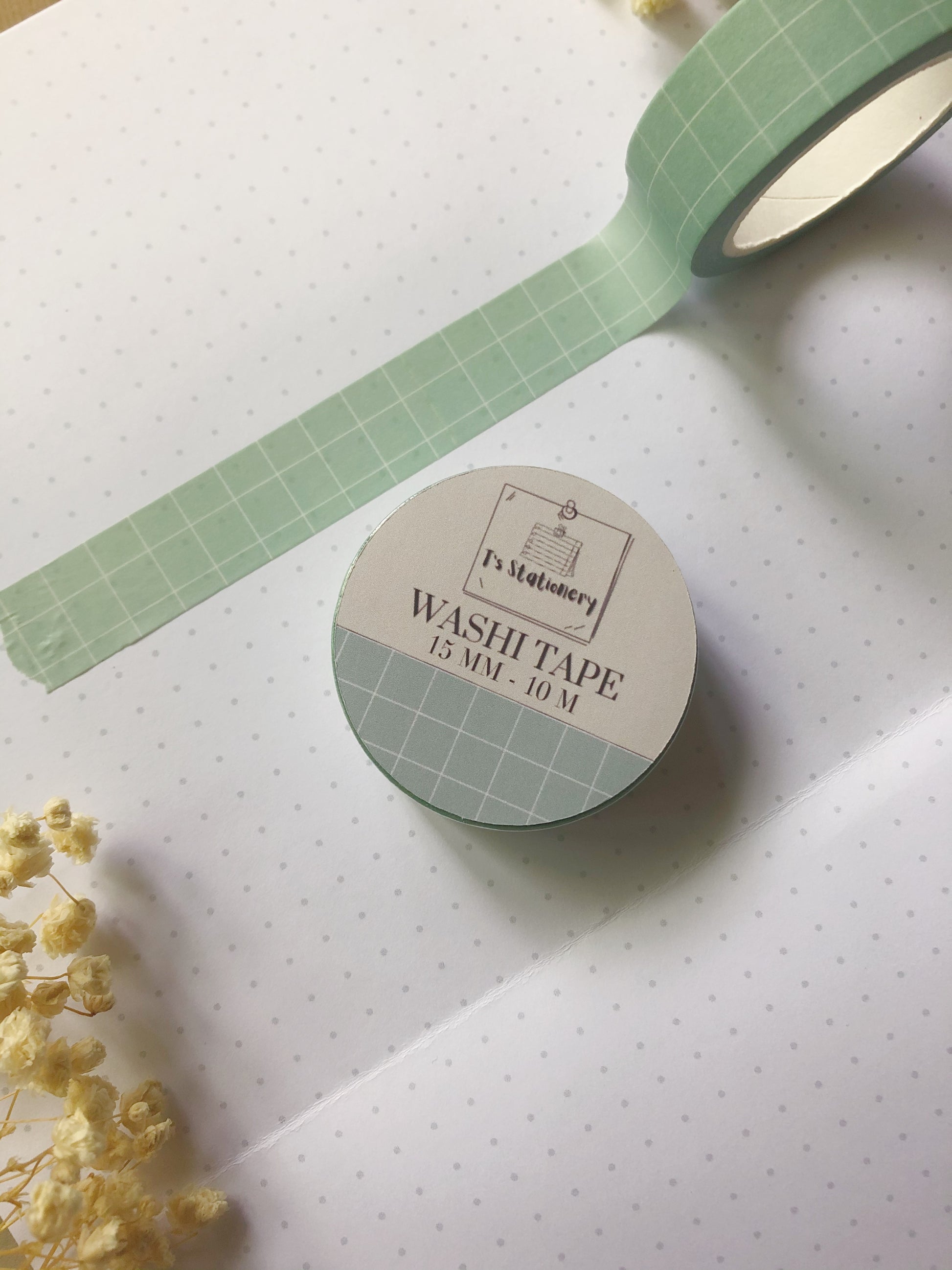 Green washi tape with white grid lines, made for your journal, planner, or scrapbook!