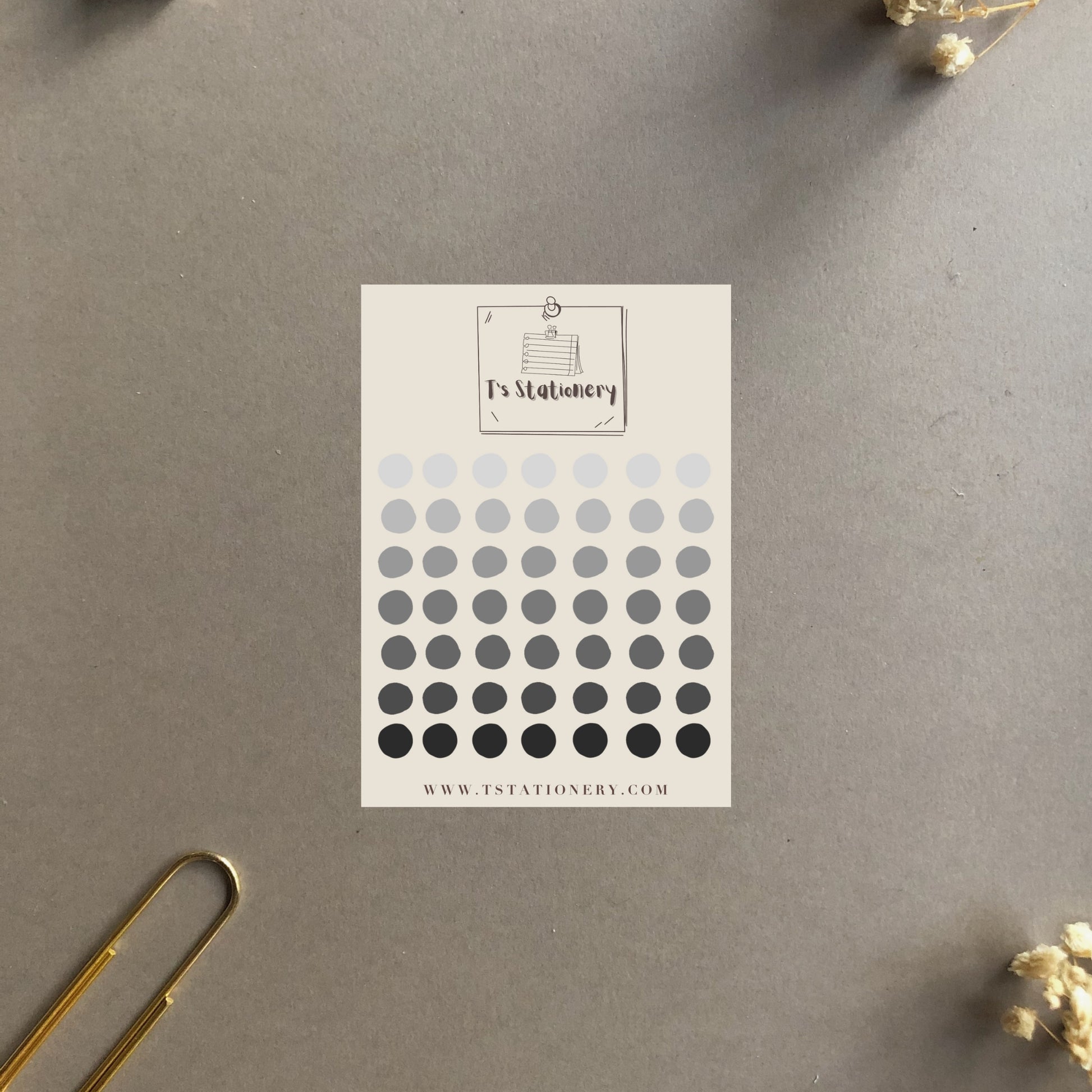 This sticker sheet contains 49 dot stickers which are 8 mm in width and length. 8 mm is 0.31 inch.