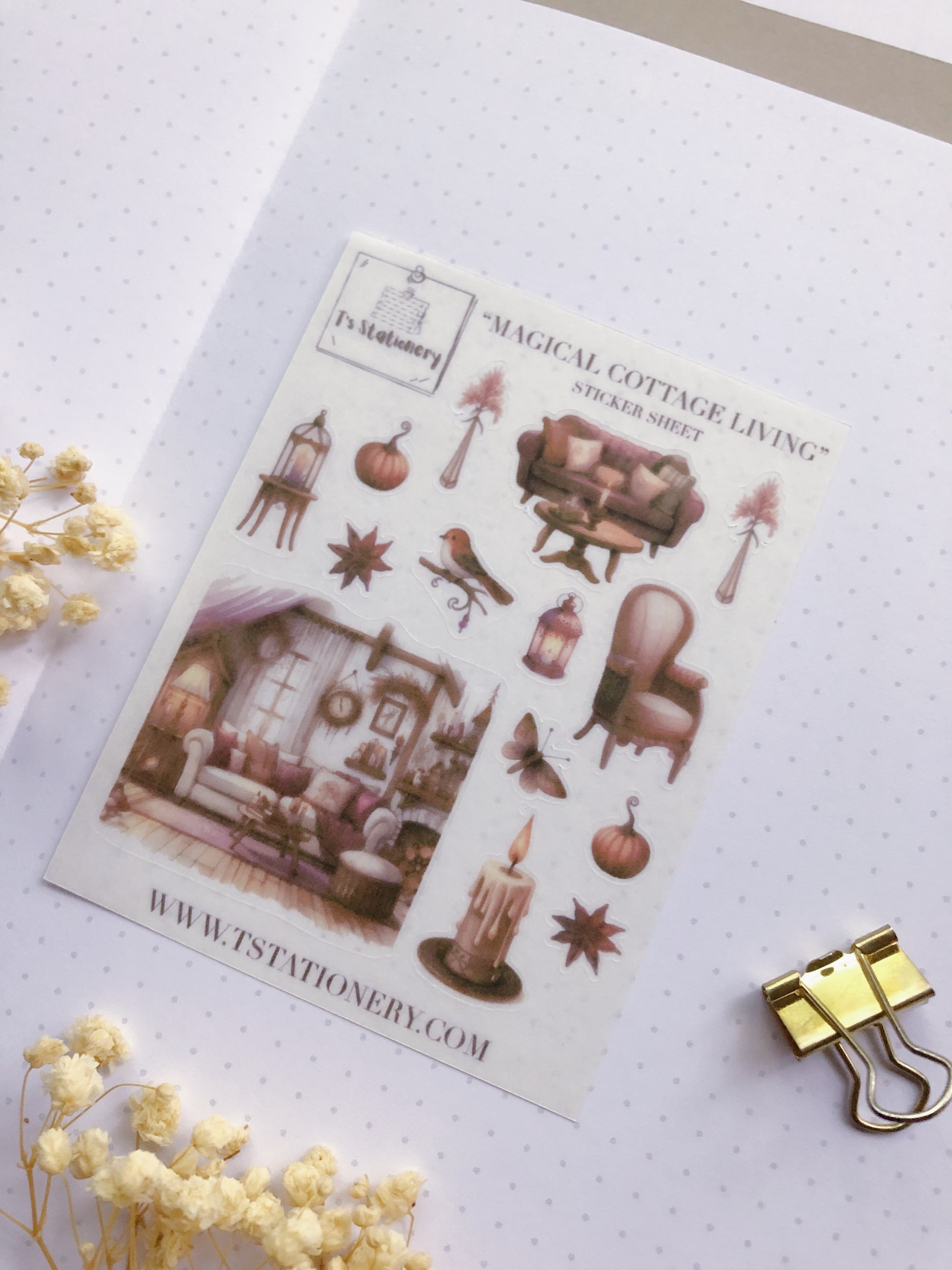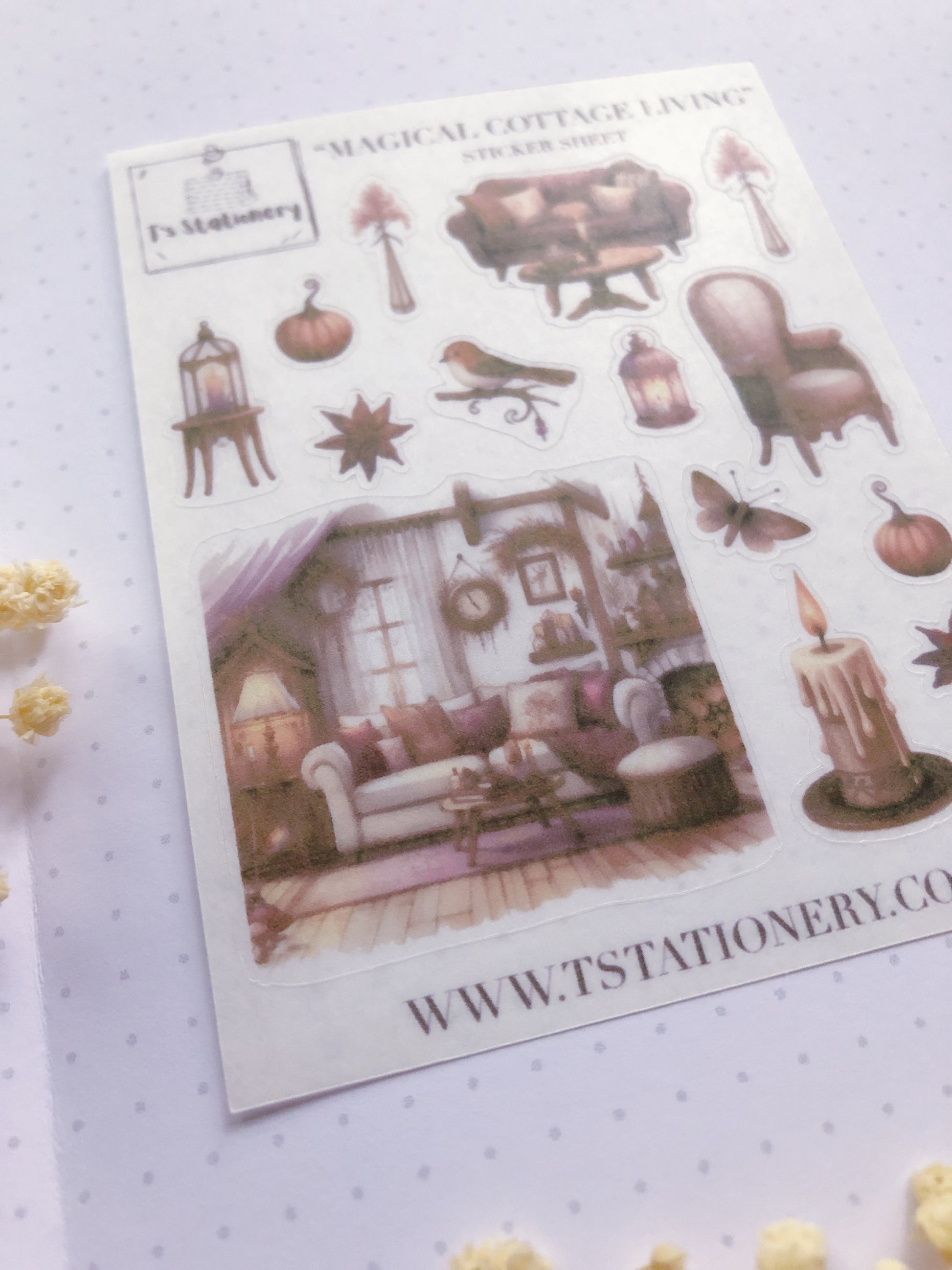 Transform your journaling and crafting projects with our Magical Cottage Living Washi Sticker Sheet. Measuring 8.25 cm x 10.75 cm (approximately 3.25 inches x 4.25 inches), this charming sheet includes 15 beautifully designed stickers that evoke the cozy and whimsical atmosphere of a magical cottage. The stickers are around 2,5 - 3 cm in width and length. (0.98 - 1.18 Inches)