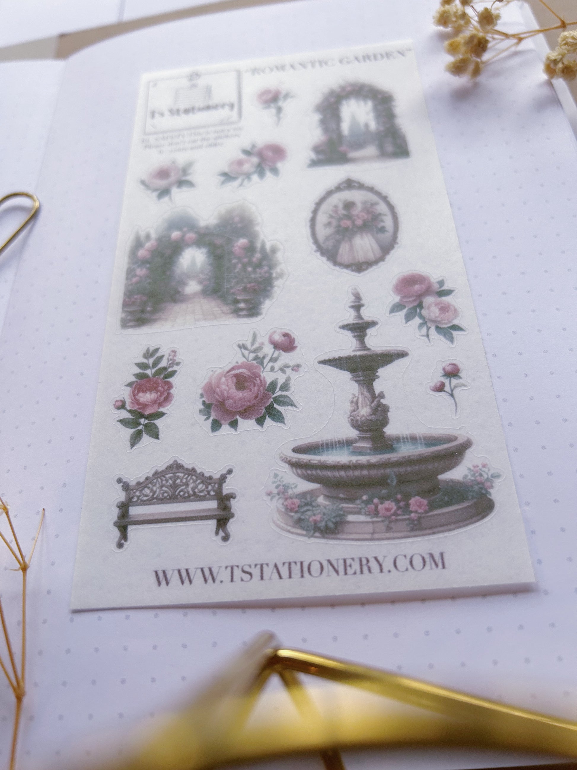 Add a romantic touch to your planners, journals, and crafts with our romantic garden stickers! Each sticker sheet measures 8,5 cm x 15,5 cm (approximately 3.35 inches x 6.10 inches), making it the perfect size to fit in your stationery collection.