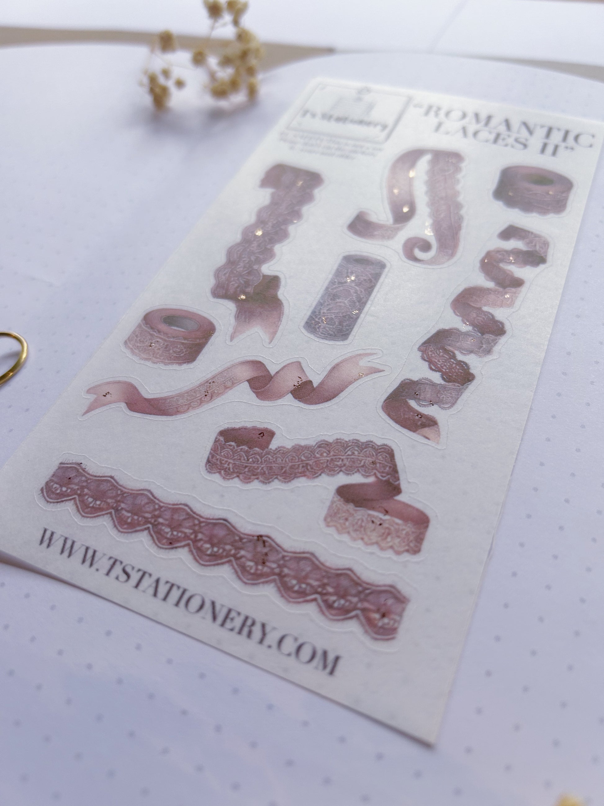 "Romantic Laces II" Washi Sticker Sheet W Rose Gold Foil