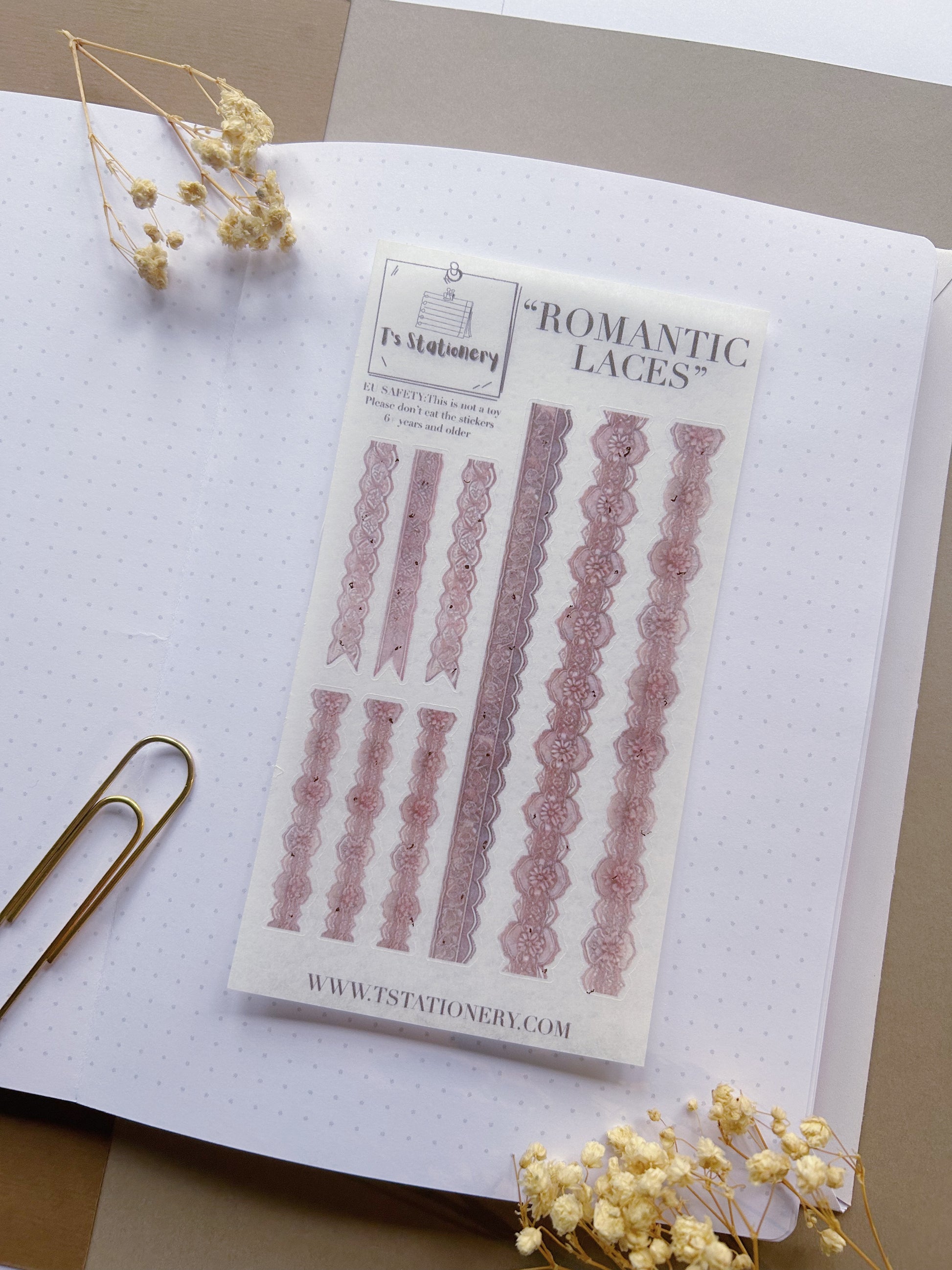 "Romantic Laces" Washi Sticker Sheet W Rose Gold Foil