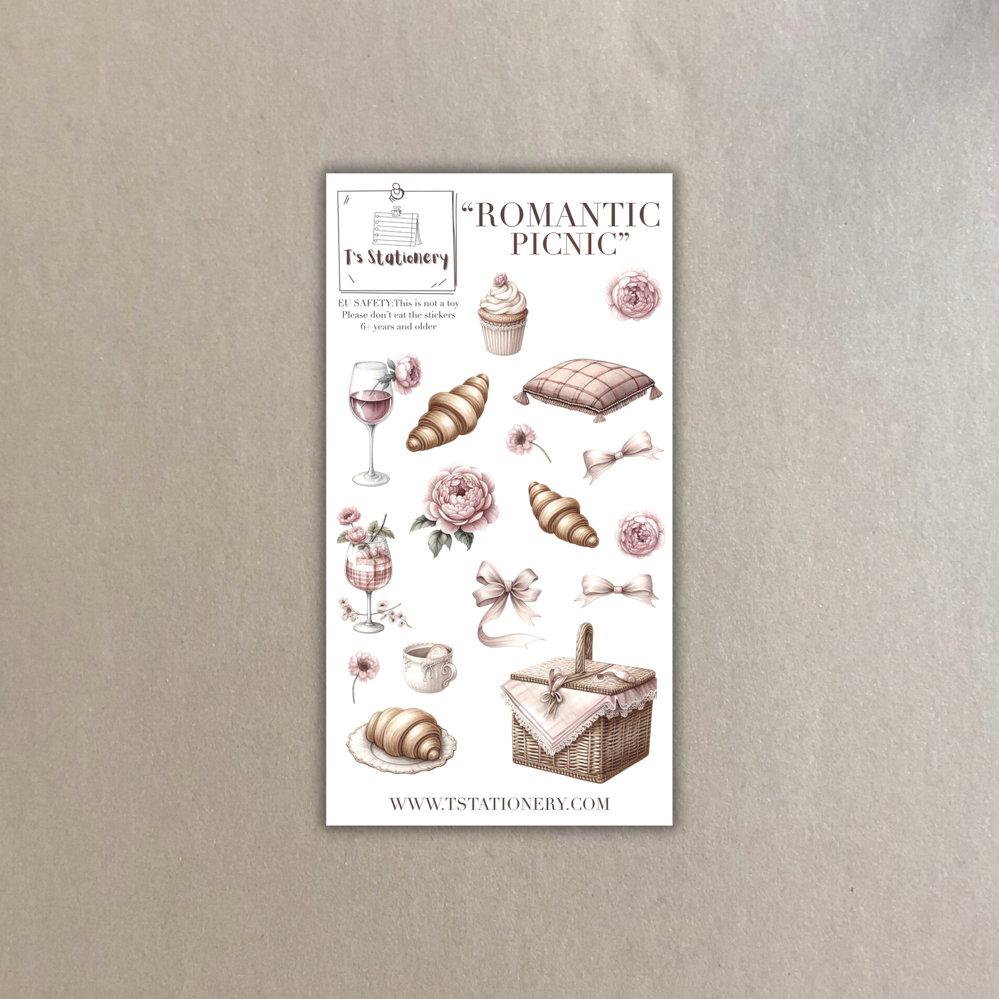 These romantic picnic stickers are made to give your journal, planner or scrapbook a soft pink floral touch! They also go perfectly on your laptop, e-reader or on some other clean/not textured and dry surfaces.