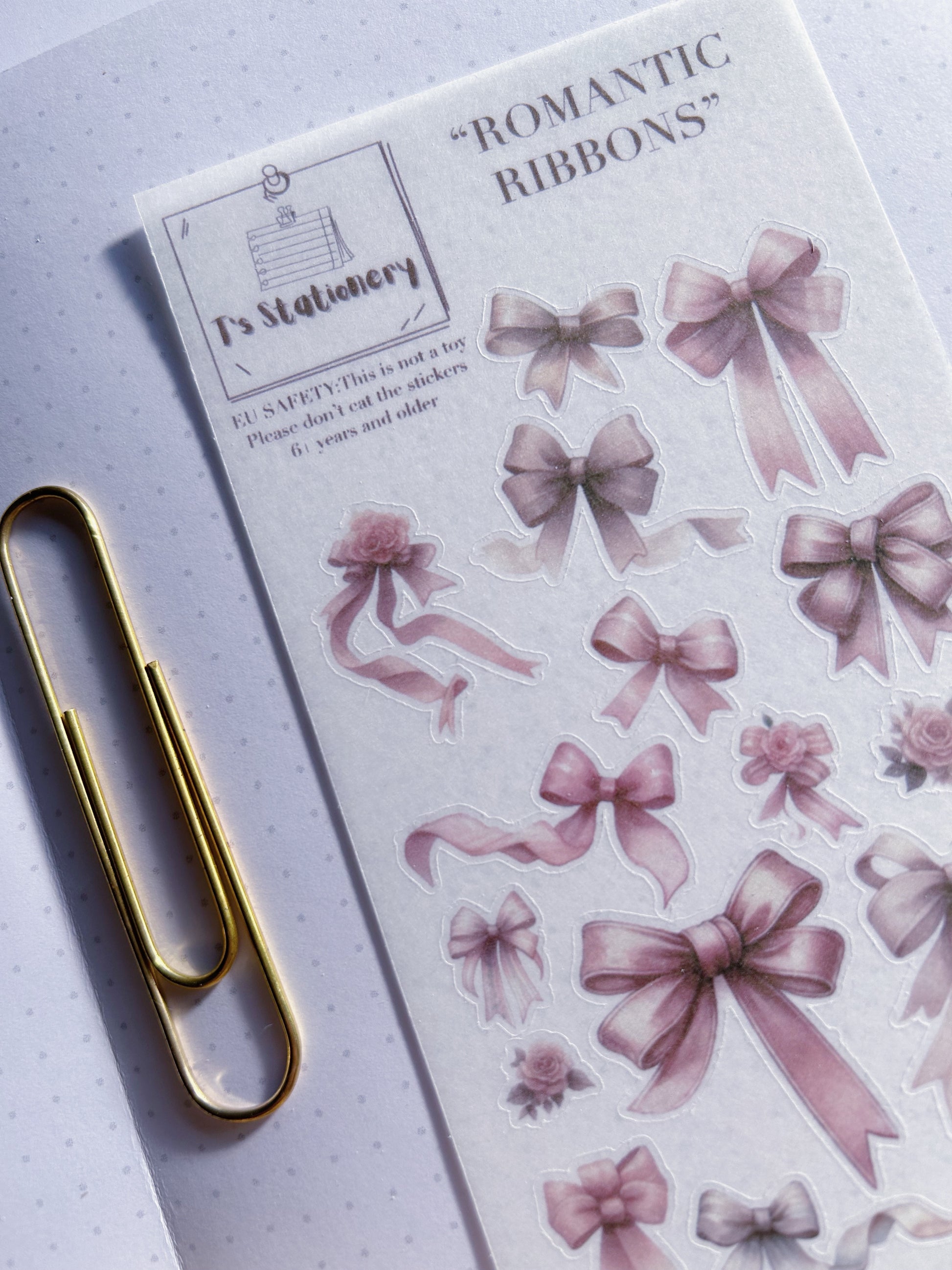 These romantic ribbon stickers are perfect to give your journal, planner or scrapbook romantic coquette vibes. Laces, ribbons and bows can be found on this sticker sheet.