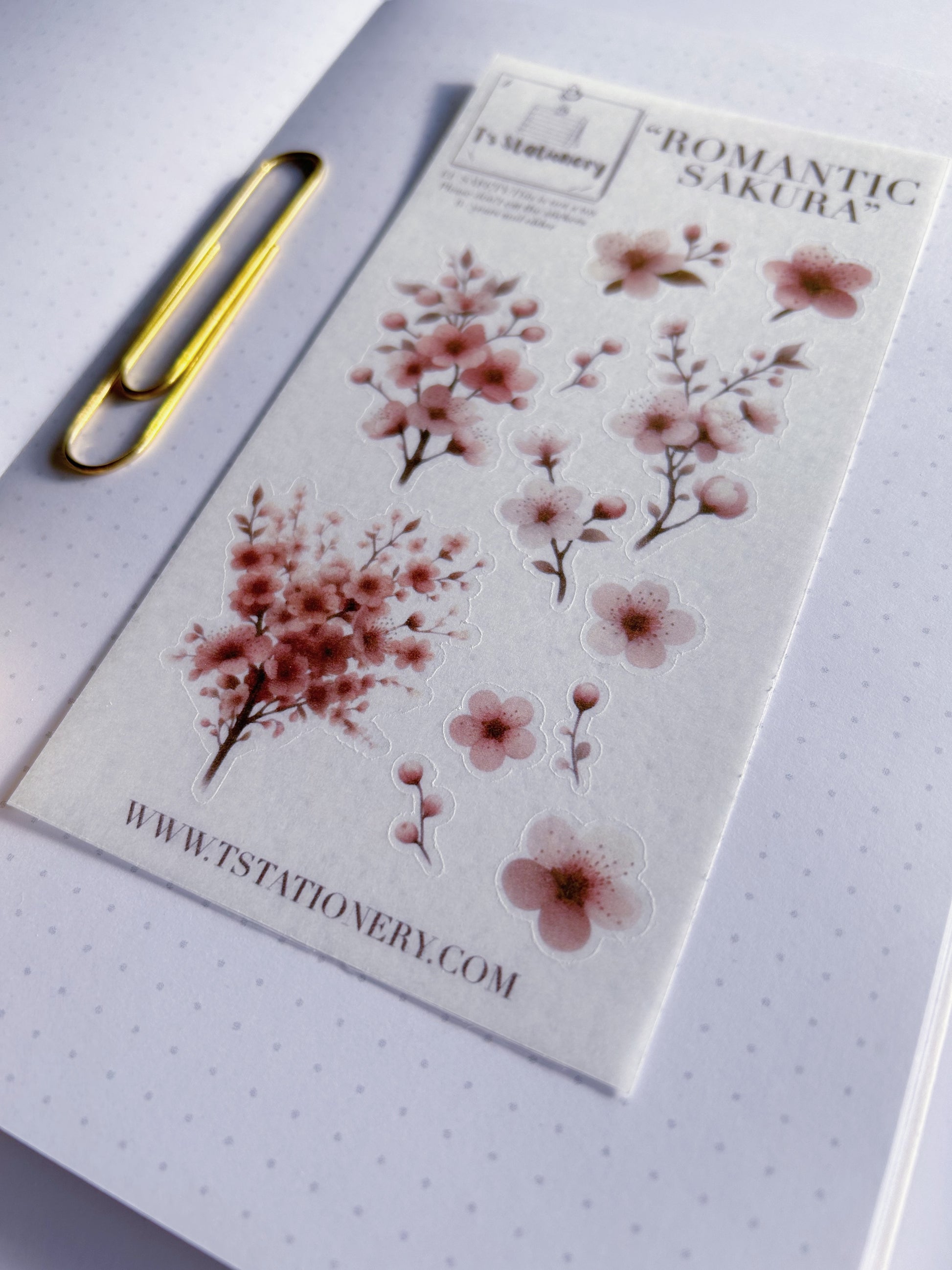 These romantic sakura stickers (cherry blossom stickers) are made to give your journal, planner or scrapbook a soft pink floral touch! They also go perfectly on your laptop, e-reader or on some other clean/not textured and dry surfaces.