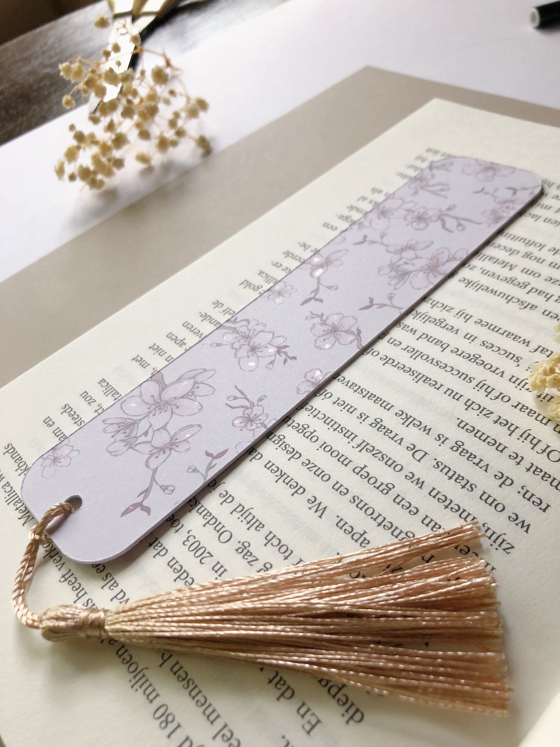 This sakura bookmark is made with love and patience as the rose gold foil sparkles are all added by hand. This floral bookmark is perfect to gift to your best book lover friend, or to yourself! This dreamy sparkly aesthetic bookmark will sometimes take you away from your book on trip on an imaginational dreamy sakura cloud. There's a rose gold/champagne colored tassel attached to make it even more sparkly.
