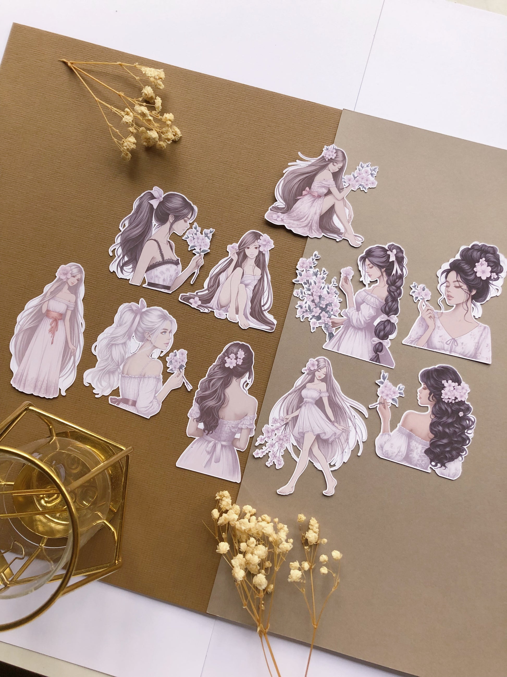These Sakura Goddess die cut girl stickers are made to make the prettiest collages and pages in your journal, planner or scrapbook and are perfect for the upcoming spring! There are 10 girls inside the bag.