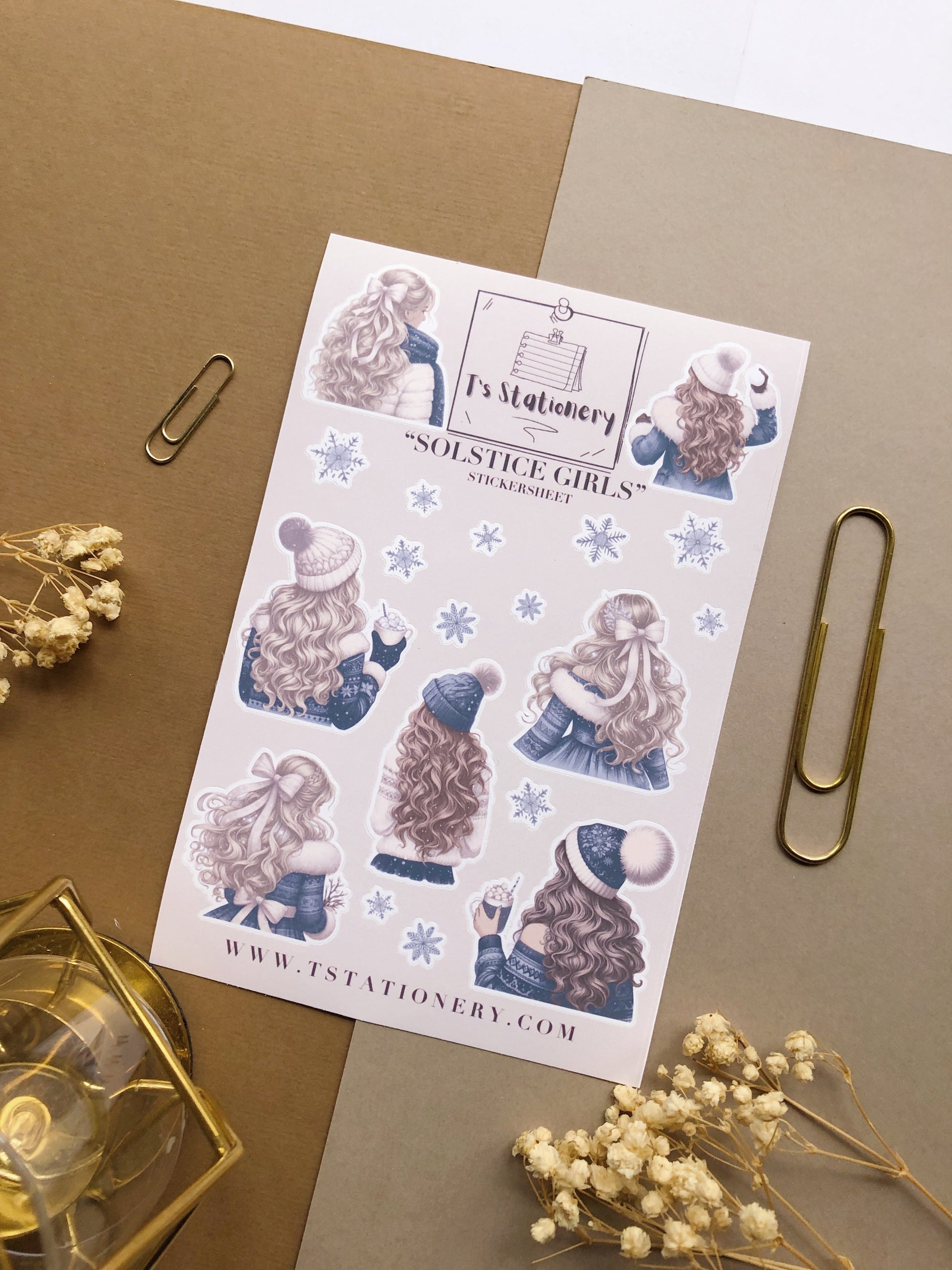 This girls sticker sheet is called "Solstice Girls" and contains all 6 girl stickers which can be found in the die cut fall girls stickers bag and two of the other girls of the new winter collection. I figured that not everyone wants to make collages or wants to use bigger girl stickers so I decided to add all 8 girls on 1 single sticker sheet.