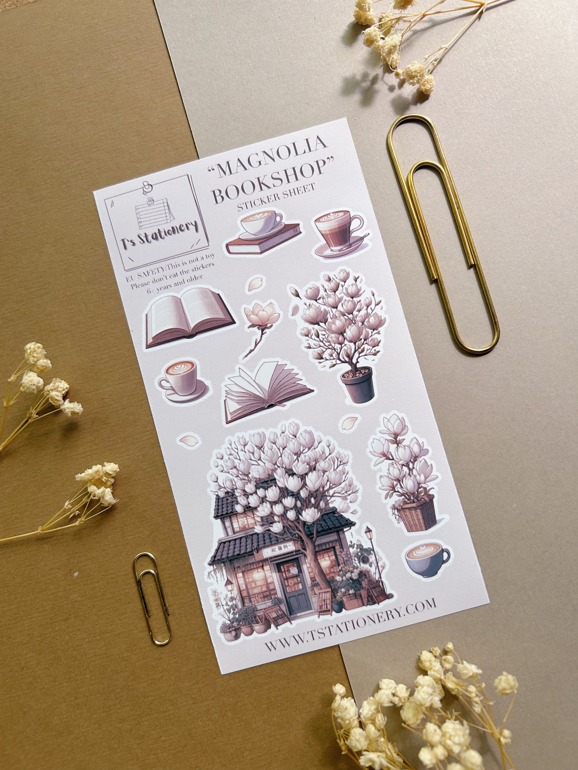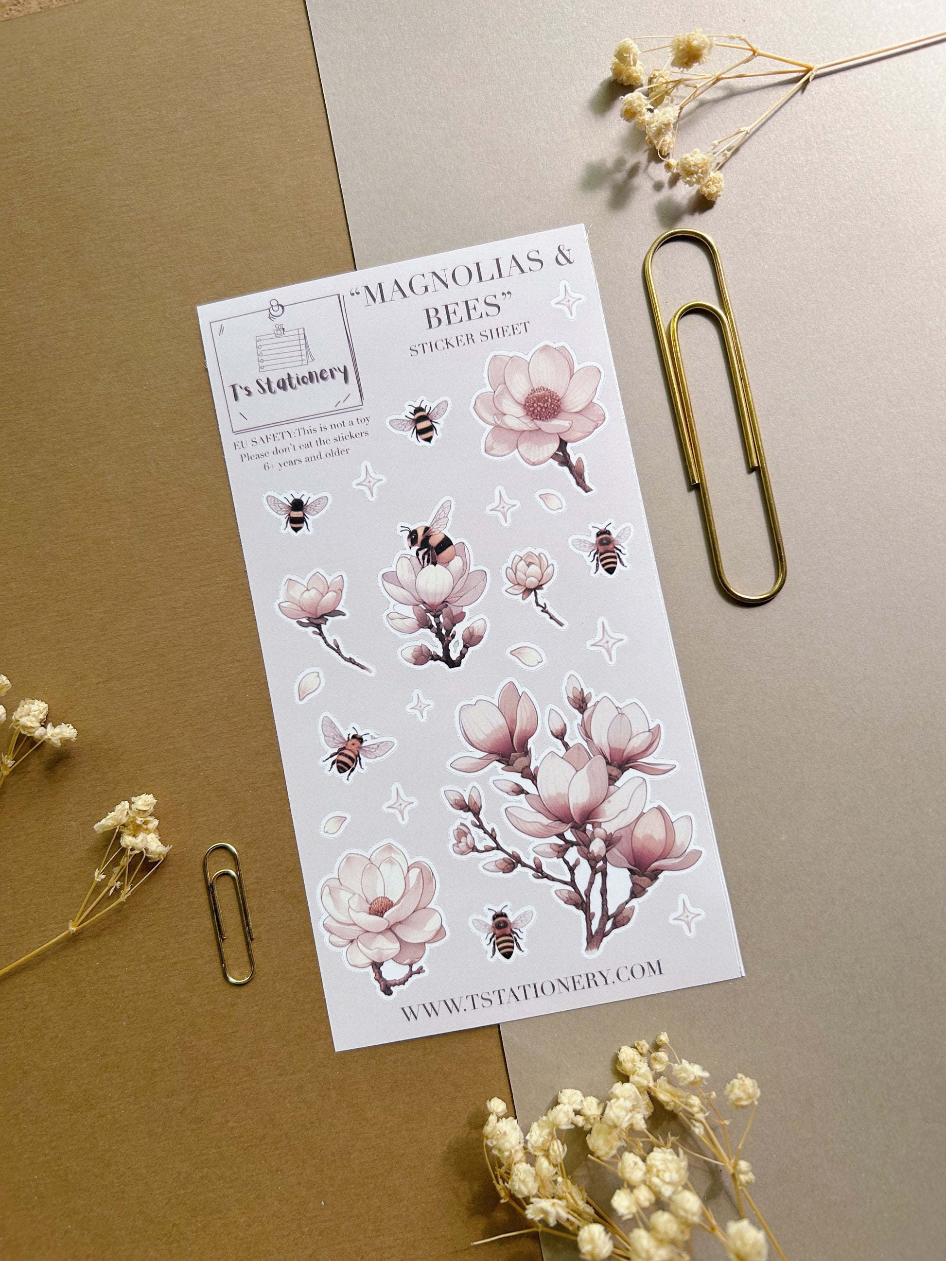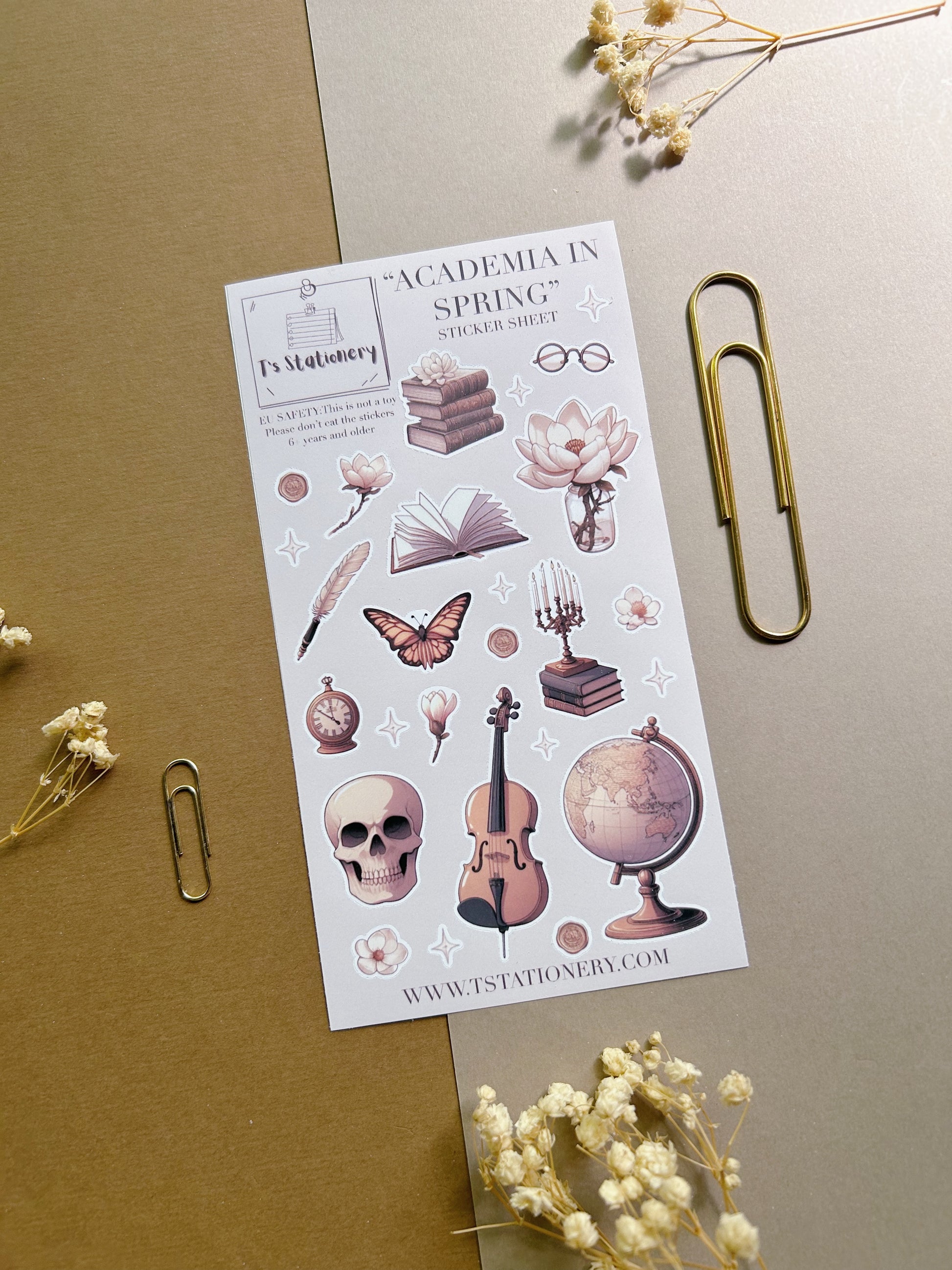 This spring sticker bundle of 5 sticker sheets has a total of 100 spring stickers! Enough decorative stickers to use in your journal, planner or scrapbook during spring time and summer. This sticker set contains stickers such as: lots of tiny bees, magnolia flowers, a bookshop, books, academia themed illustrations and much more! All in muted yet vibrant colors. This will give your spreads a chique and calm look.