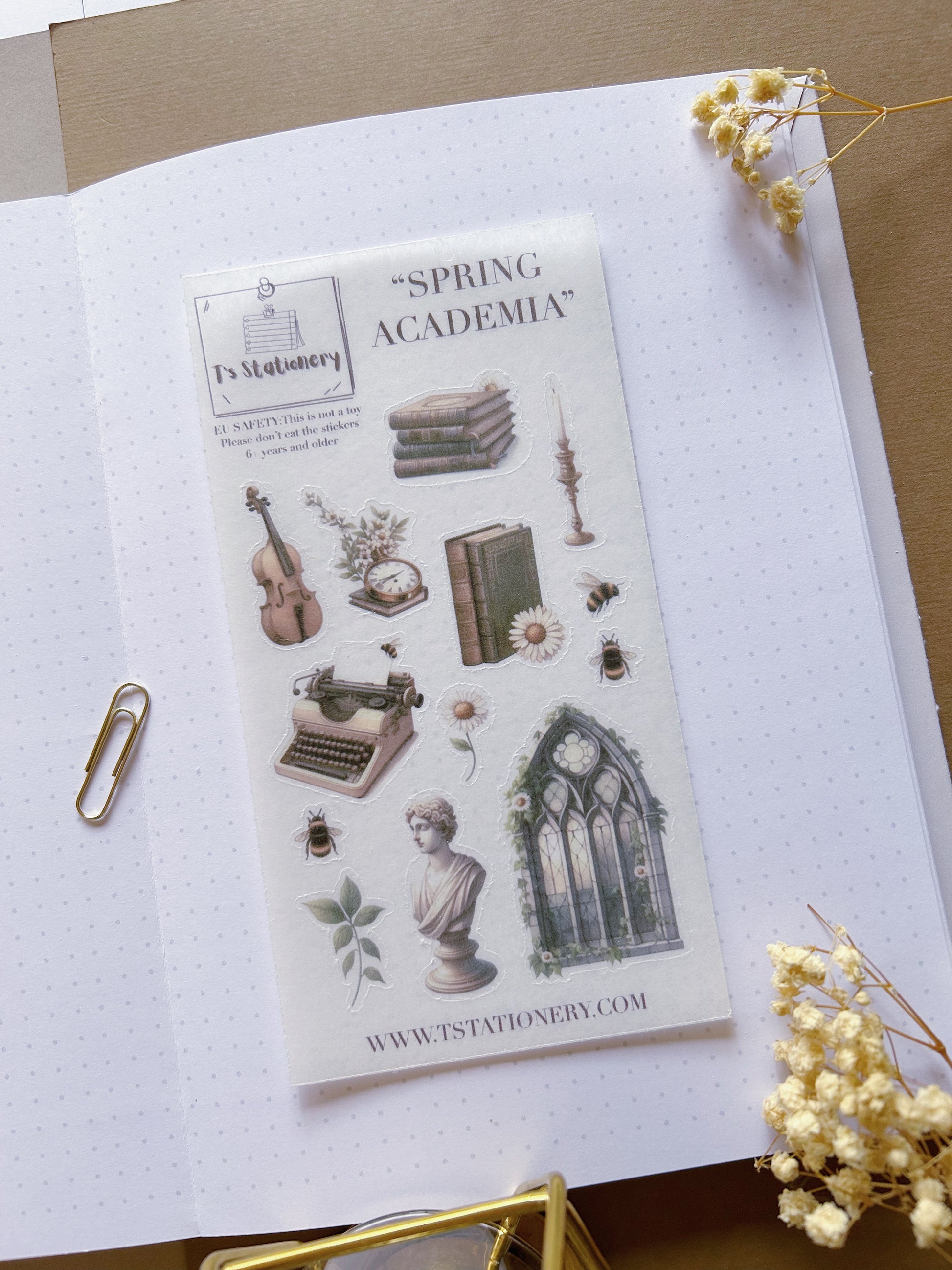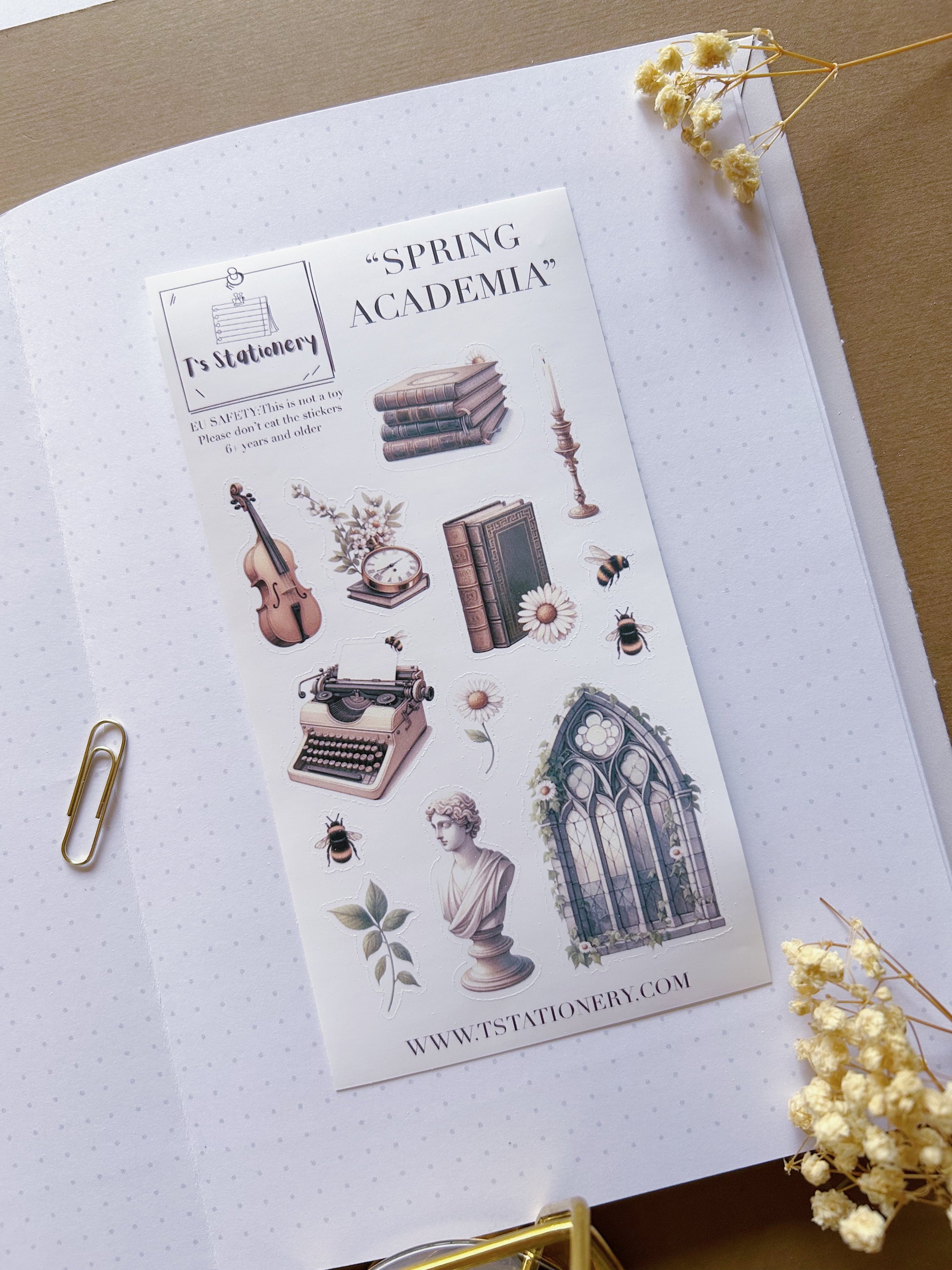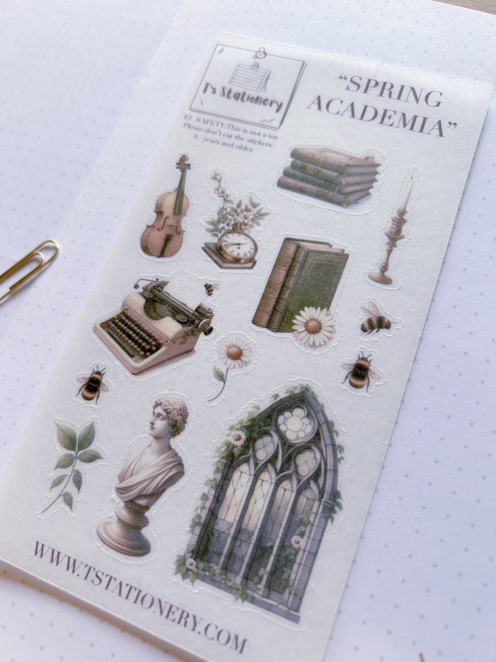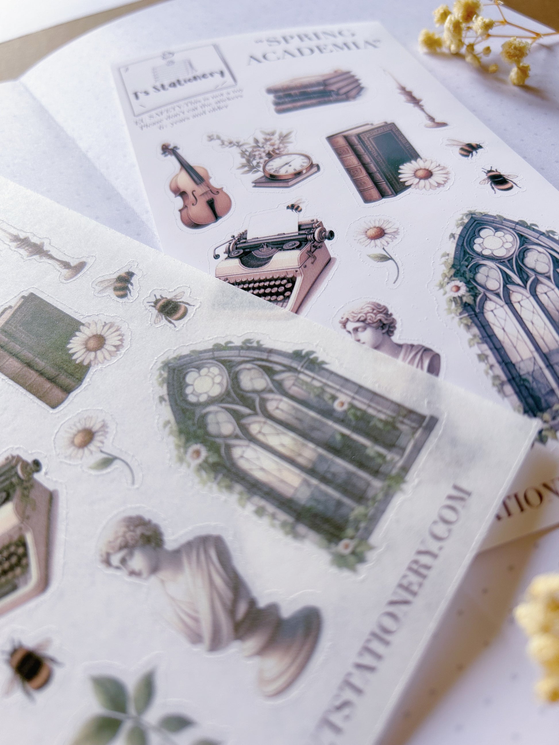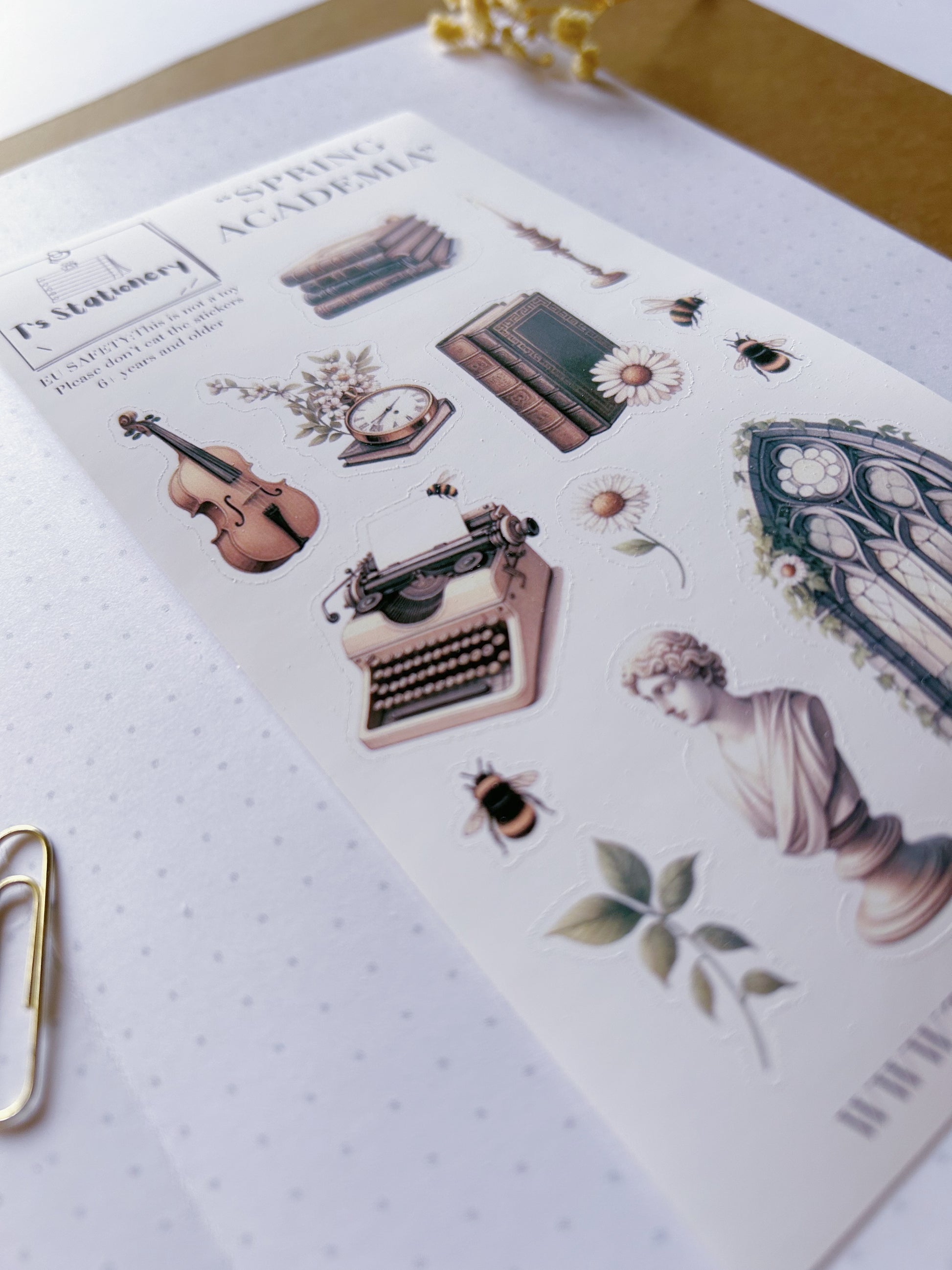 A dark academia sticker sheet in spring theme, perfect to use in your journal, planner or scrapbook.