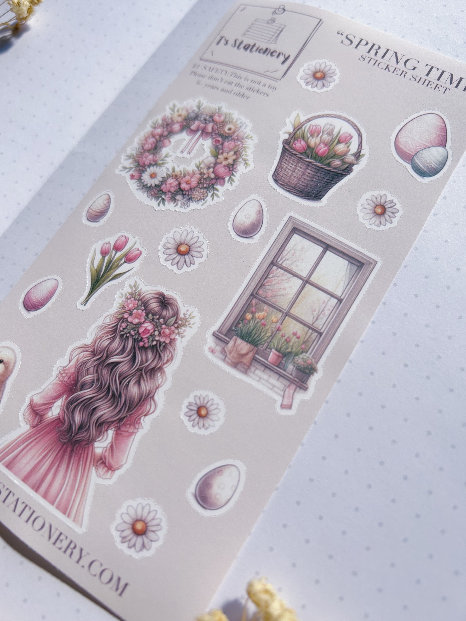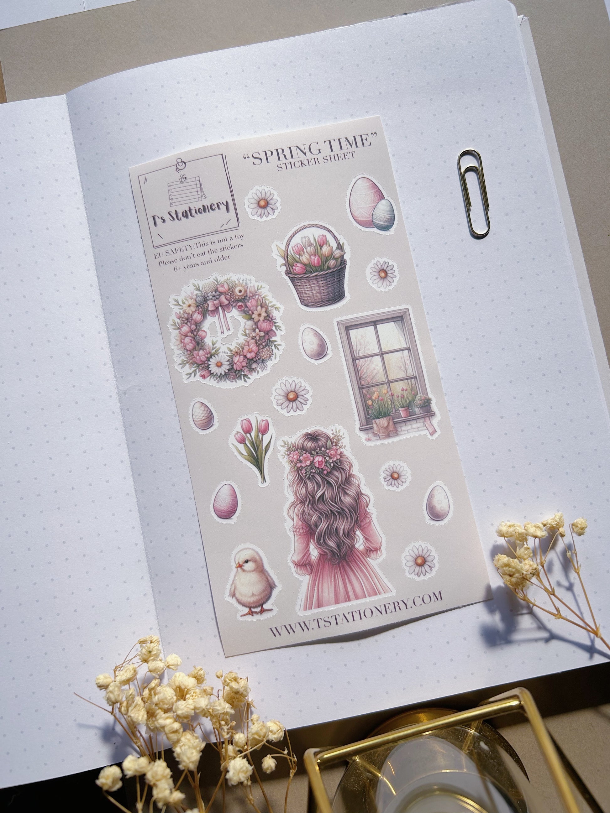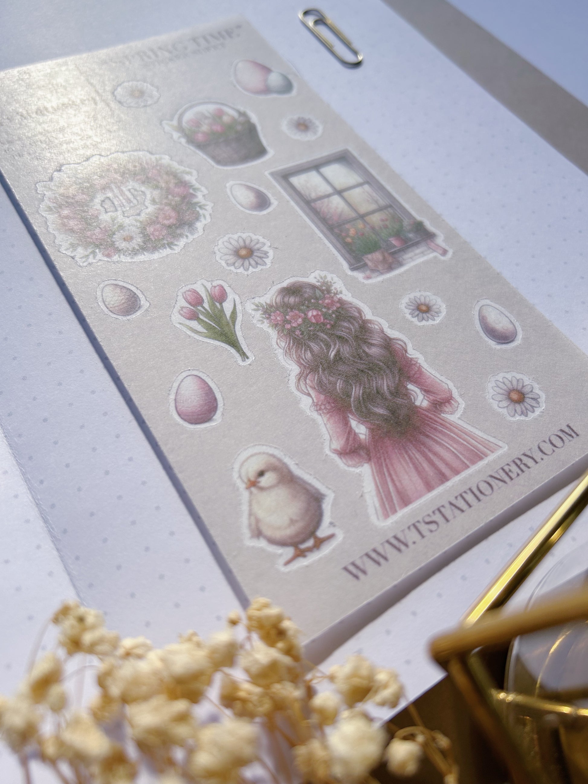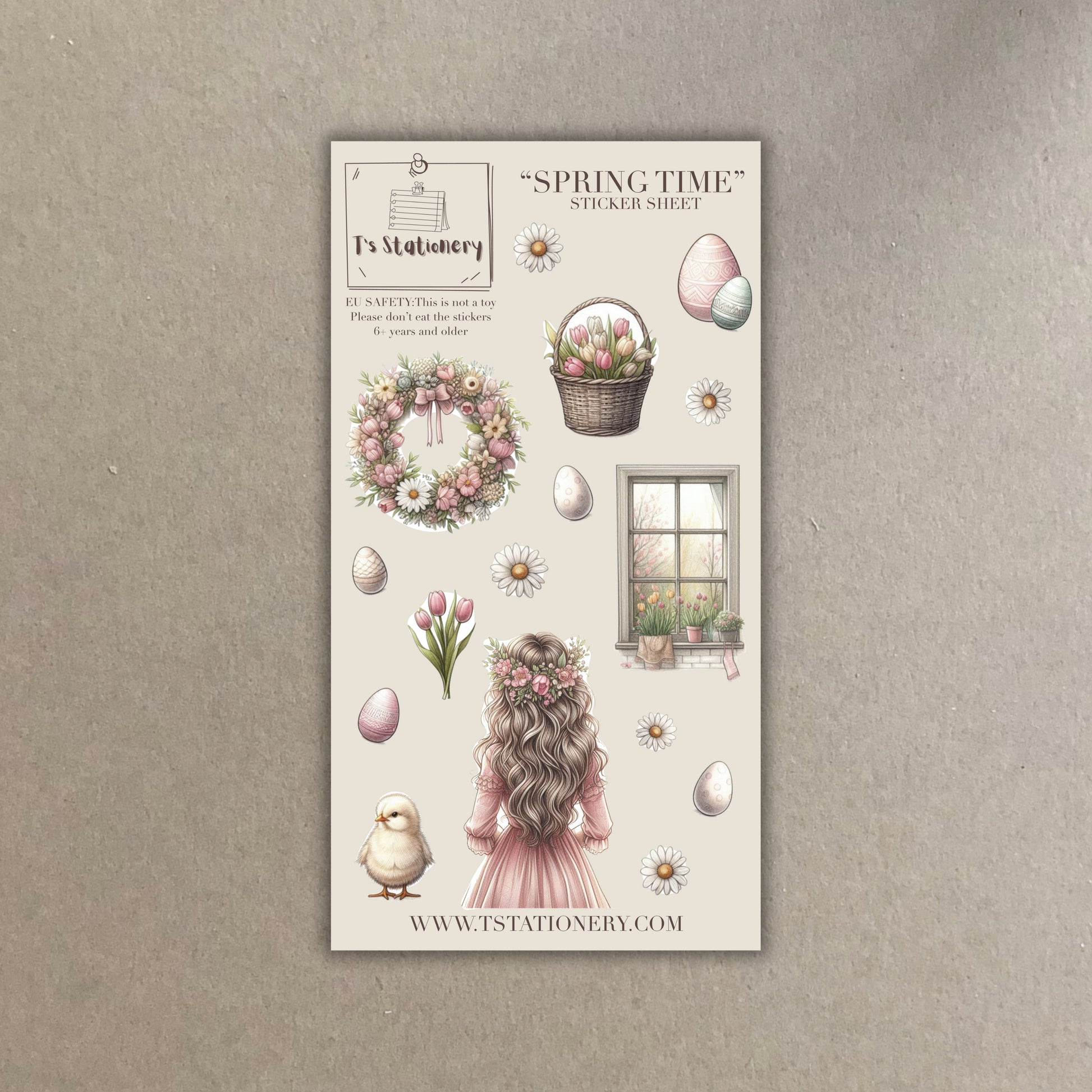 These "Spring Time" stickers will give your journal, planner or scrapbook a cozy and easter spring vibe. I designed this sticker sheet myself and I used my Cricut machines (Cricut Explore and Maker) to cut them. The stickers all have a small white lining at the edges.