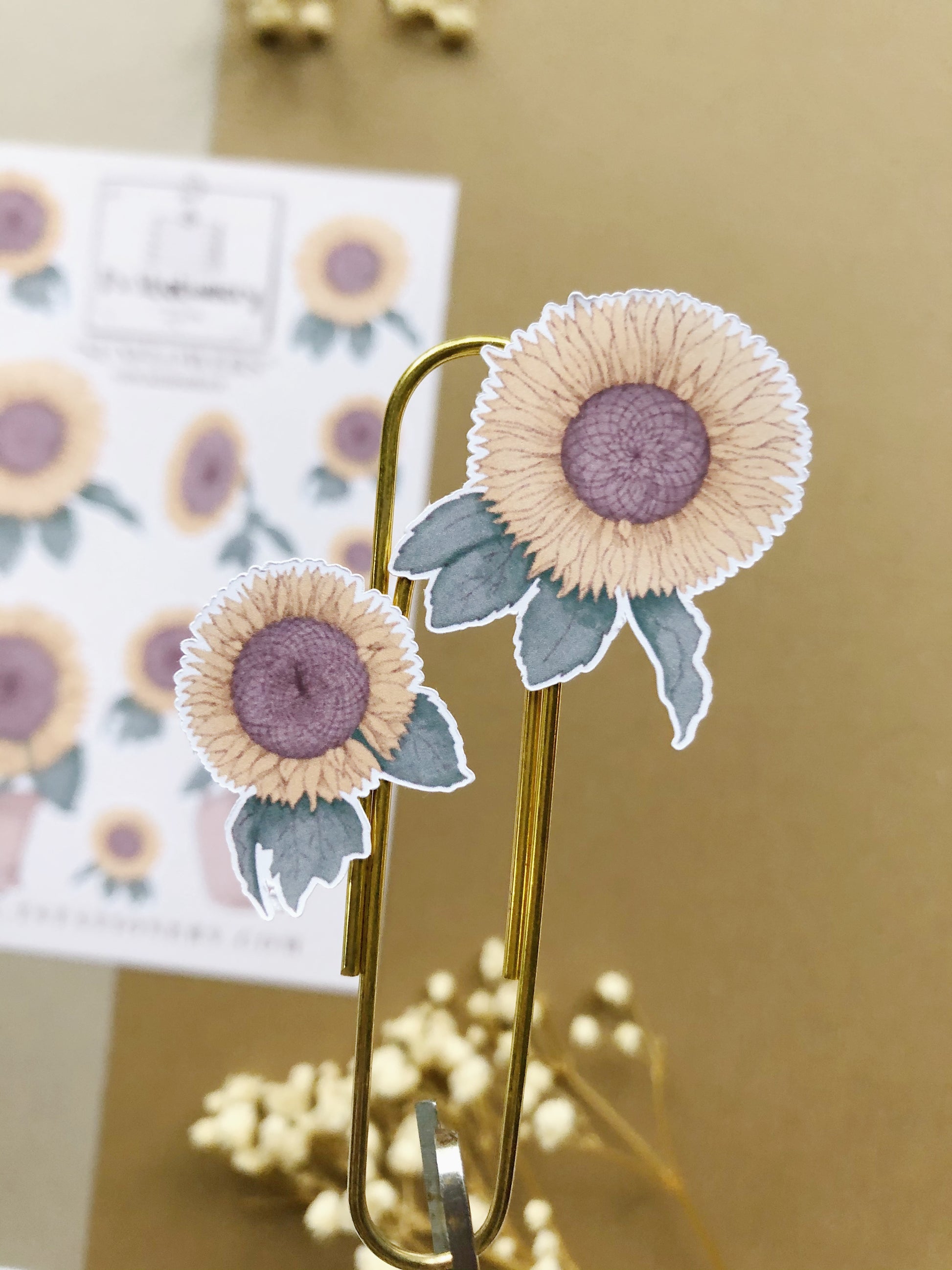 A sticker sheet filled sunflowers. Made to decorate your journal/scrapbook or planner.