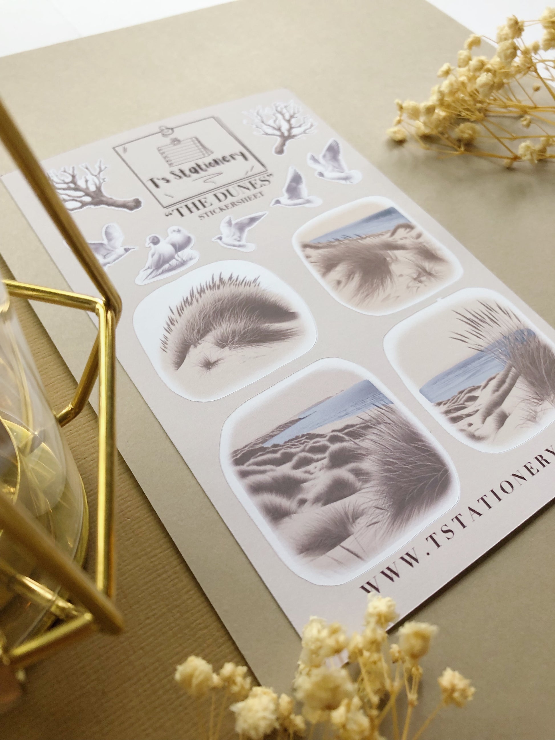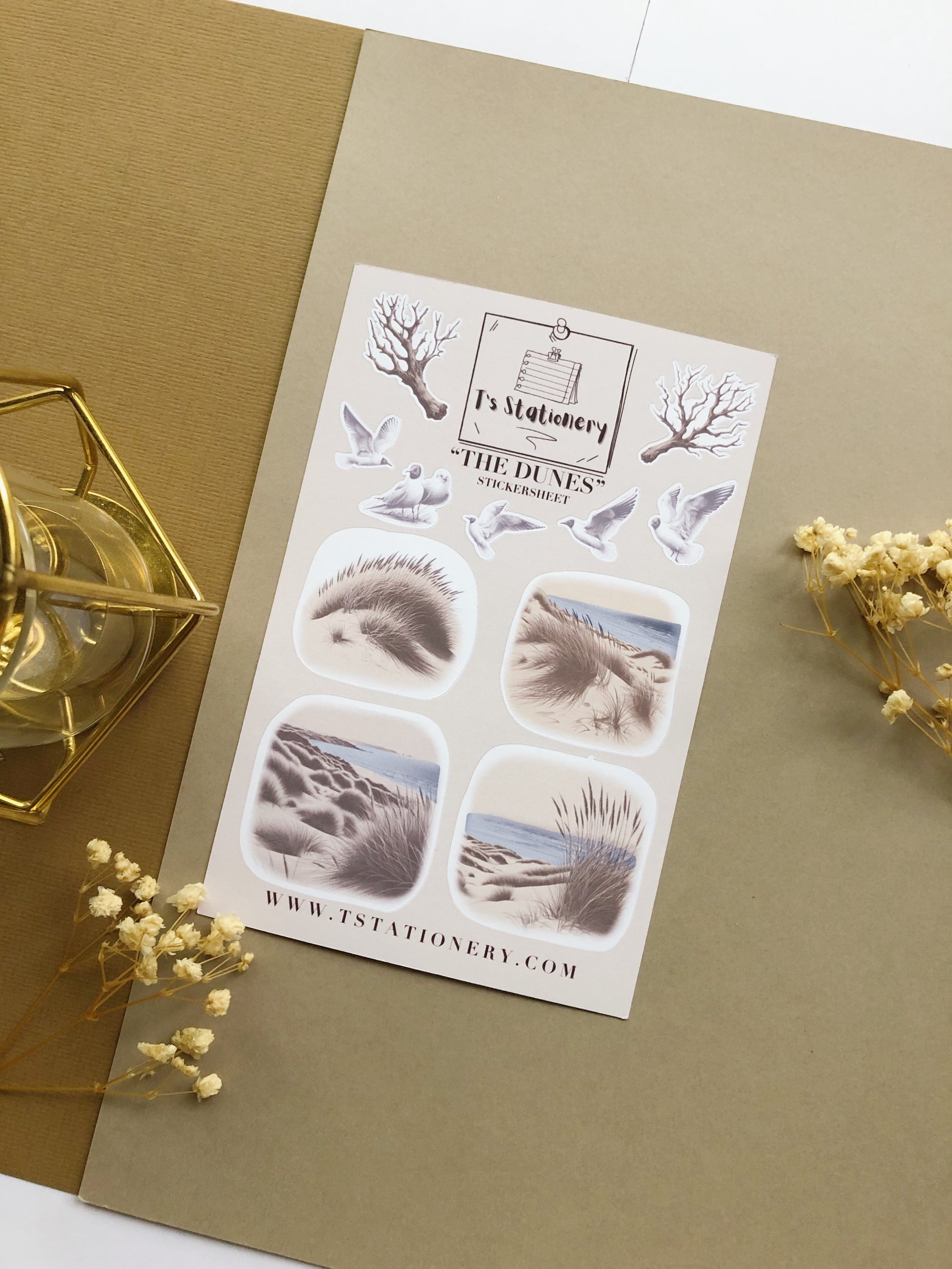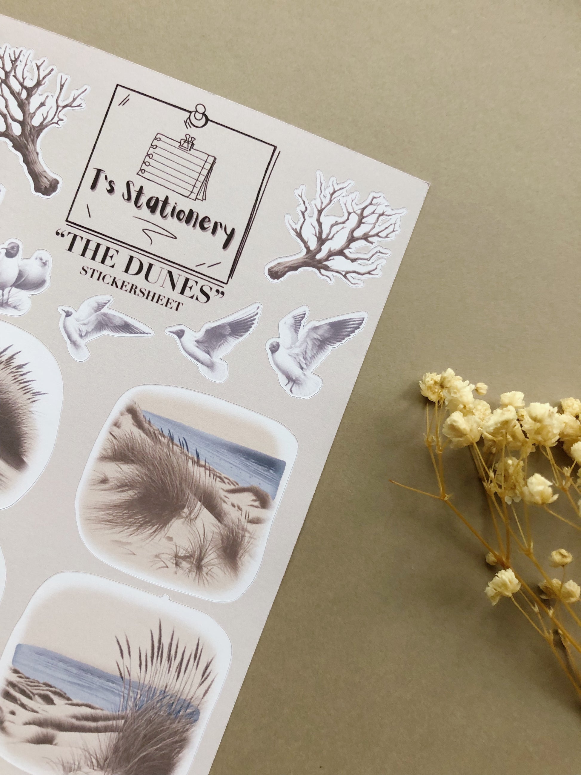 This dunes sticker sheet will give your journal, planner or scrapbook summer-ish vibes. The stickers are inspired on Dutch/Danish beaches. There are 5 seagull stickers, 4 dune illustration stickers and 2 driftwood stickers. Which makes a total of 11. They go perfectly with the other new sticker sheets such as the boat trip one and/or the seashells one as the same color palette has been used.