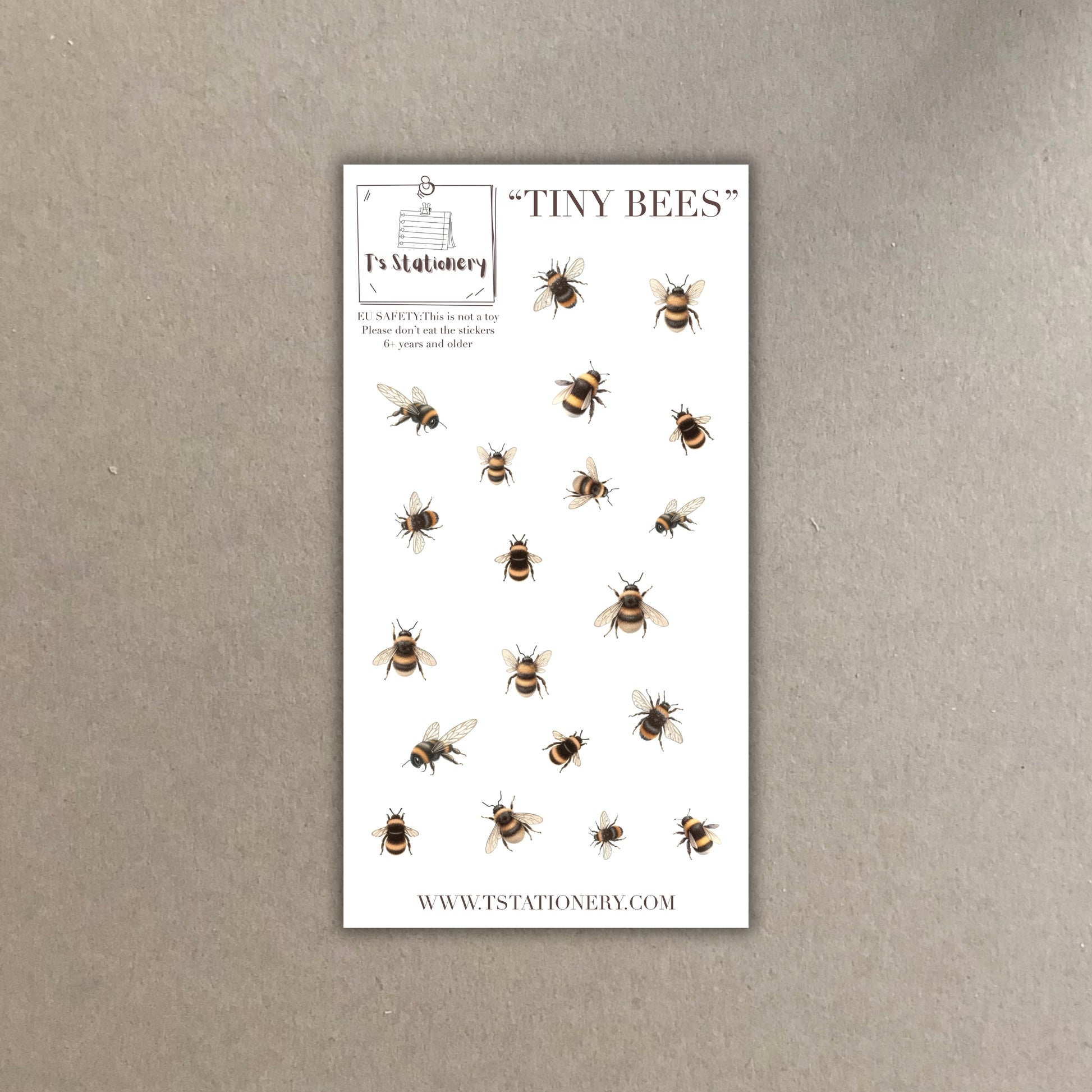 This sticker sheet contains 26 tiny bee stickers. Most bees are around 1.5 cm (0.19") in length and width, there are a few bigger ones, these are just below 2 cm ( 0.8") in width and length.