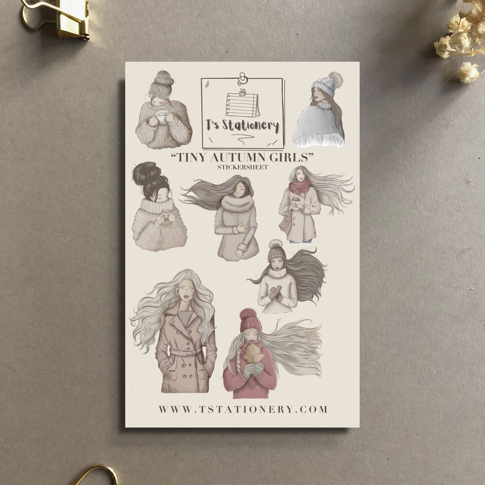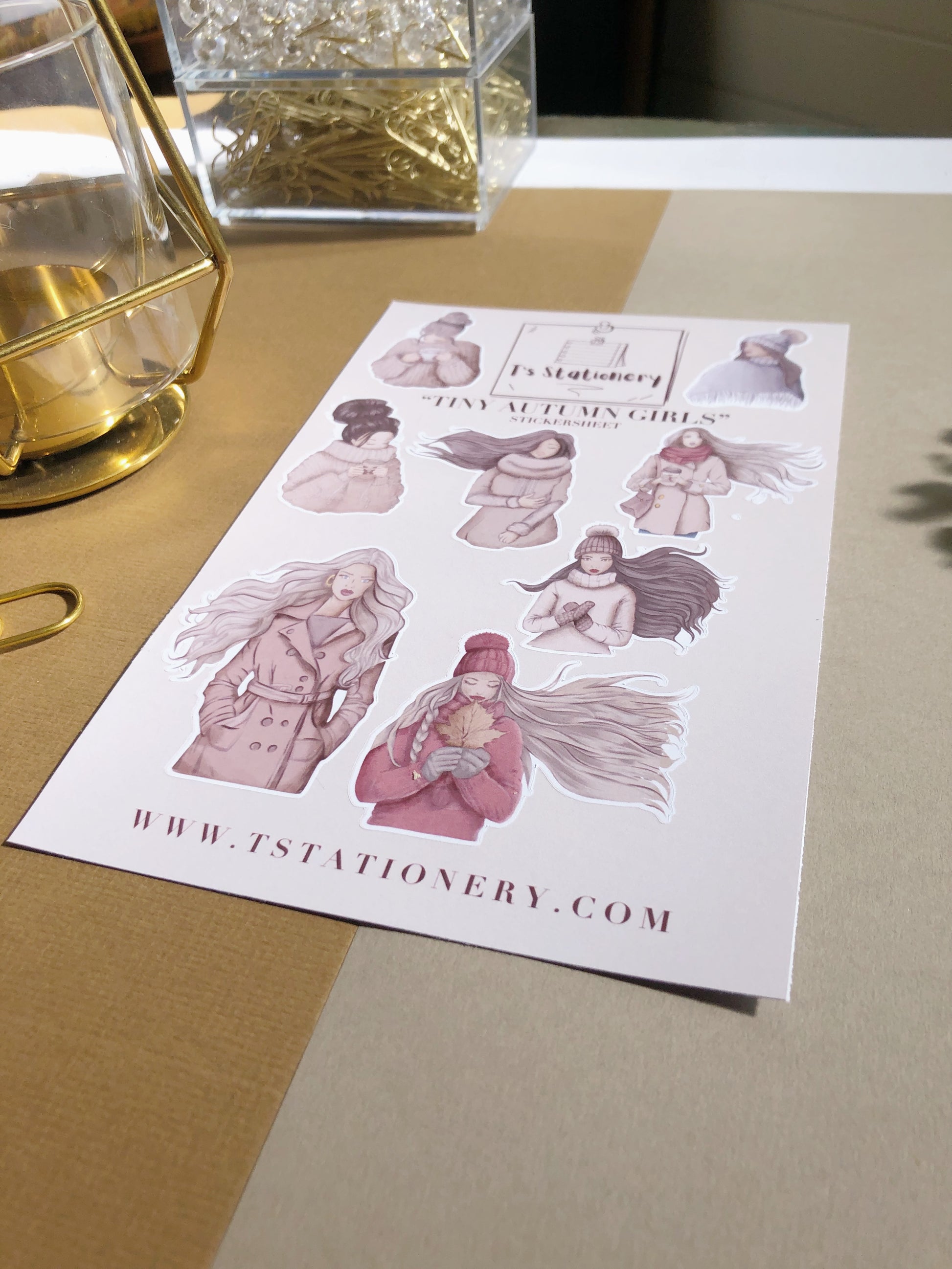 This girl sticker sheet is called "Tiny Autumn Girls" and contains all 8 girl stickers which can be found in the die cut fall girls stickers bag. I figured that not everyone wants to make collages or wants to use bigger girl stickers so I decided to add all 8 girls on 1 single sticker sheet.