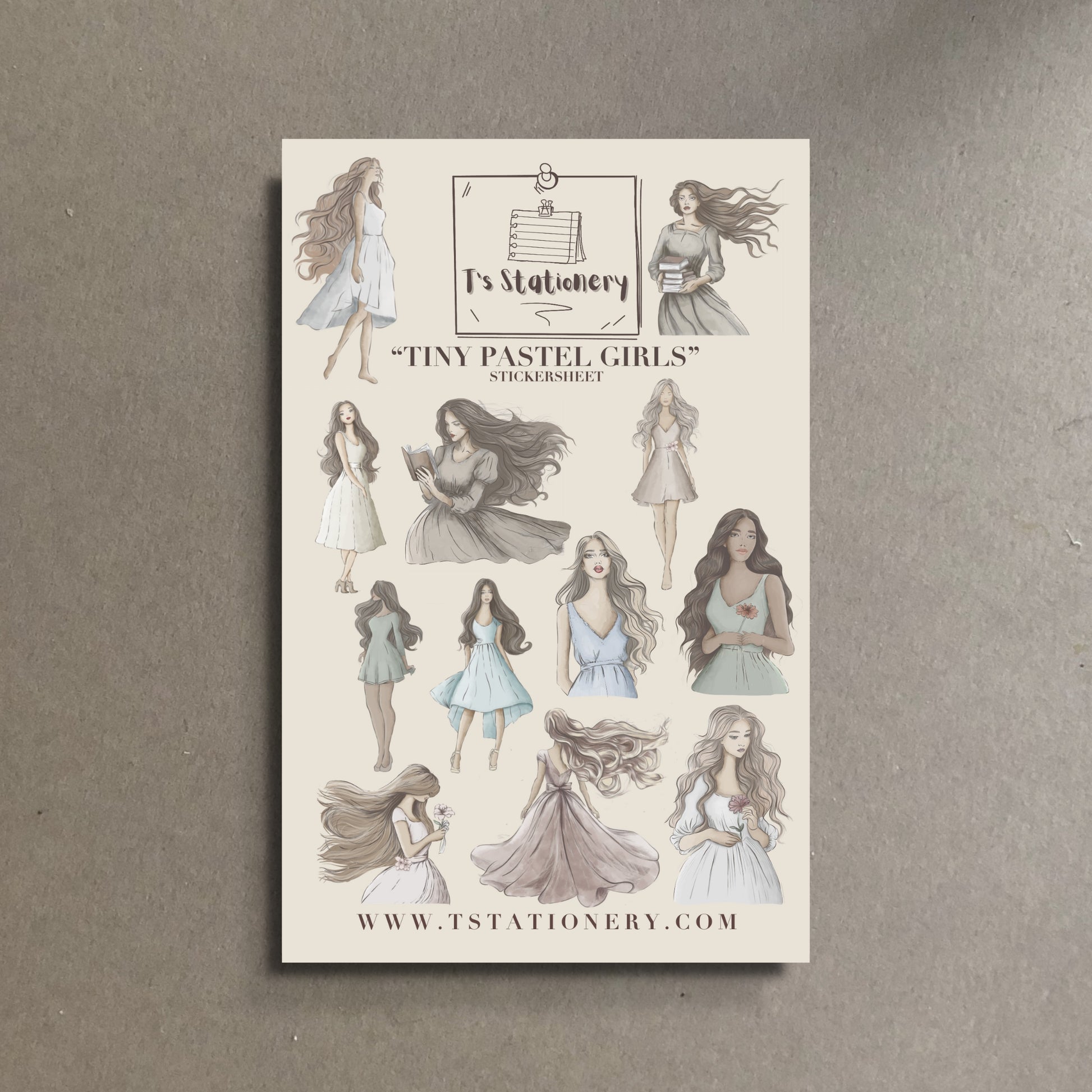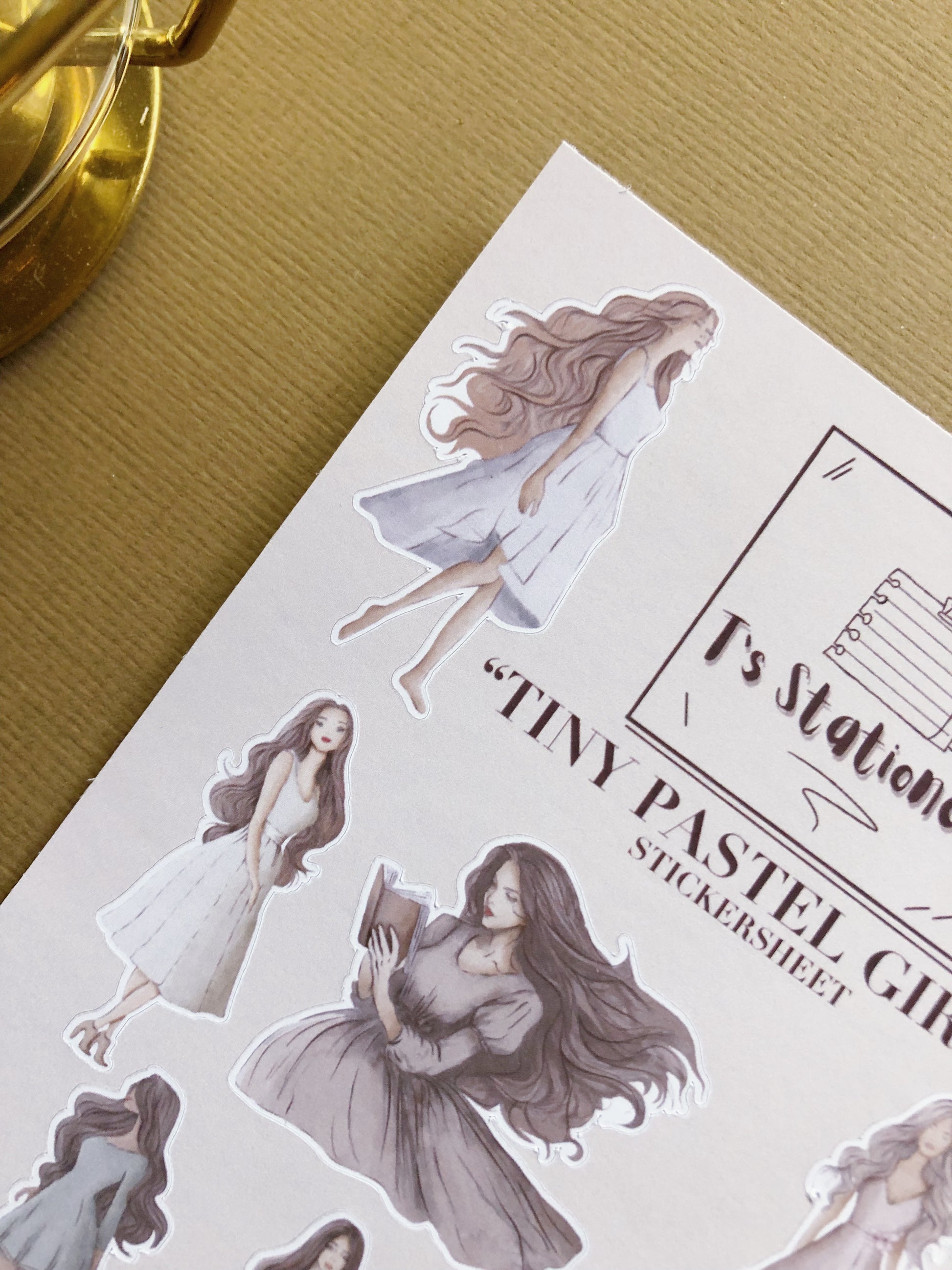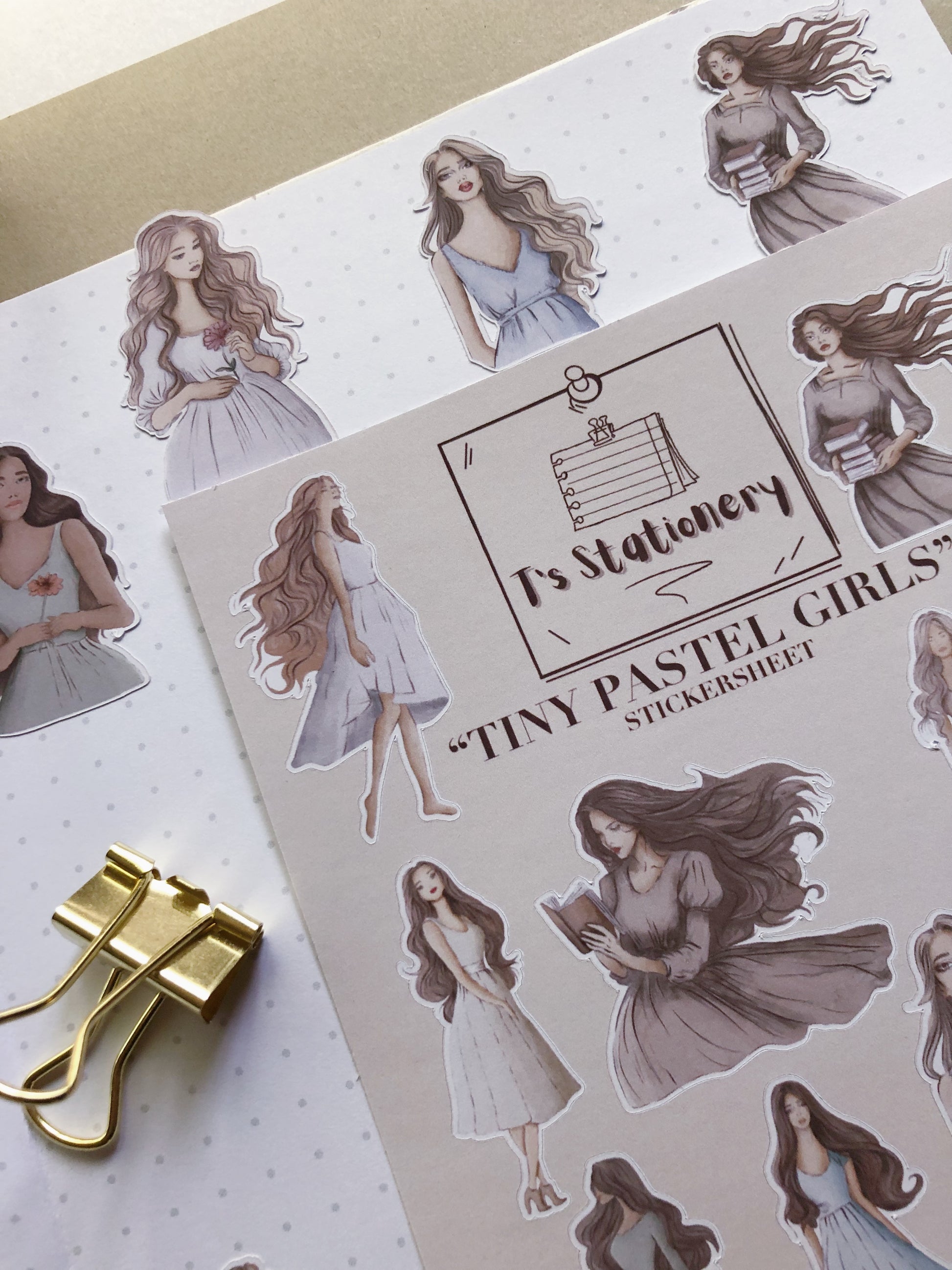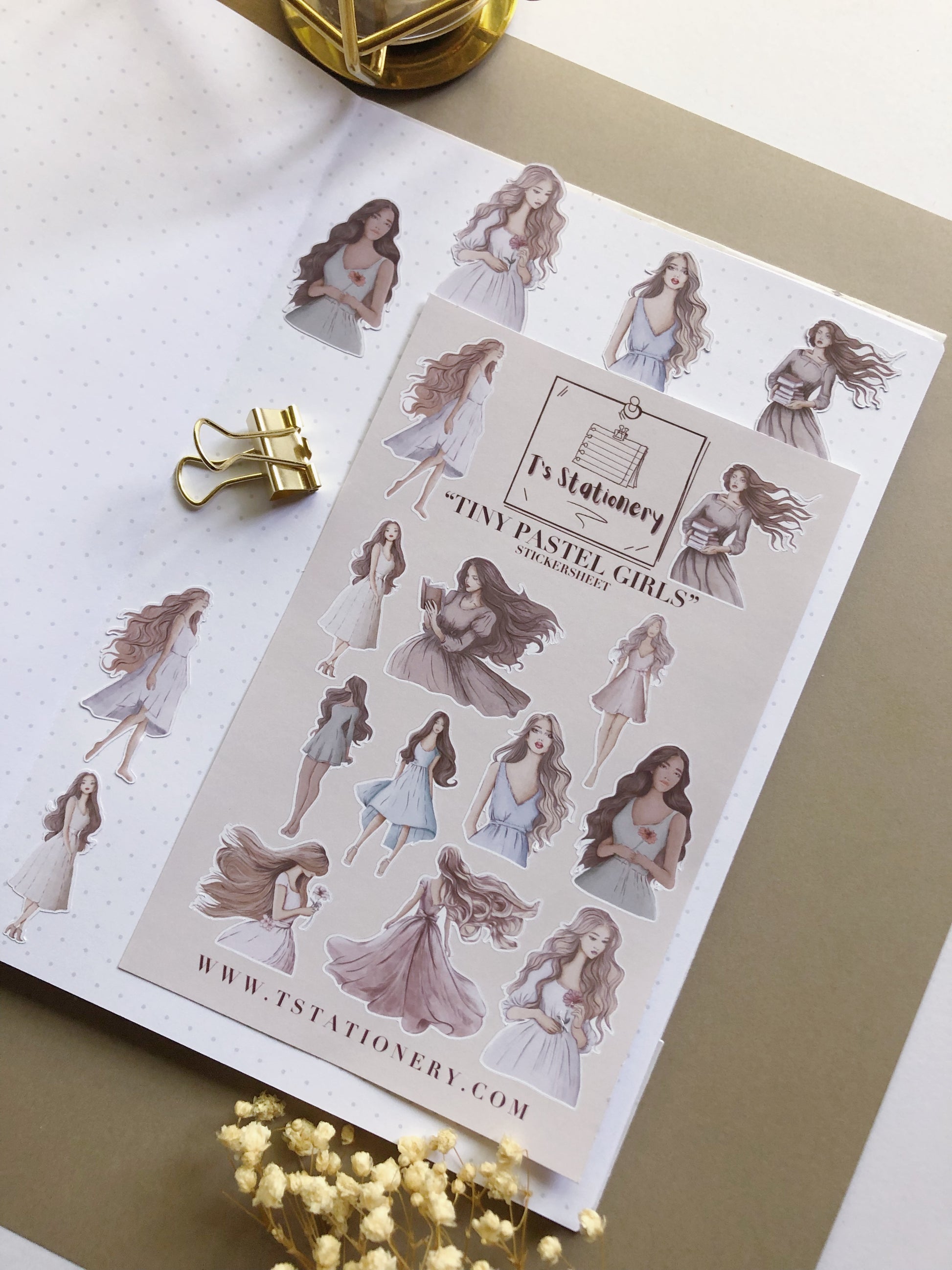 This girl sticker sheet is called "Tiny Pastel Girls" and contains all 12 girl stickers which can be found in the die cut girls stickers bag. I figured that not everyone wants to make collages or wants to use bigger girl stickers so I decided to add all 12 girls on 1 single sticker sheet.