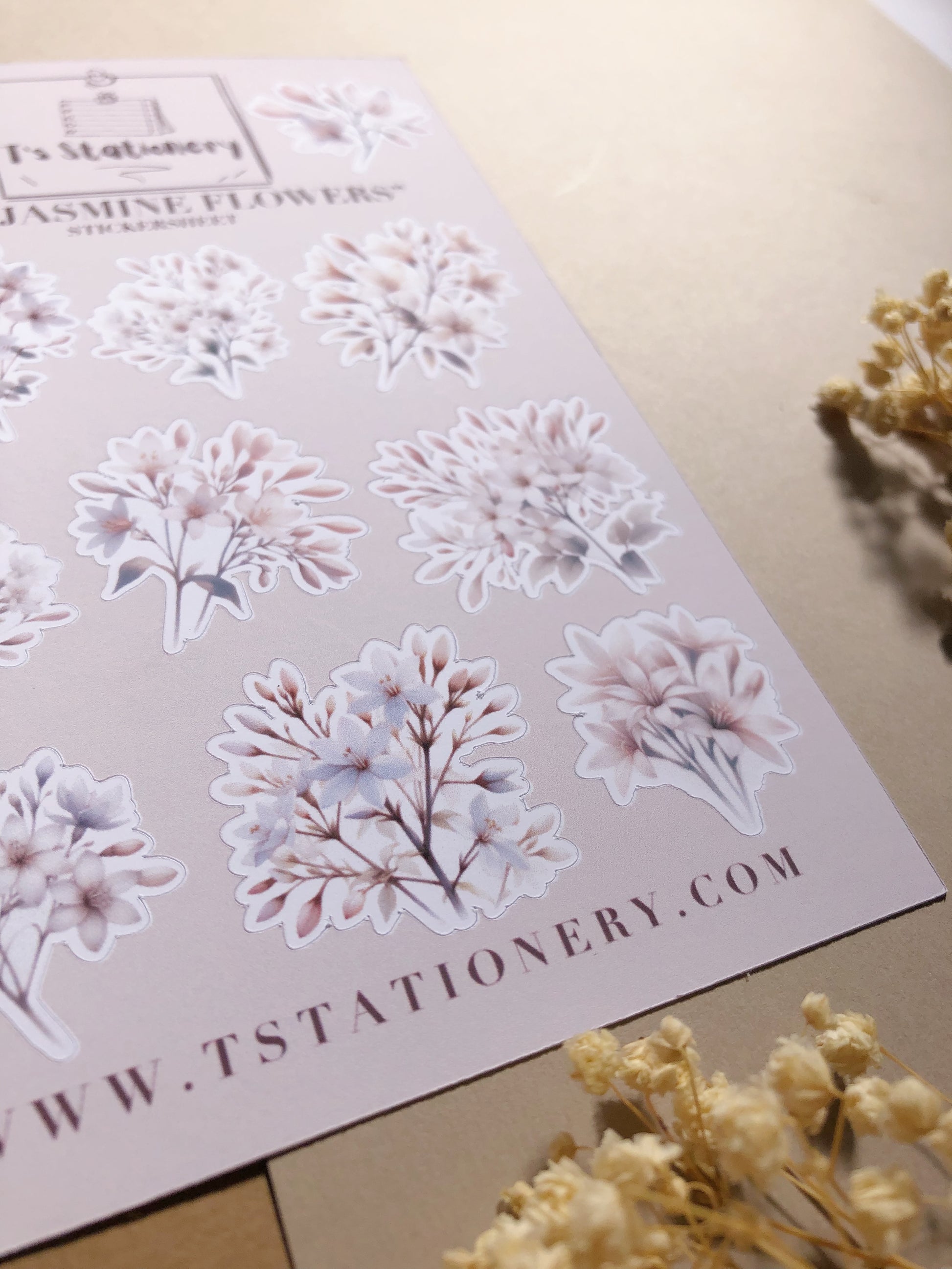 A spring-themed sticker sheet filled with Tree Jasmine (cork tree) flower stickers. These flower stickers are perfect for giving your journal, planner or scrapbook real spring vibes, they will keep your spreads neutral and not too crowded.