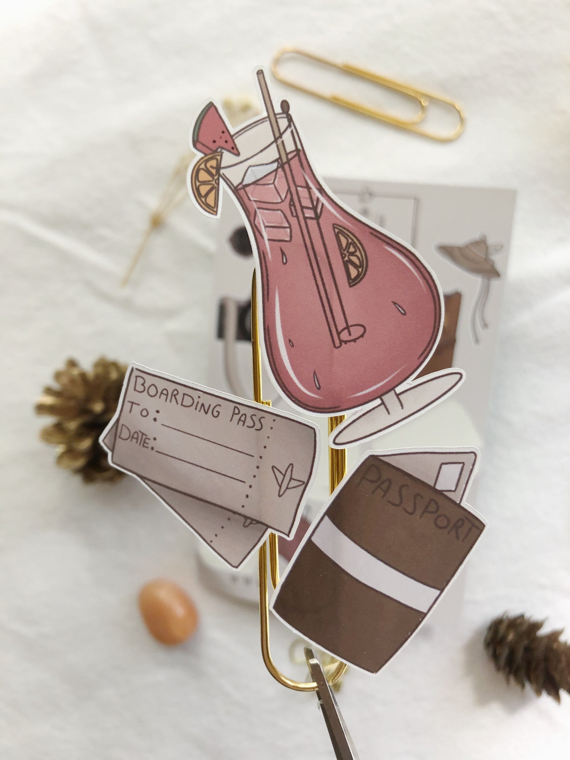 A cute vacation sticker sheet perfect to use in your Bullet Journal or scrapbook.
