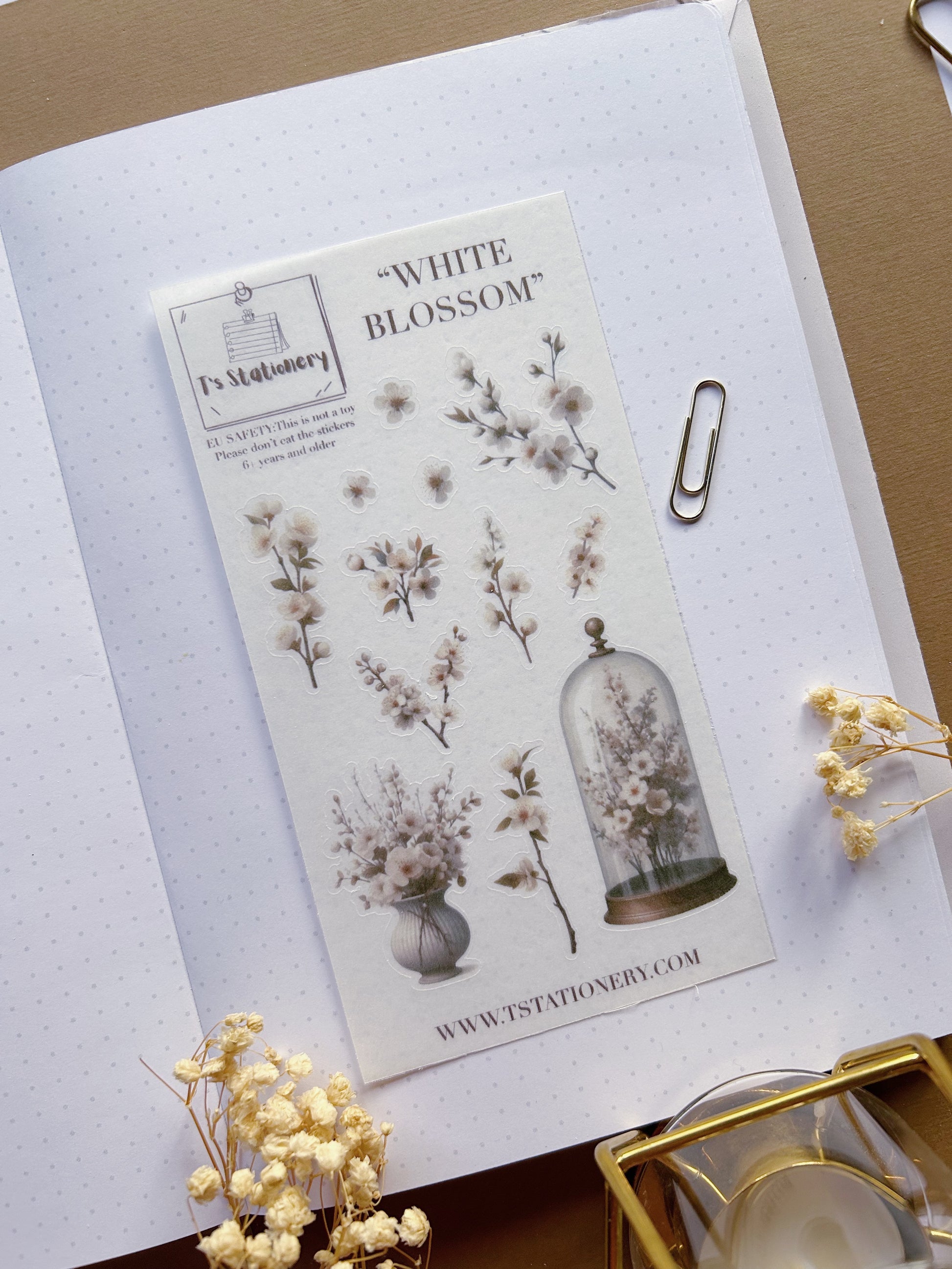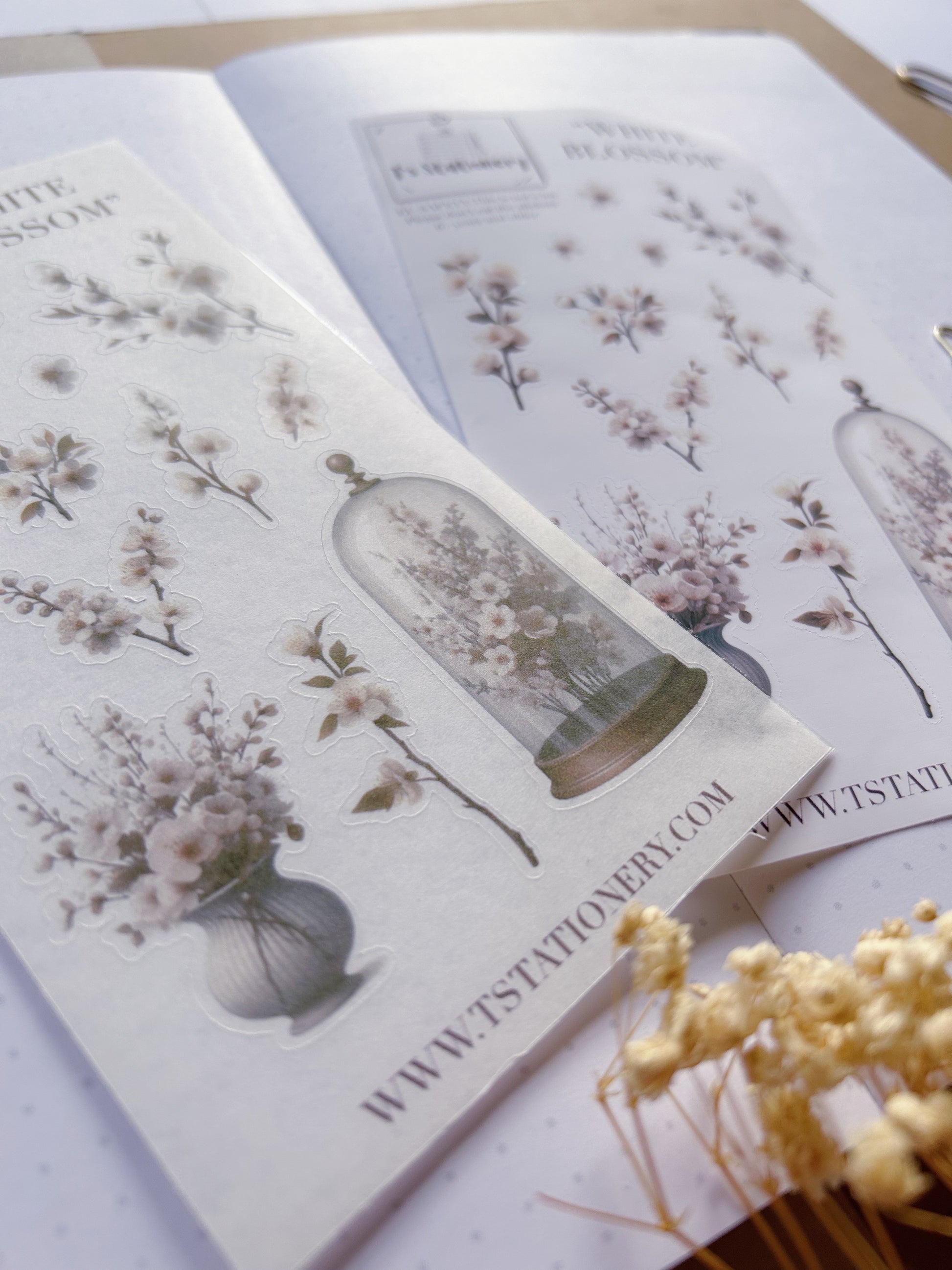 These blossom stickers will give your journal, planner or scrapbook a cozy and relaxed spring vibe. I designed this sticker sheet myself and I used my Cricut machines (Cricut Explore and Maker) to cut them. The stickers all have a small white lining at the edges.